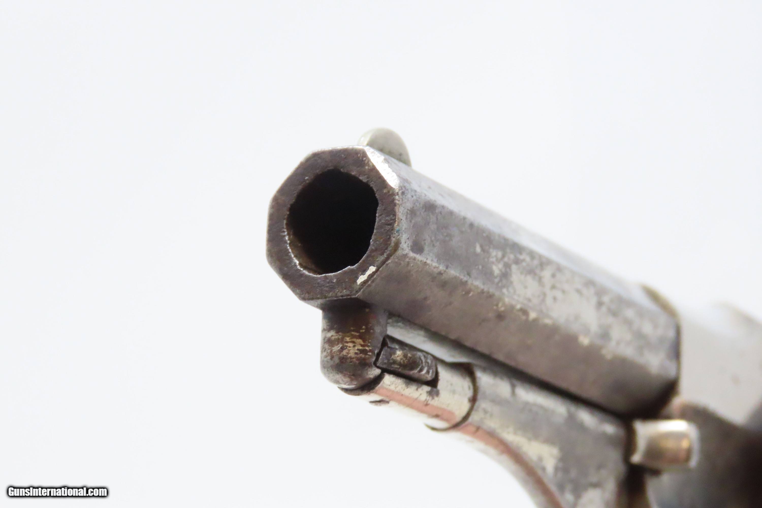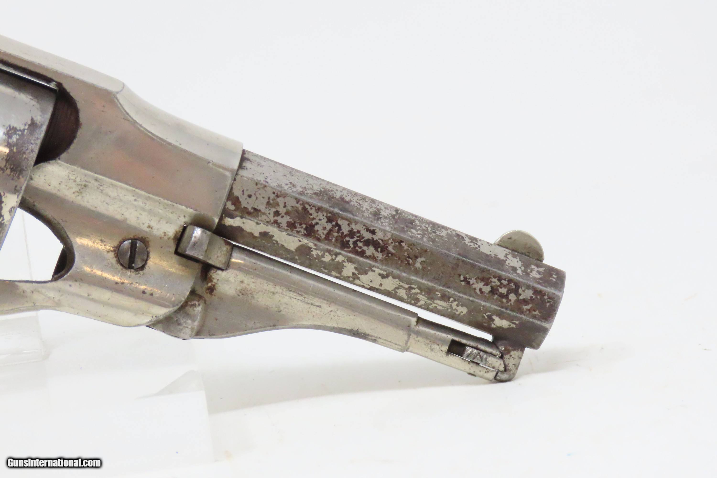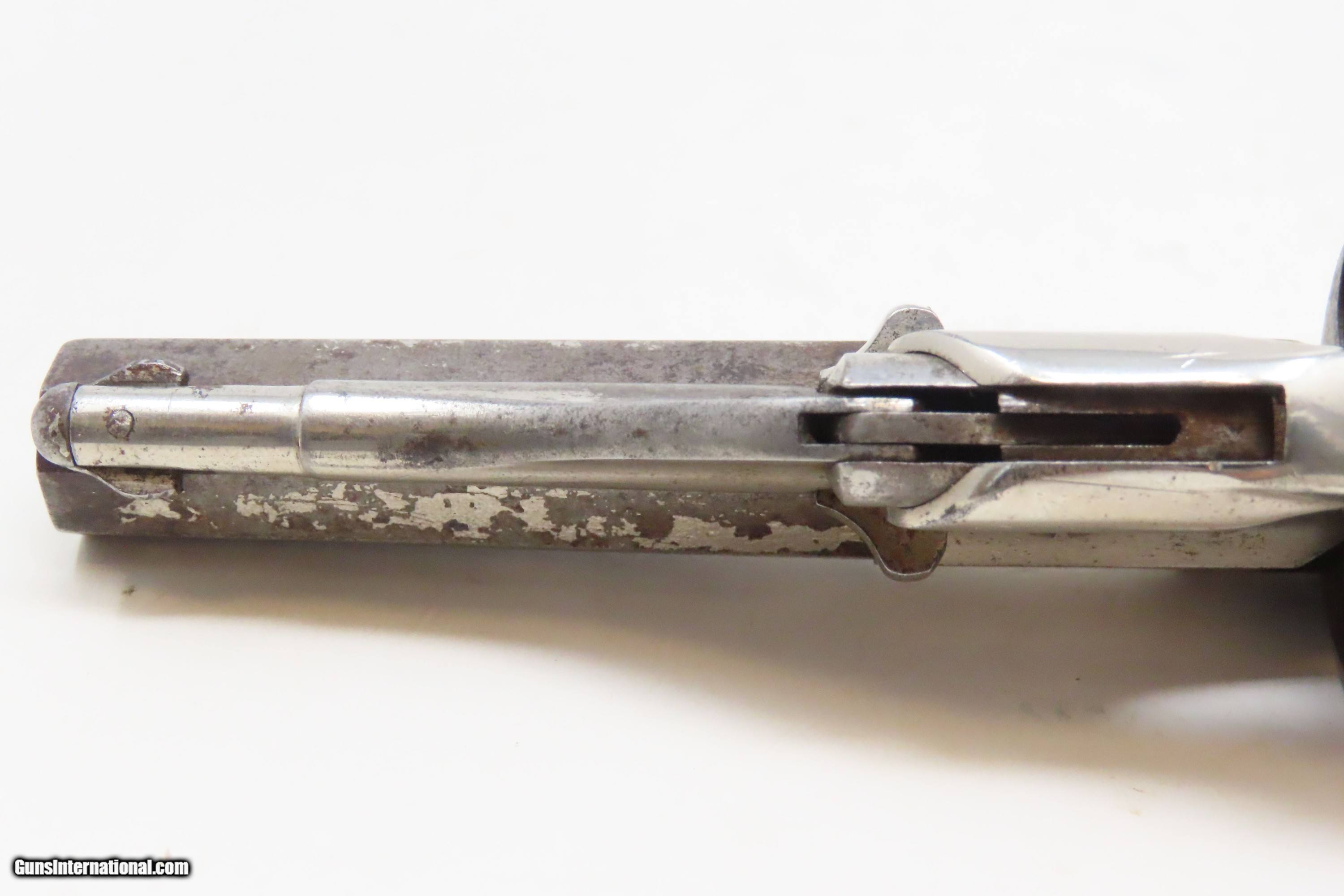 Description: NICE 1870s Antique REMINGTON “New Model” POLICE .38 RF CONVERSION Revolver Factory Converted to .38 Rimfire Cartridge Here we present an antique Remington New Model Police Cartridge Conversion Revolver, made circa 1865 to 1873 in Ilion, New York. It would have started out life as a .36 caliber percussion revolver prior to conversion. This sidearm, scaled down from the Remington Navy and Belt models, was one of some 18,000 factory alterations from percussion to metallic rimfire cartridge. Designed to compete with the Colt Model 1862 Police sidearm and the Pocket Navy revolvers, this .38 caliber rimfire, five-shot two-piece cylinder is fitted with a special plate on the front shoulder. This would have been a nice, unobtrusively sized revolver to carry in a holster. With 5 rounds of .38 rimfire, one could get themselves out of most scrapes. This revolver would have been modified to accept metallic cartridges near the expiration of the Smith & Wesson owned Rollin White Patent, which prevented other companies from using the bored through cylinder until 1869. The overall condition is fine. Original nickel finish. Good bore. The action is strong. Both grips are solid with average handling. Legible markings. Own the original! This is a legitimate antique and not a reproduction. Barrel is 3-1/2 inches. Caliber: .38 Rimfire Overall condition as seen in photos. Very Fast. Very Safe. FREE SHIPPING WORLDWIDE. Delivered directly to your door by express mail! Guaranteed AUTHENTIC & Includes CERTIFICATE OF AUTHENTICITY. ancestryguns $1600 #240025 SOLD Antique: Yes |