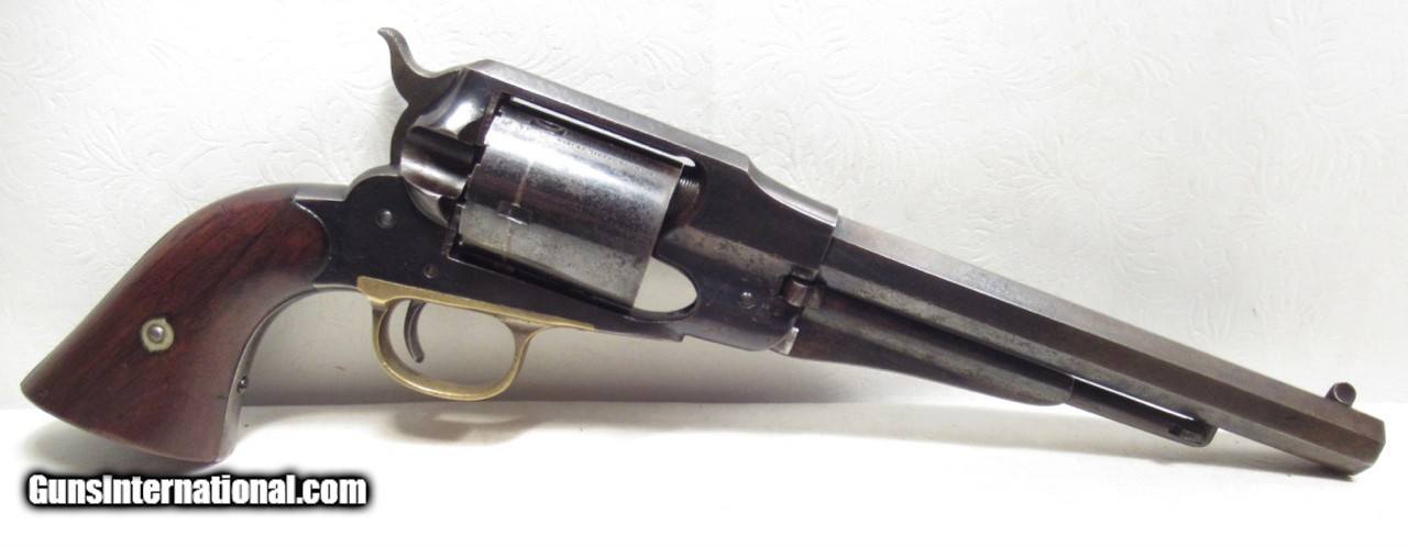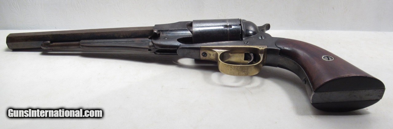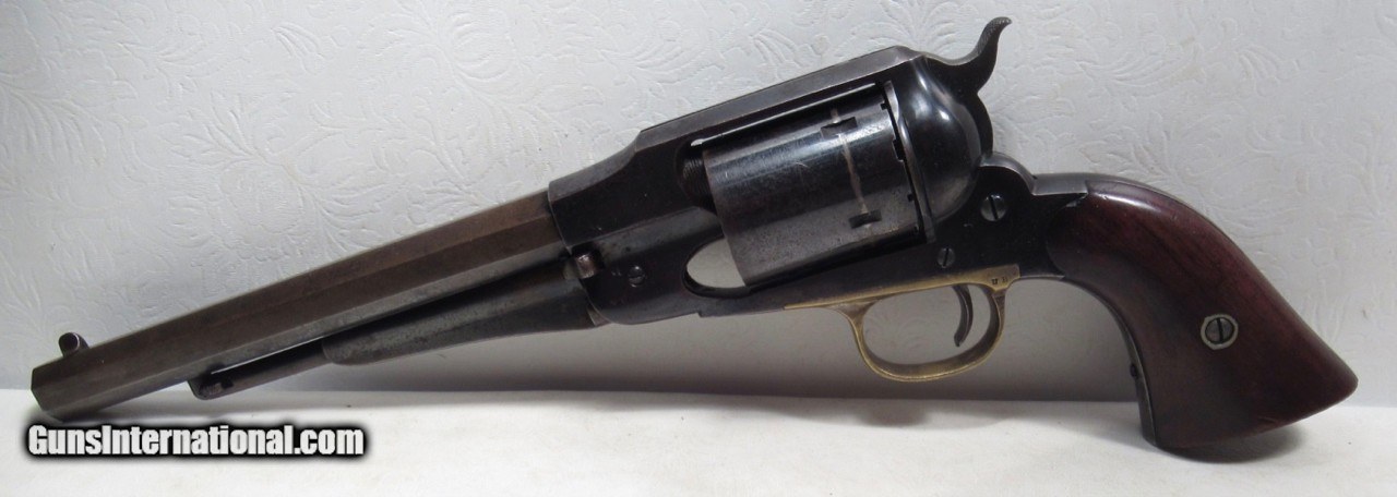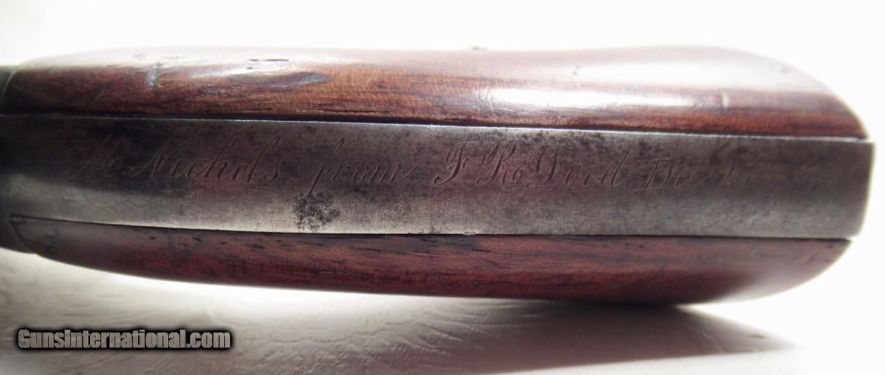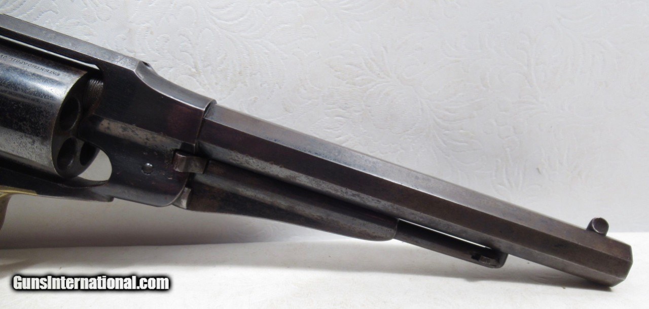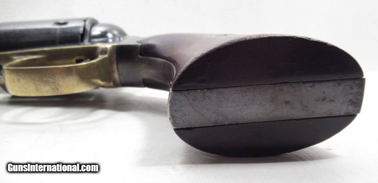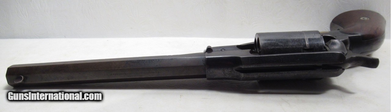 Description: Remington New Model Army Conversion Revolver; Serial No. 85158; .46 R.F. Caliber with 8” Octagon Barrel; Gun Retain Lots of Original Metal Finish; Nice Walnut Grips; Brass Trigger Guard; Good Markings – Rolling White Patent Line on Cylinder is Very Clear and Crisp – “412” Conversion Number Under Barrel Near Loading Lever Catch; Backstrap Inscribed with Christmas Presentation “M. Nichols from F.R. Lord, Dec. 25, 1869”; Perfect Action; Great Bore; This Fine Antique Remington is One of 4,575 Revolvers Converted by Remington from a Contract with Smith & Wesson in 1868; See All Photos for Condition; No Texts; Call (254)541-5765 or Email Only; PERSONAL PROPERTY of Harold Wieser; NOTICE: We Do Not Do Any Consignments - All Items Listed are Owned by Us - NO SALES to New Jersey or New York City - Antiques Only to Massachusetts and California; Price: $4,750 + $45 S&H Via USPS PRIORITY MAIL; Payment Address: Harold Wieser - 1466 U.S. Hwy 77 - Rosebud, TX 76570; SEND PAYMENTS VIA USPS PRIORITY MAIL; BEWARE of SCAMS!!! – DO NOT SEND MONEY or CORRESPONDENTS ELECTRONICALLY UNLESS YOU HAVE SPOKEN to HAROLD WIESER FIRST! 254-541-5765 SOLD Antique: Yes Manufacturer: Remington Model: New Model Army Conversion Serial Number: 85158 |