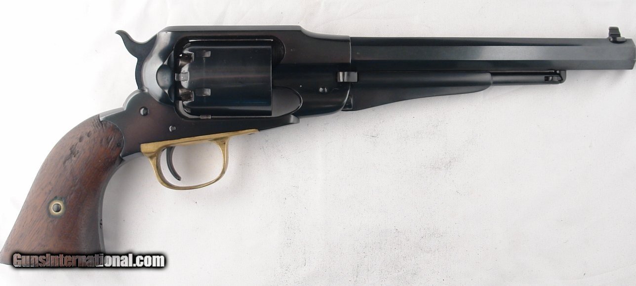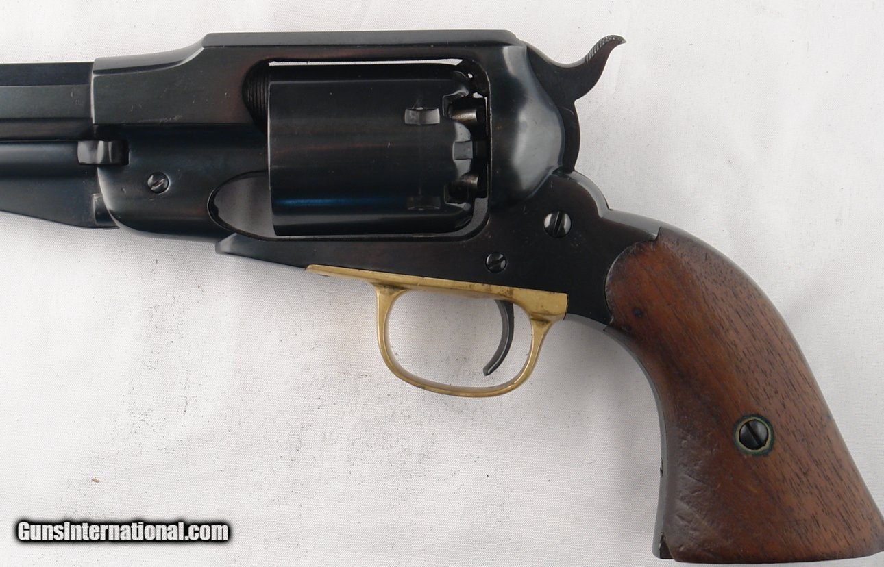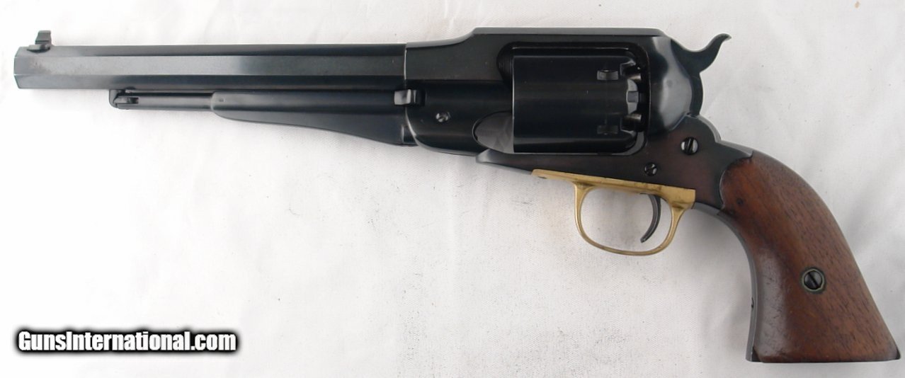 Description: ORIGINAL CIVIL WAR REMINGTON U.S. NEW MODEL PERCUSSION .44 CAL. REVOLVER. Six shot with 8” octagon barrel with Remington address and “NEW MODEL” stamp. All matching and original as professionally custom blued and with front sight a good replacement. Extra nice looking with great markings and screw heads. Original grips. Perfect working order and excellent bore and chambers. SOLD Antique: Yes Handgun Caliber: .44 |