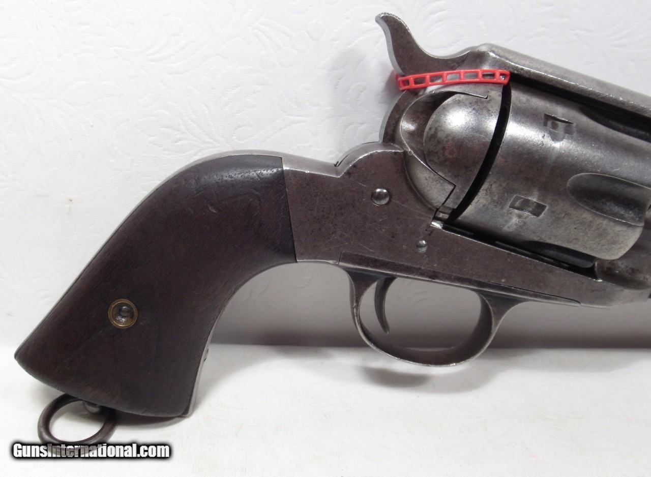 Description: Remington Model 1875 Revolver; Serial No. 17; 44W (44-40) Caliber as Marked on Left Grip; 7 ½” Barrel; Scarce Blue Finish; Perfect Action; Near Perfect Bore; 100% Correct and Original; Inside of Grips Marked “Arch Rowley 1934”; Really Fine 146 Year-Old Antique Remington Revolver; See All Photos for Condition; No Texts; Call (254)541-5765 or Email Only; PERSONAL PROPERTY of Harold Wieser; Price: $4,975 + $45 S&H Via USPS PRIORITY MAIL; Payment Address: Harold Wieser - 1466 U.S. Hwy 77 - Rosebud, TX 76570; SEND PAYMENTS VIA USPS PRIORITY MAIL; BEWARE of SCAMS!!! – DO NOT SEND MONEY or CORRESPONDENTS ELECTRONICALLY UNLESS YOU HAVE SPOKEN to HAROLD WIESER FIRST! 254-541-5765 SOLD Antique: Yes Manufacturer: Remington Model: 1875 Serial Number: 17 |