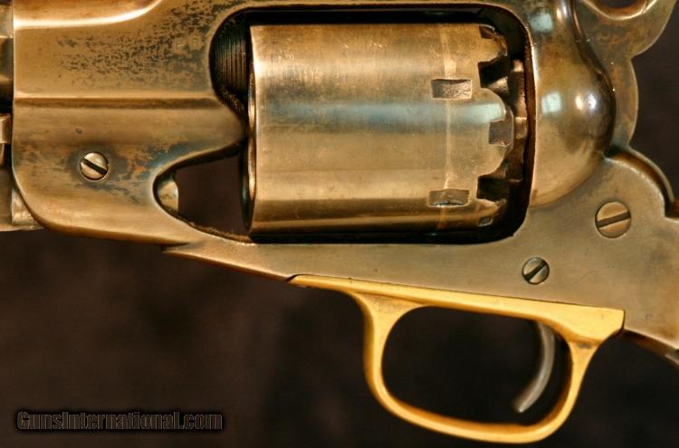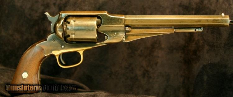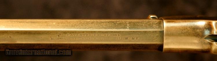 Description: .44 caliber, 8 inch octagon barrel, very strong rifling with scattered black powder oxidation, 30% original blue has had some color added over the top, very good 2 piece walnut grips show no cartouche, all other markings very good, mechanically excellent. SOLD Antique: Yes |
