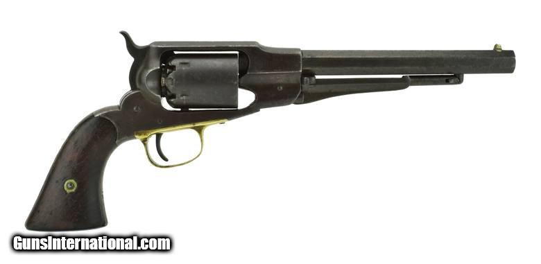 Description: Remington 1861 Navy .36 Caliber revolver. Bore is very good with bright bore and strong rifling. This 1861 Navy has sub inspector marks of a “B” on barrel and a “B” on cylinder. Actions works perfectly. Barrel address is easily legible. Gun has an even mostly smooth patina. Grips are good. This is a good plus 1861 and martially inspected. SOLD Antique: Yes |