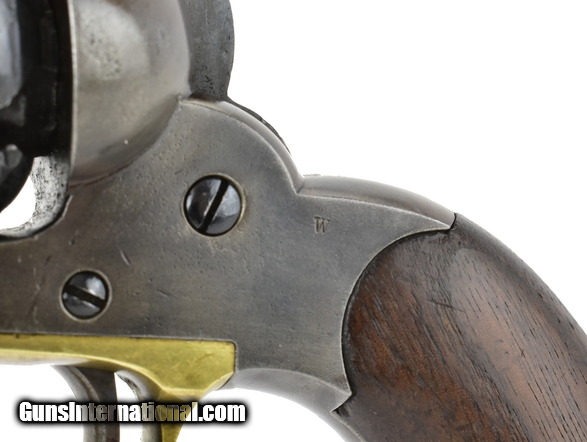 Description: Remington 1861 Navy .36 Caliber Revolver. Serial number 15xxx range. Has an excellent inspector cartouche on left side grip. Barrel, cylinder and frame have sub inspector stamps. Revolver has an excellent bore. Action works and indexes perfectly. Grips are near excellent with some very light edge wear. Overall a fine example of an early serial number 1961 Navy. SOLD Antique: Yes |