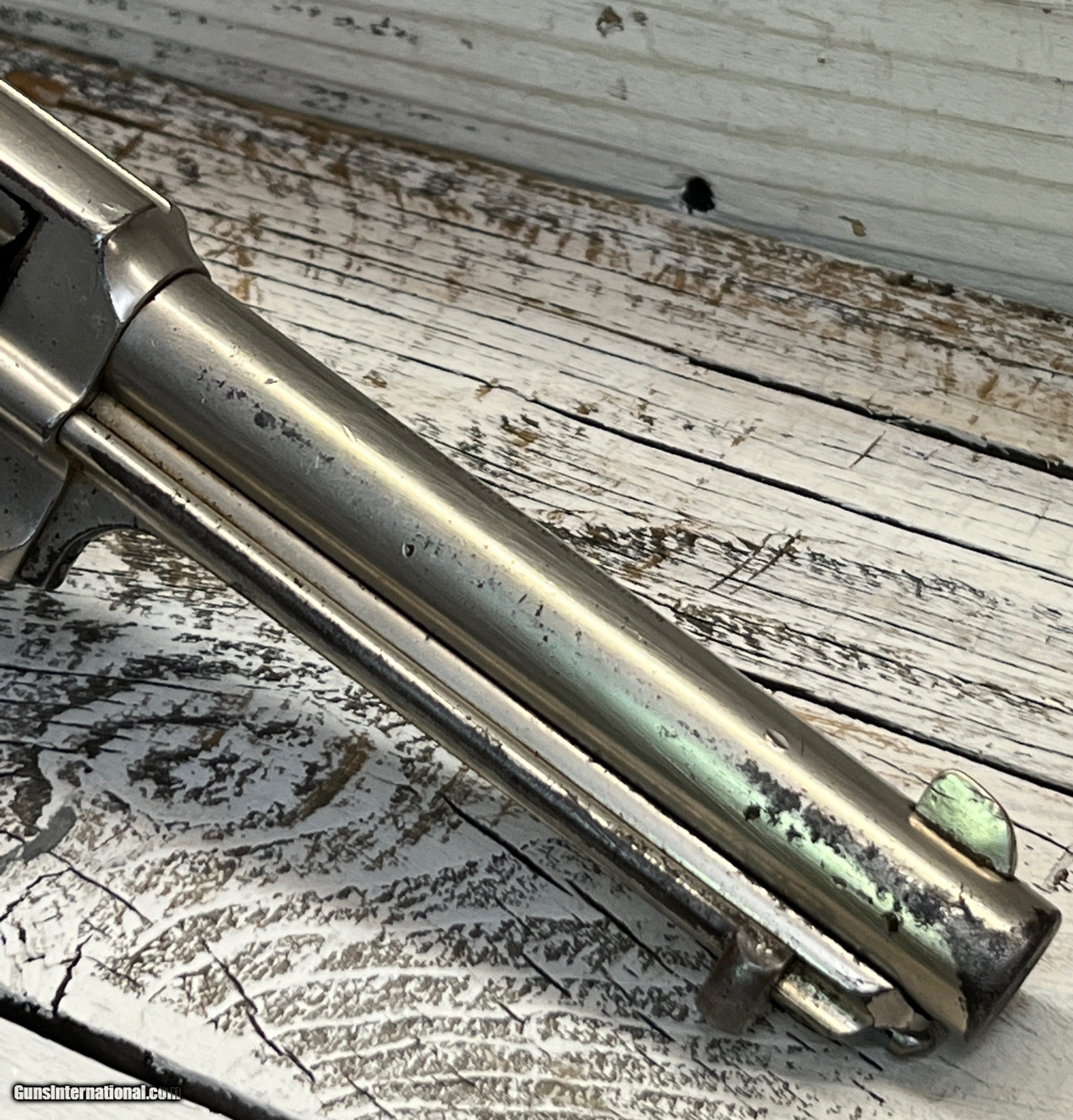 Description: Remington 1890 Single Action Revolver 44-40 WCF. Nickel finish. 5 3/4" barrel. Very rare, approx 2000 produced. SOLD Curio/Relic: Yes Antique: Yes Handgun Caliber: .44-40 Winchester (.44 WCF) Manufacturer: Remington Model: 1890 Barrel Length: 5 3/4” |