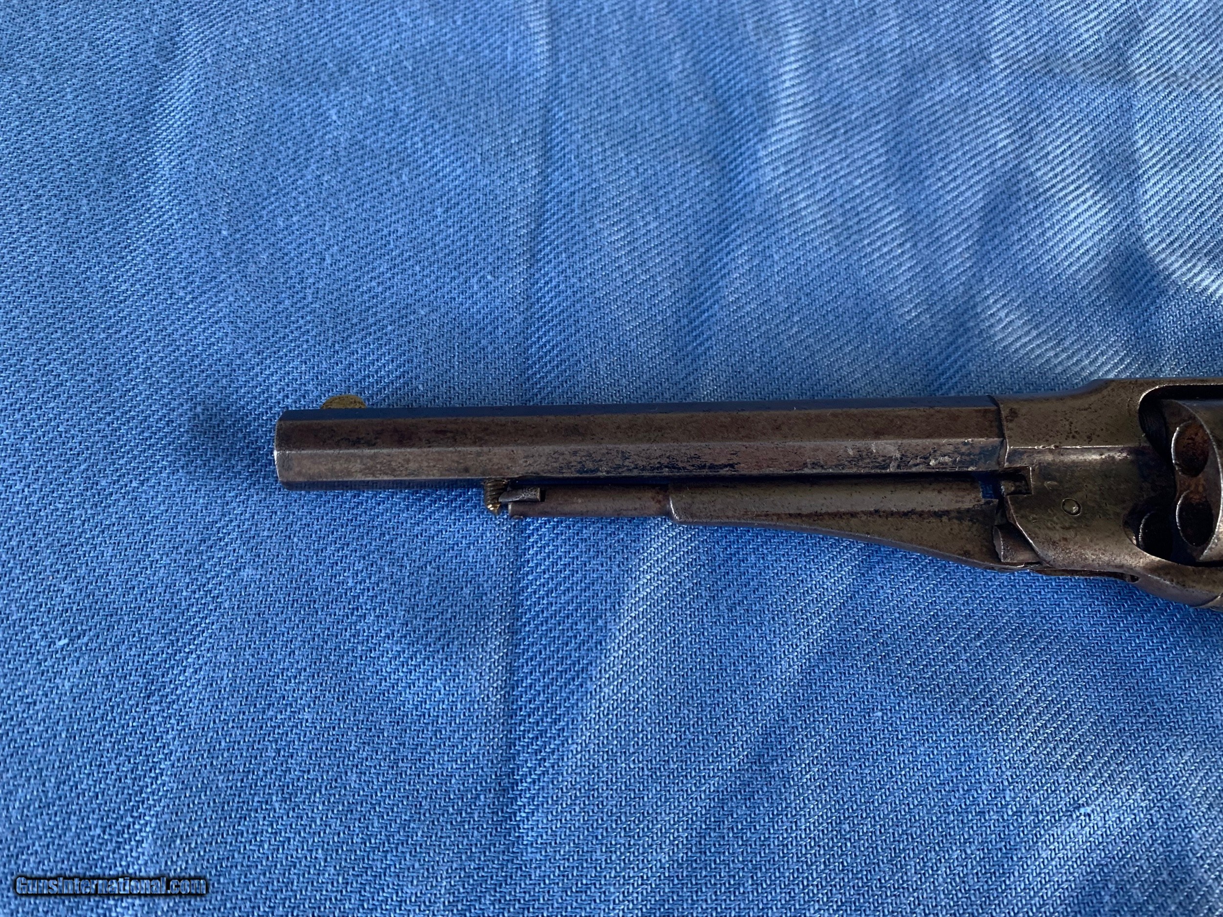 Description: Here's a rare bird ! Civil War 1863 . Serial number 9864 . 36 cal. 6 Shot Cylinder. 6 1/2" barrel. ONLY 2500 made ! Crisp example of a rare Civil War Remington New Model with only 2500 made in totol production ! Gun is in Super Fine Original Condition with enough finish to give it a very handsome appearance! Excellent working single action action. Gun is in excellent working condition. Nice bore . Sharp markings . With excellent walnut original grips. Please review my photos and please email me with any questions? 3 Day inspection as allways. Thank you for looking Little Jo Happy New Year ! There were 3 variations of this New Model . There were around 10000 made of all 3 variations! They where all serial numbered together . So it's hard to date this gun . Please go to the Flayderman Guide of Antique Arms for reference. According to Norm Flayderman only around 2500 of this variation where made . Thank you for your interest! Little Jo SOLD Antique: Yes Manufacturer: Remington Model: New Model Serial Number: 9854 Barrel Length: 6 1/2” Condition: Fine Plus |