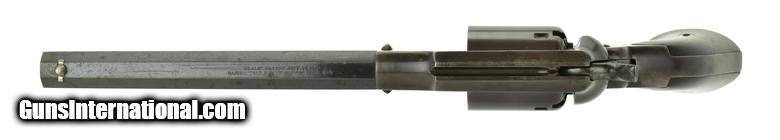 Remington Beal’s Army Model Revolver. Serial number 12 under the barrel and on the frame under the grips. Barrel has 95% bright blue. Cylinder has a blue-brown patina. Frame has a blue-gray patina. Bore has good rifling and is bright with pits. Sorry about the pits but it is serial number 12!!