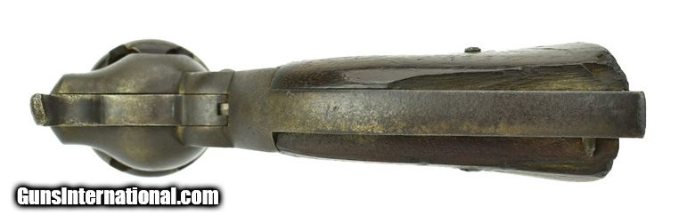 Description: Remington Beal’s Army Revolver. .44 Caliber 6-shot. Action works perfectly. Note: This revolver has seen use for a lengthy period of time. The grips are both broken and missing the broken parts no doubt during the period of use. We feel the grips should stay as they are and give the revolver a certain amount of “charm” and flavor. Serial number on barrel and bottom flat is number 575. SOLD Antique: Yes |