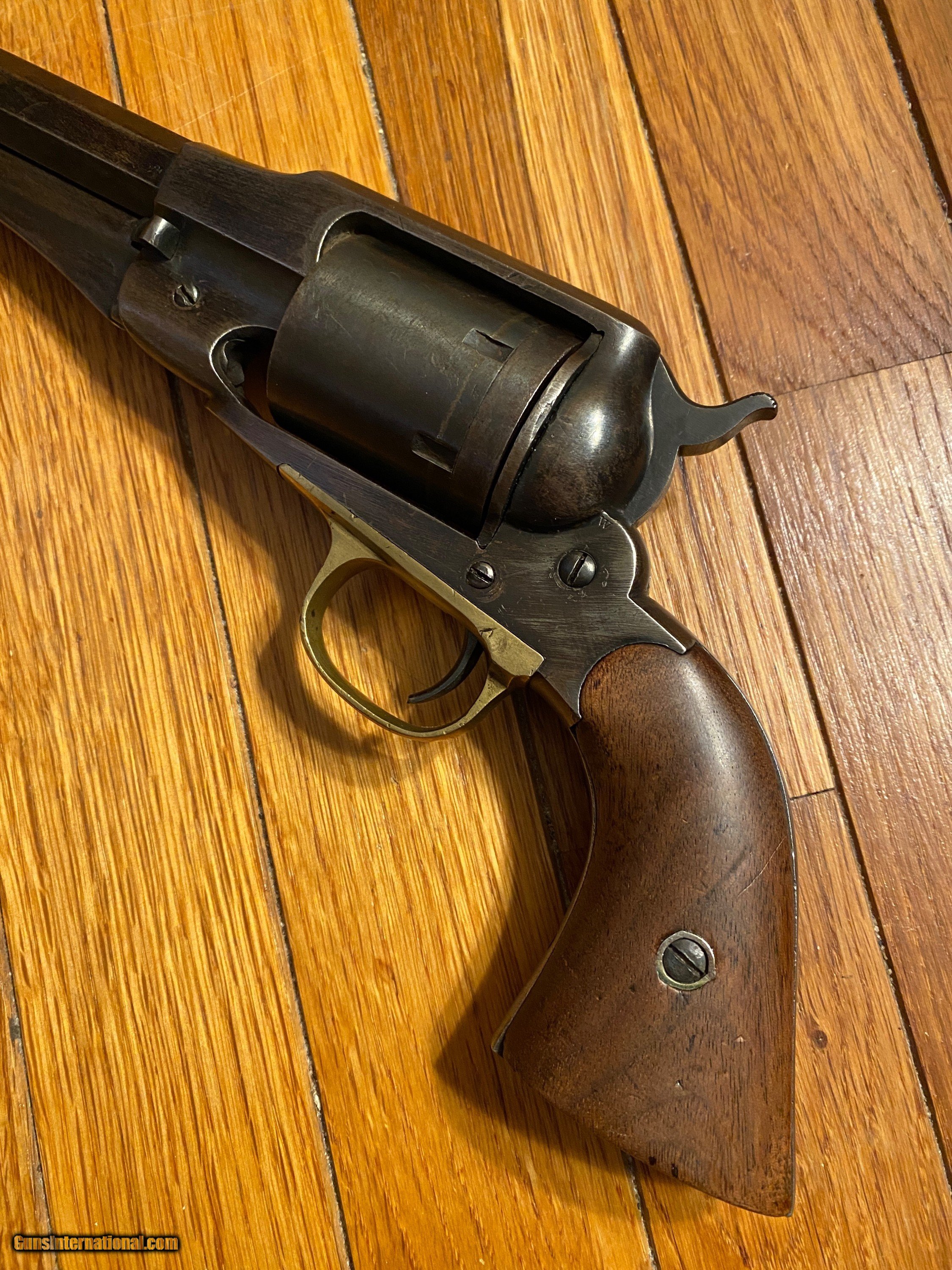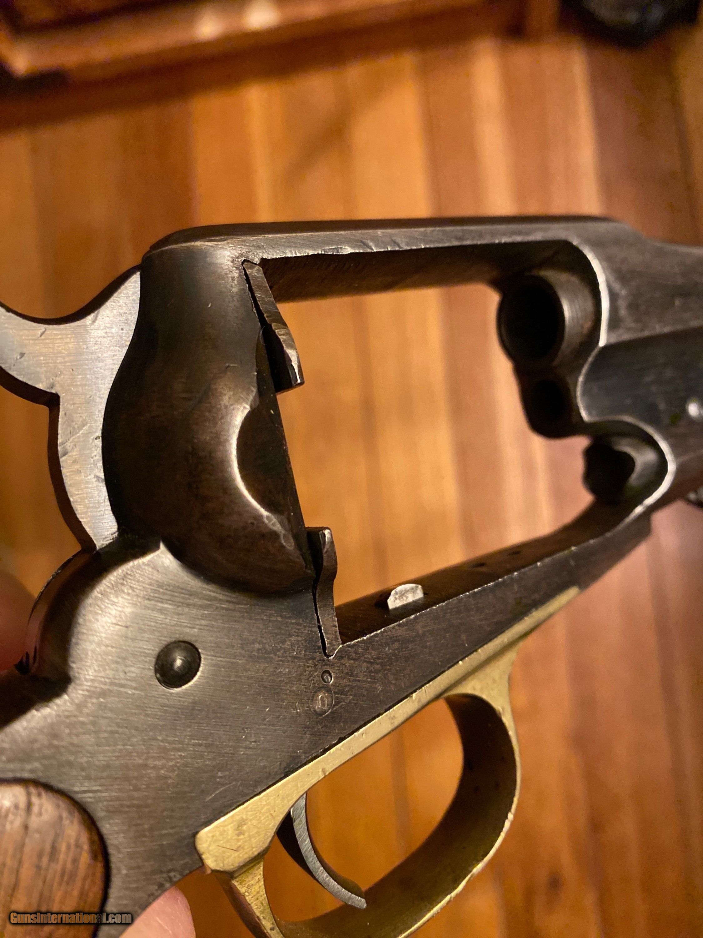 Description: Up for sale is a very nice condition Remington model 1858 conversion revolver. This was an early Remington/Smith & Wesson cartridge conversion in 44 caliber. Take a look at the photos and if you have any questions, feel free to contact me. This is an antique revolver and does not require an FFL. Note: recoil plate that was added for the conversion needs a new screw. Antique: Yes Handgun Caliber: .44 Remington Manufacturer: Remington Model: 1858 Army Serial Number: 87343 Bore Info: Very nice rifling Chambers: 6 Condition: Very good Wood Condition: Very good Bore Condition: Shiny. Action: Single Action Price: $1,600.00 Shipping: $25.00 Buy Now Contact Seller |