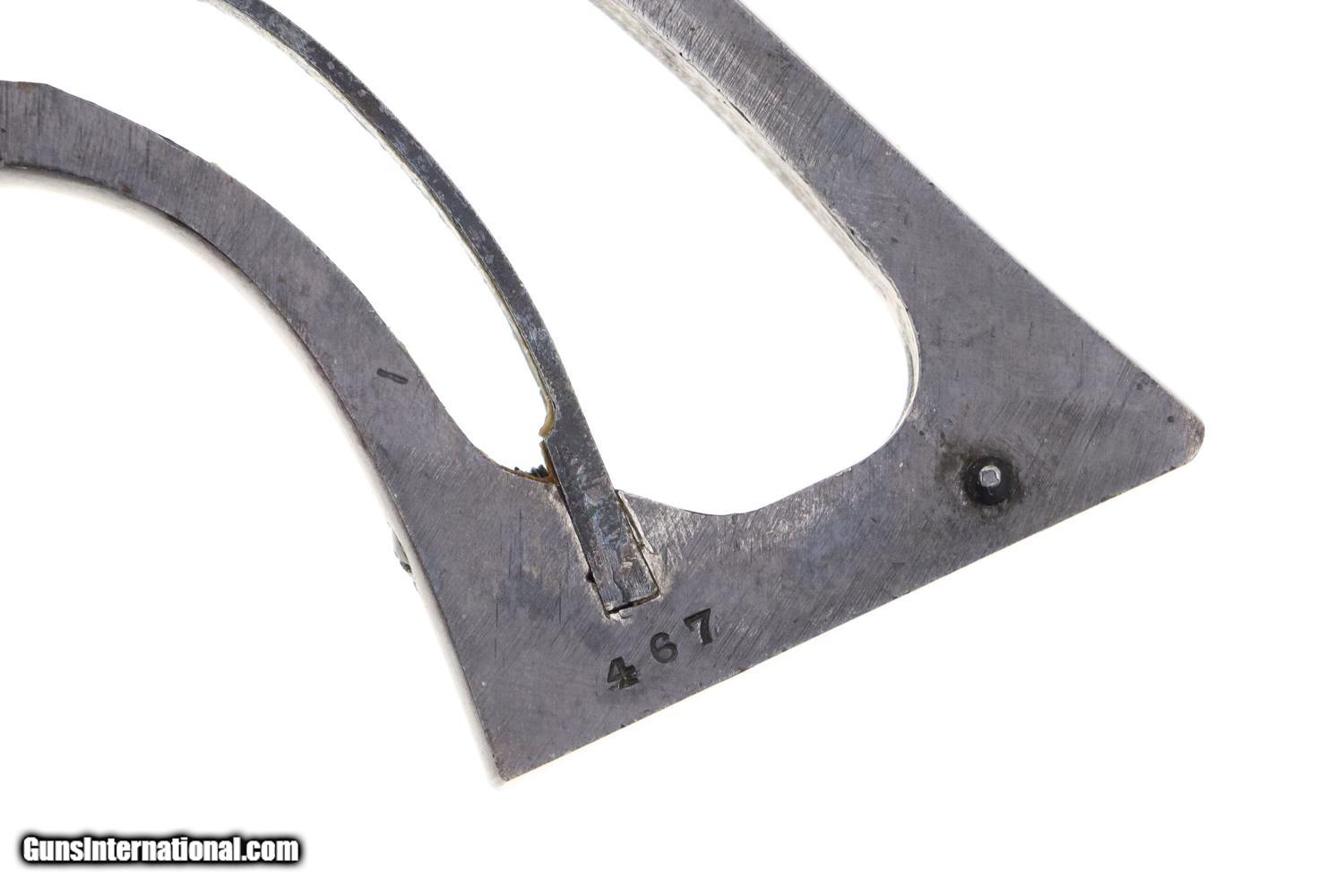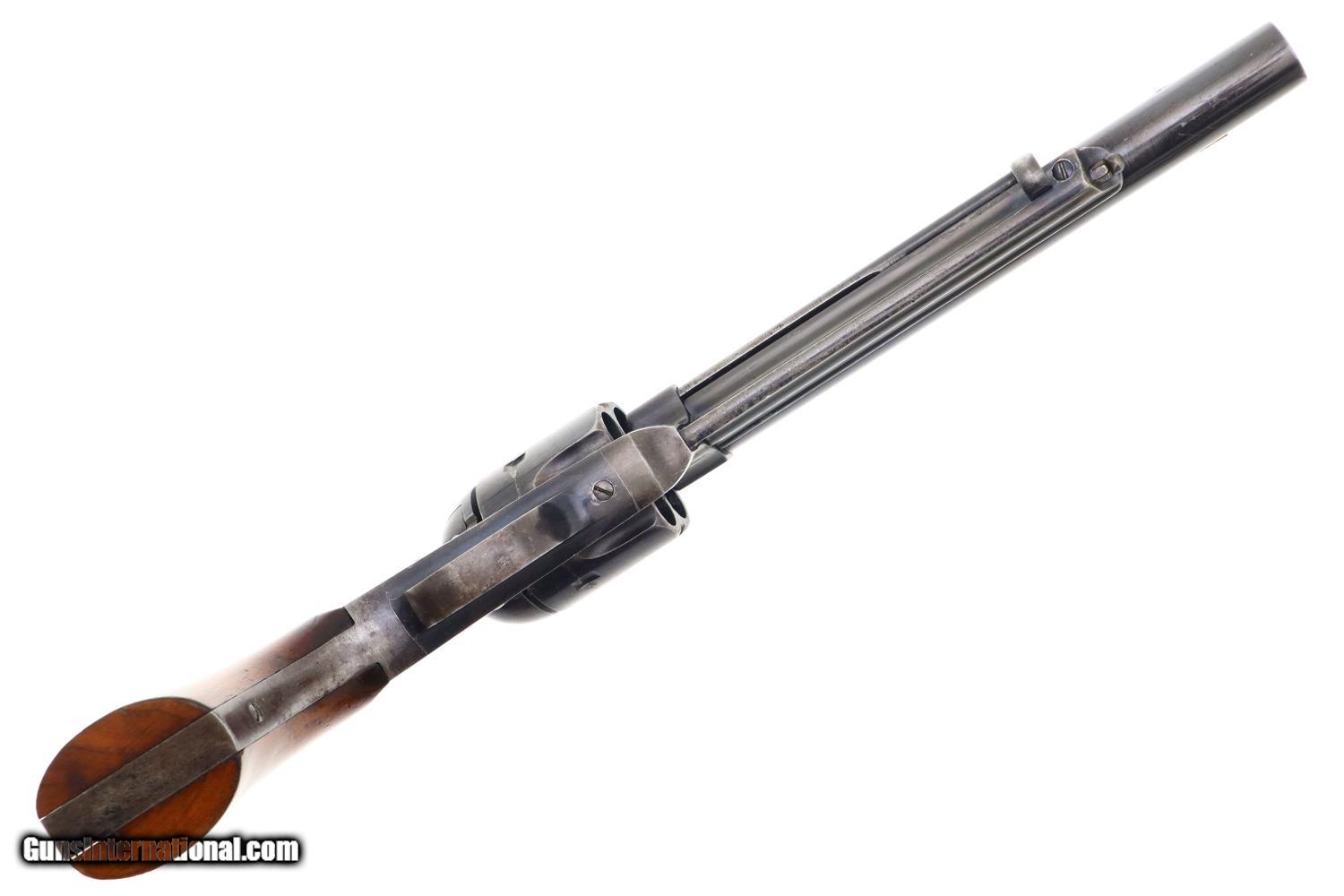 Description: Synopsis: High original condition ANTIQUE Remington Model 1875 Revolver, an early production example SN: 467, as made between 1875-1889, total production estimated between 25,000-30,000 revolvers. Description: Standard configuration Remington Model 1875 Revolver, SAA configuration, with 7.5" barrel and fixed sights. Remington single line address on top of barrel with caliber "44" on the left side of frame. SN: 467 marked on frame and loading gate. Blued components with color case hardened hammer and trigger. Smooth walnut grips that are unnumbered. Condition: VG+ original finish with smooth holster/operational wear one would expect from a carried revolver after 150 years. Bright bore with sharp rifling. Perfect manual mechanics with each cylinder indexing properly. ANTIQUE! ~~Insured shipping fee of $75; most packages shipped using FedEx 2nd Day.~~ SOLD Antique: Yes Manufacturer: Remington Serial Number: 3342 Caliber Info: 0.44 |
