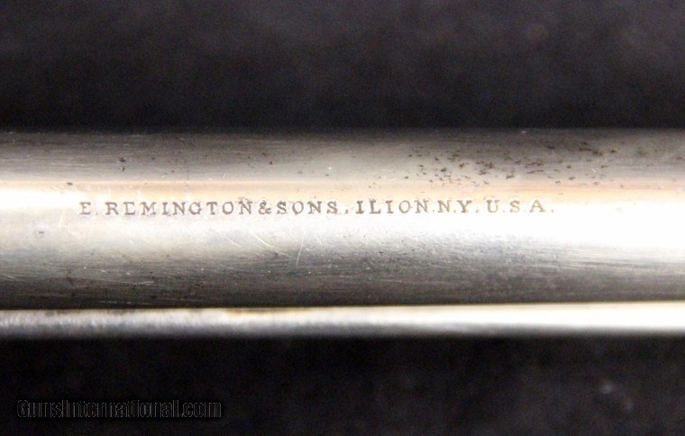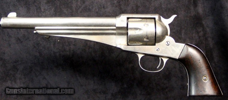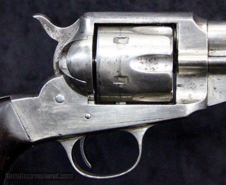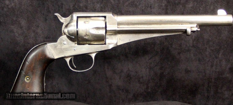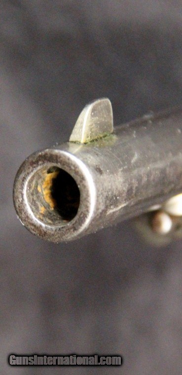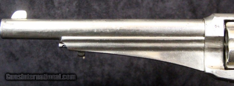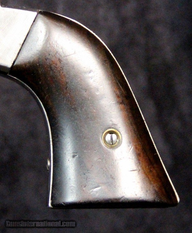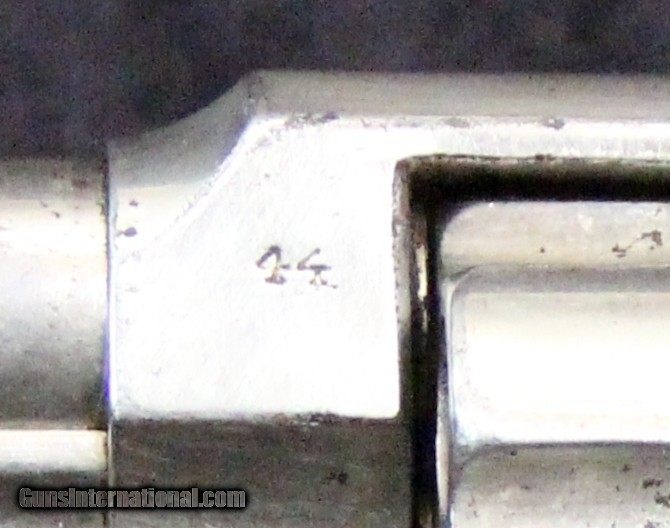 Description: .44-40, #1093, 7 1/2 inch barrel, nickel finish, 2 piece walnut grips, "44" stamped on frame in front of cylinder, 1970's. Condition: very good bore,strong rifling, 90% nickel overall, excellent grips, excellent mechanically, excellent marks. SOLD Antique: Yes |