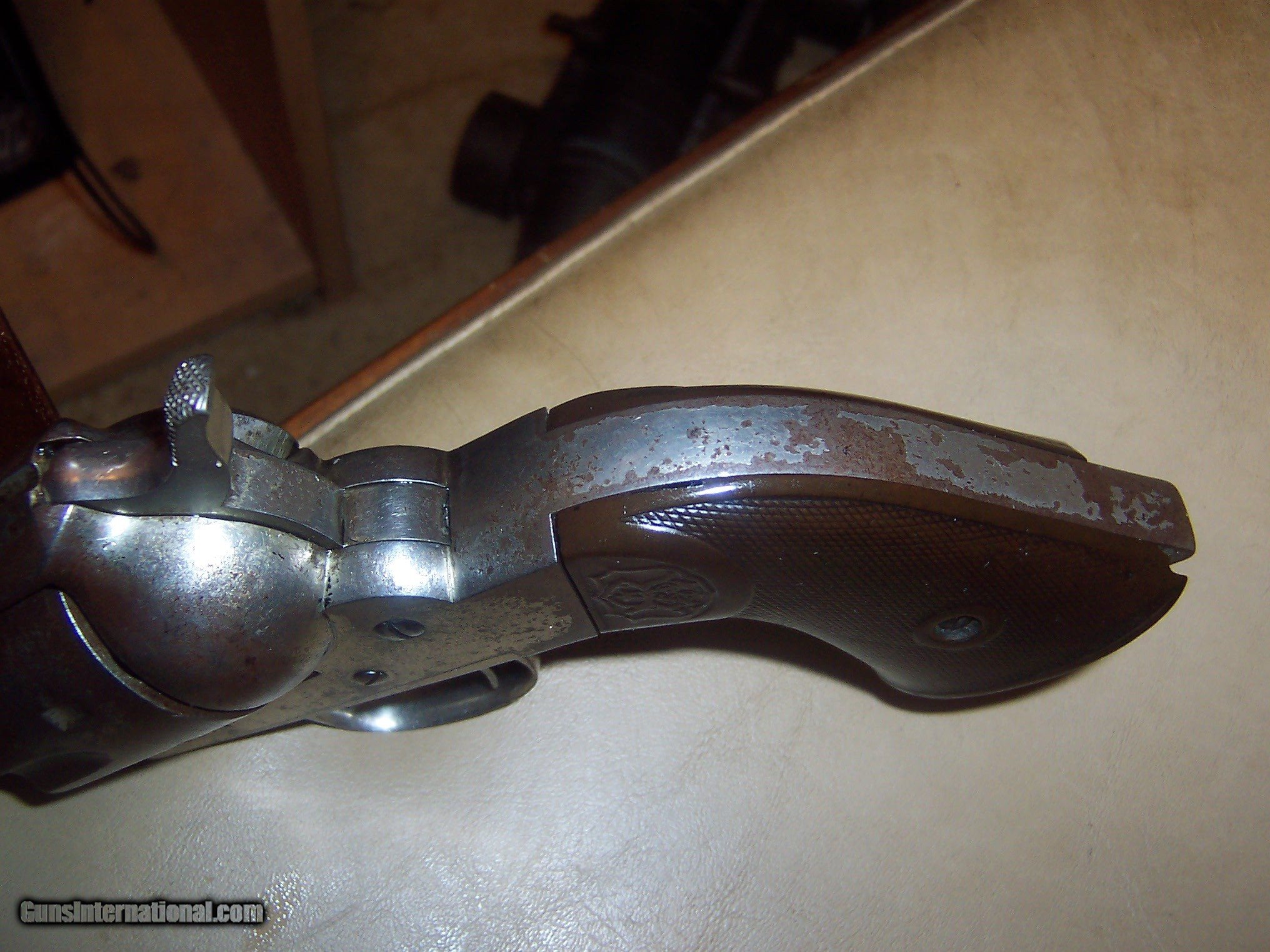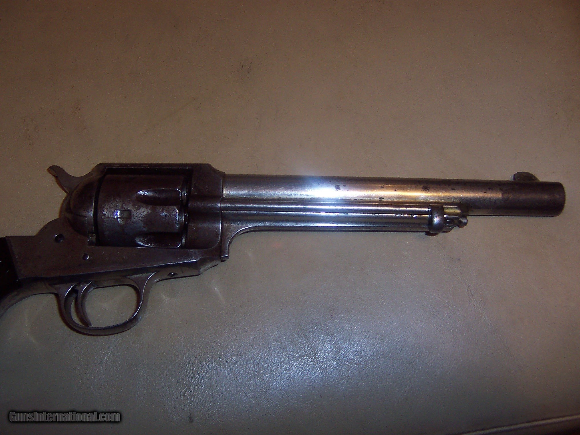 Description: frame marked 44 cfw vg bore some roughness;;; works fine in dry fire 60% original factory nickel 44-40 caliber;; spring on cylinder pin works i dont see any serial numbers address on barrel fine made before 1897 see broken grips;;; i have ordered some repo grips for looks serial # 1745 SOLD Antique: Yes Manufacturer: remingtonn Model: 1890 |