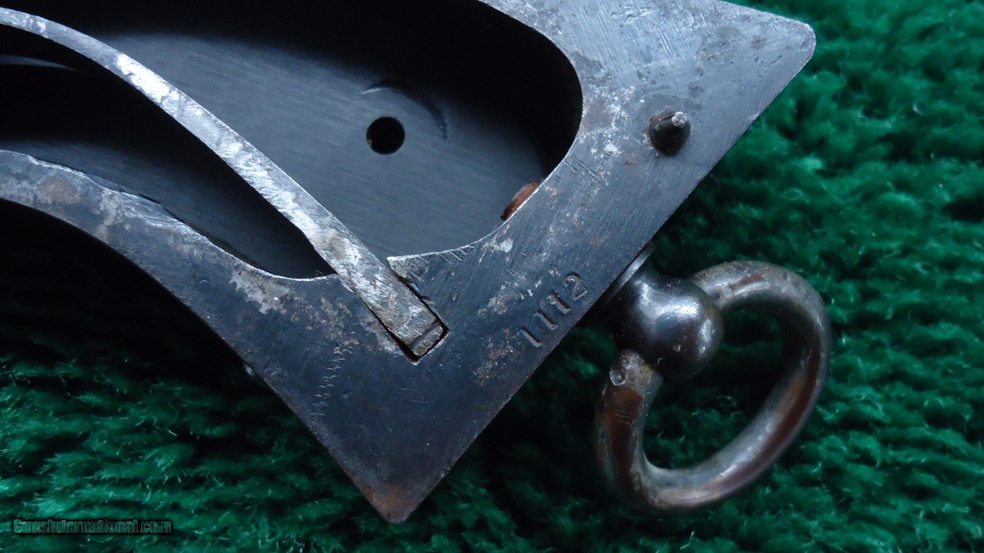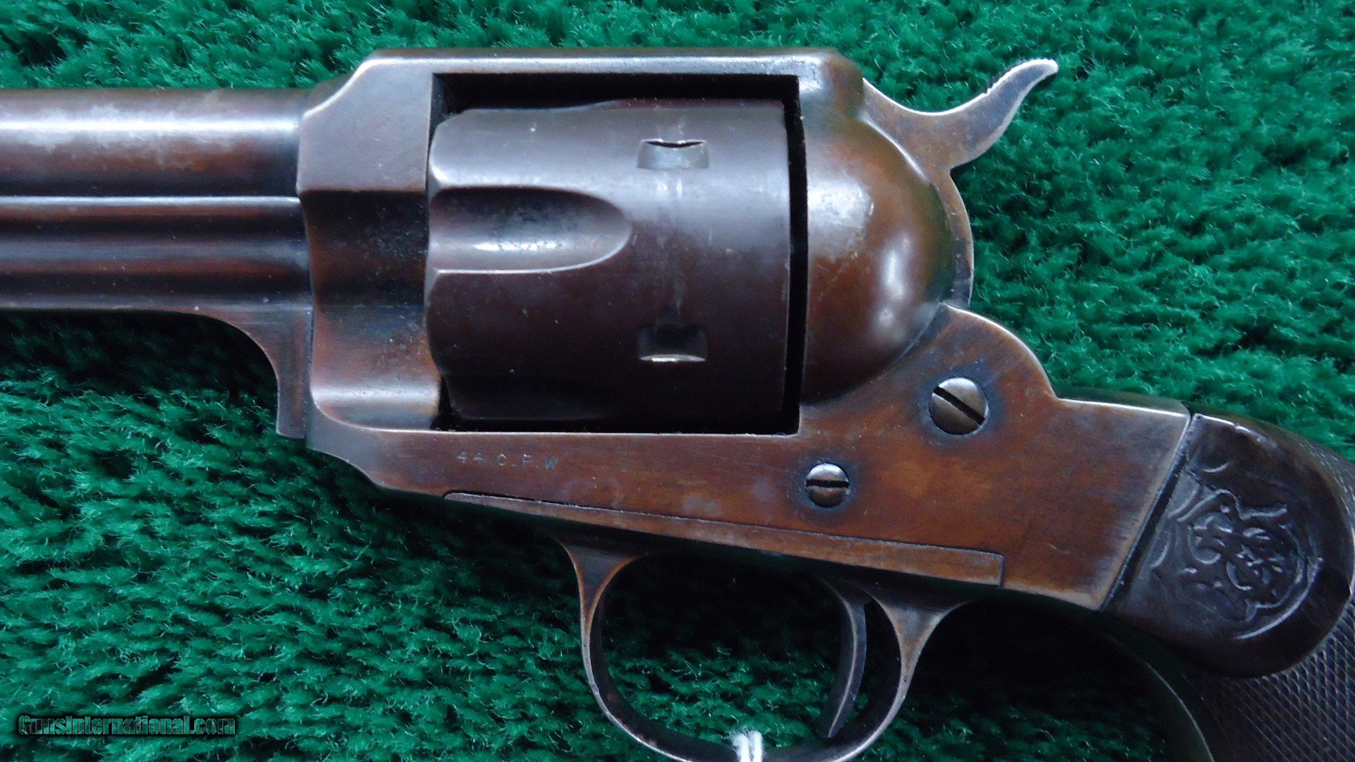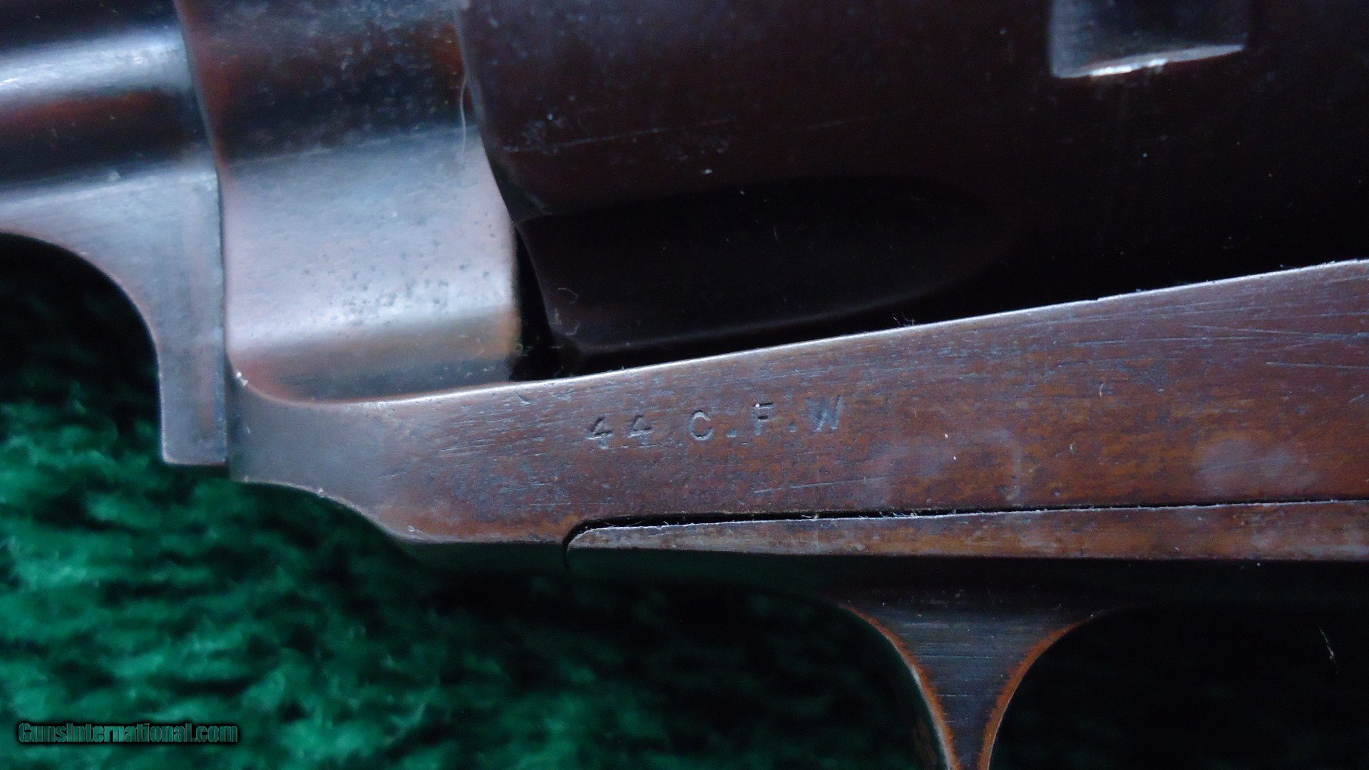 Description: 44-40 WCF caliber 6 shot revolver with a 5-3/4 inch round barrel. Fairly scarce configuration with a blued finish as most were nickel. Nice markings and sharp rifling with scattered roughness. Original hard rubber grips with Remington monogram show some wear but are still in good condition. Correct lanyard loop. Mechanics are tight and serviceable. Blade front sight. About 2,000 of these were made between 1891-1984. Leroy Merz Antique Firearms specializes in antique and vintage Winchesters and other fine American firearms. Since 1965 Mr. Merz has taken part in the world of firearms and has been a contributor to many well known reference books. We have hundreds of additional guns in every price range at our home online. Search for Merz Antiques in google. SOLD Antique: Yes Handgun Caliber: .44-40 Winchester (.44 WCF) |