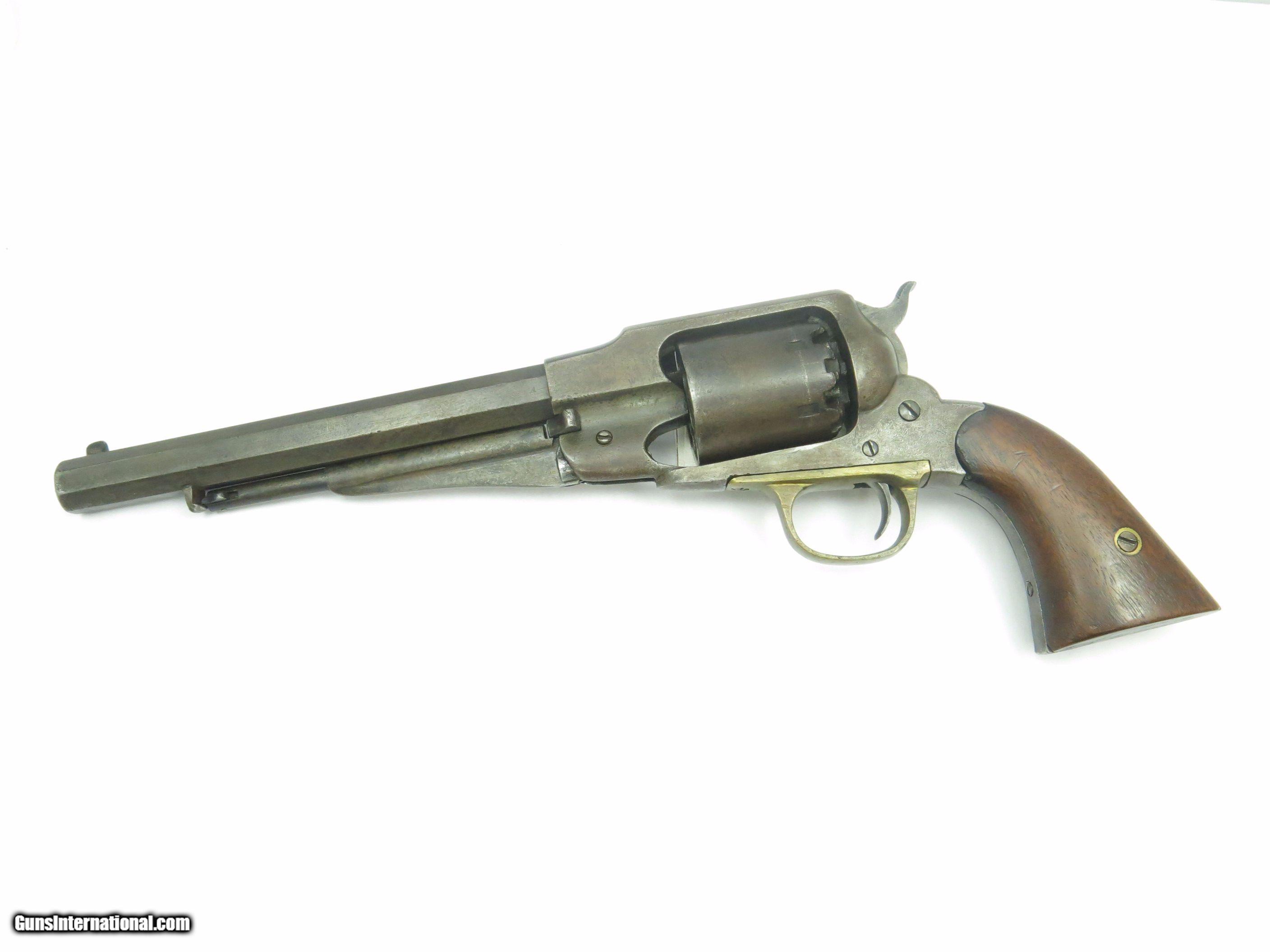 Description: Remington New Model Army .44 Cal. Works OK. Brown Patina. Very Decent. See pictures for details. SOLD Antique: Yes Manufacturer: Remington Model: New Model Army Caliber Info: .44 |