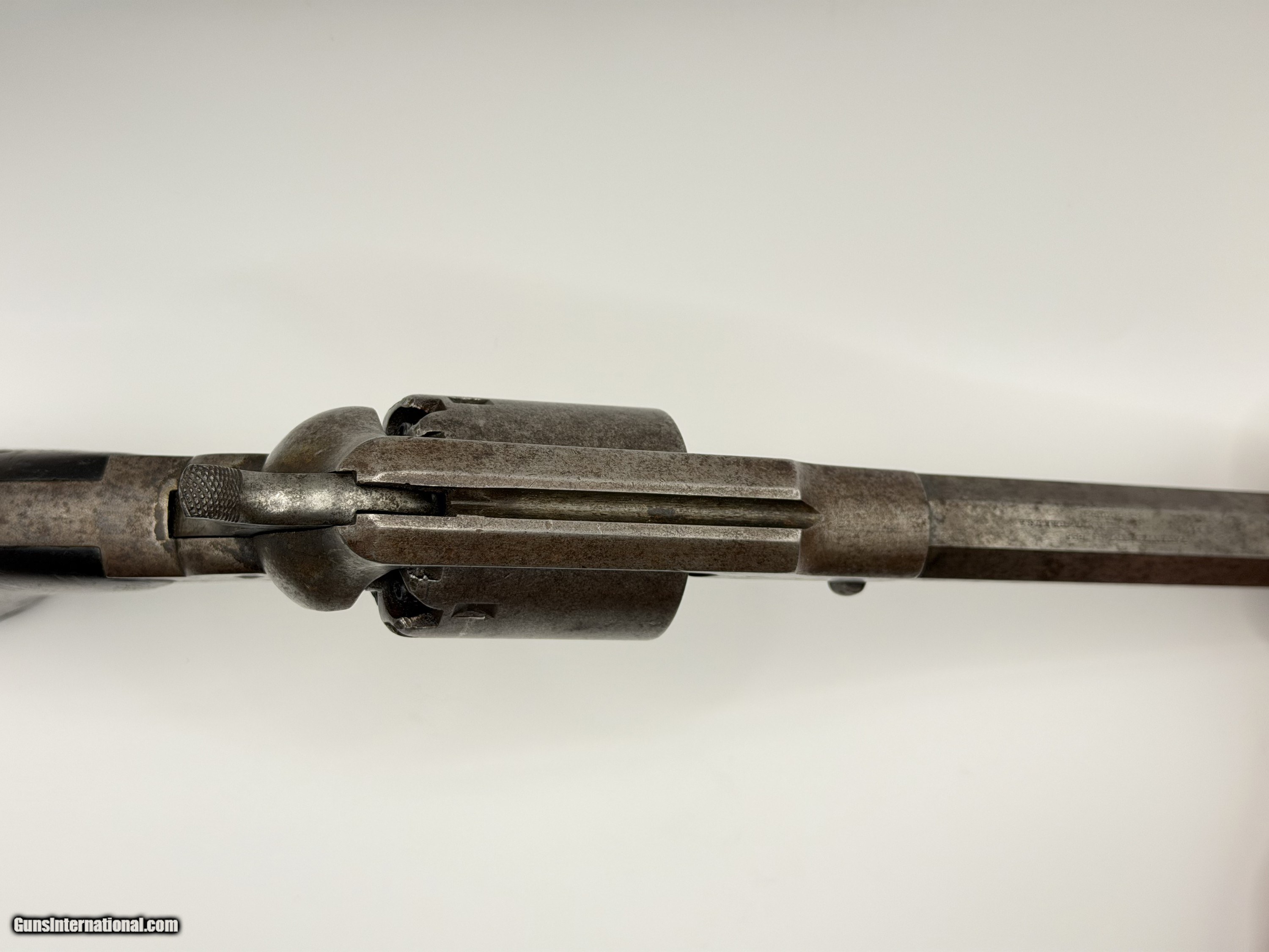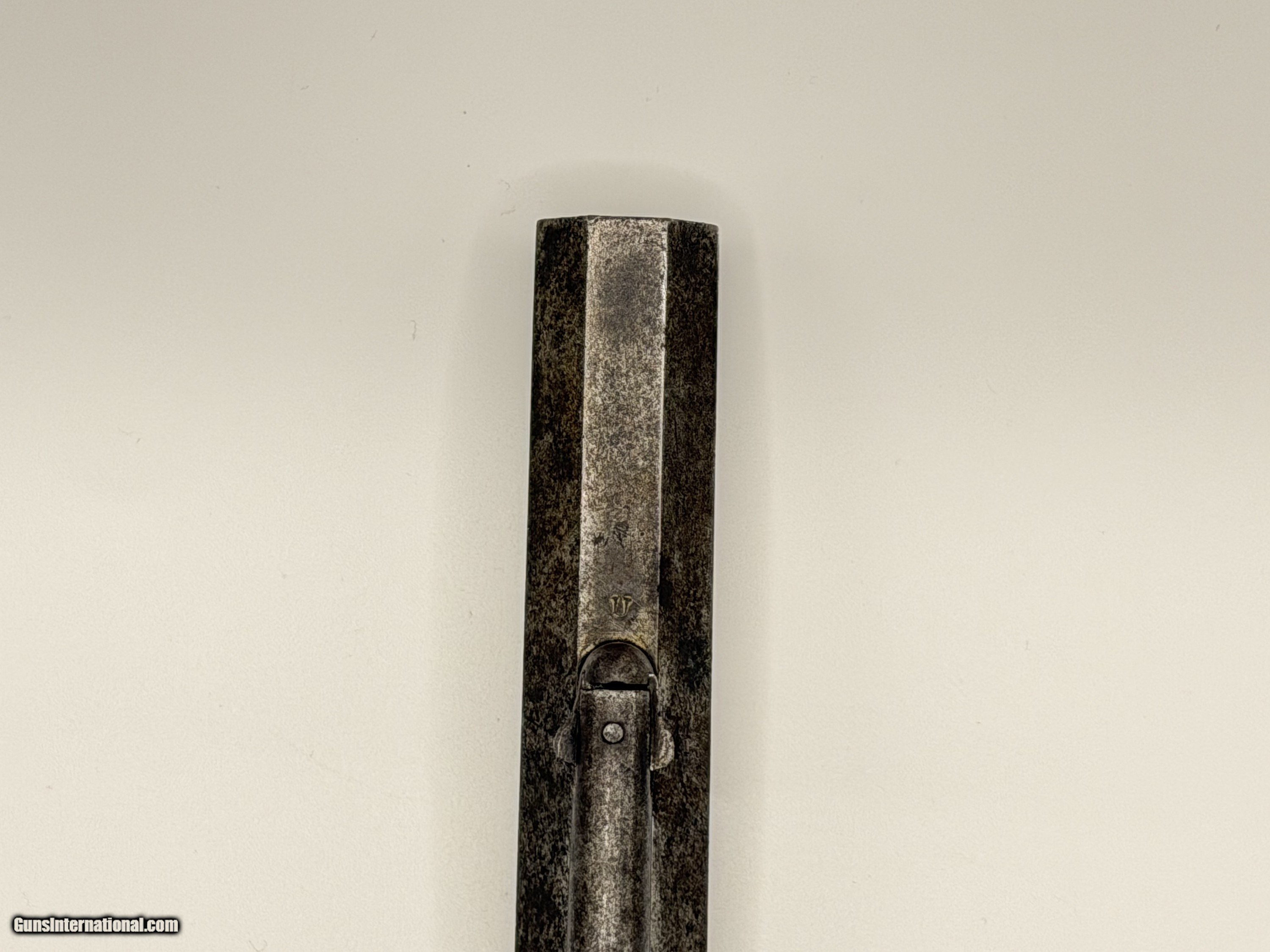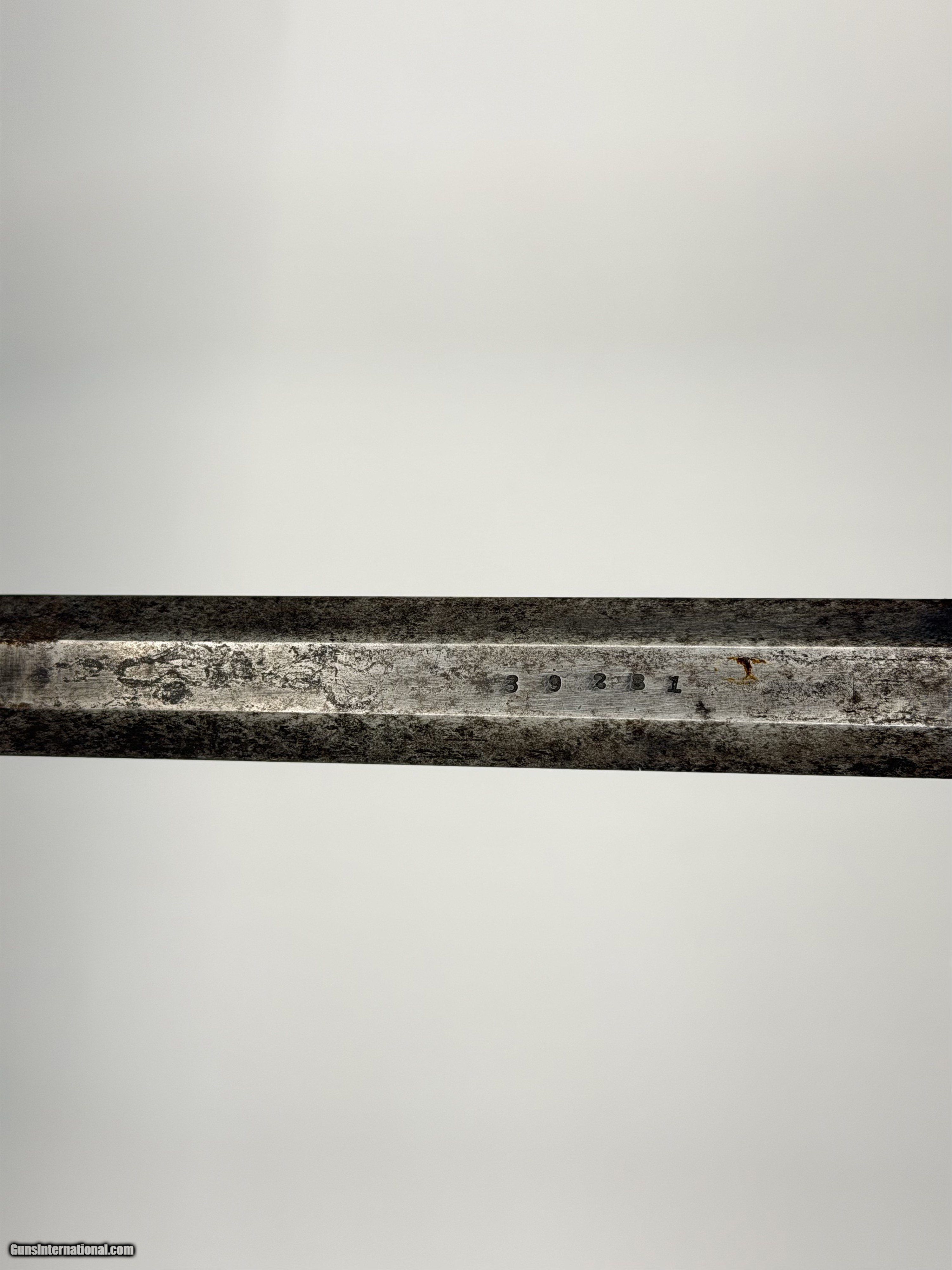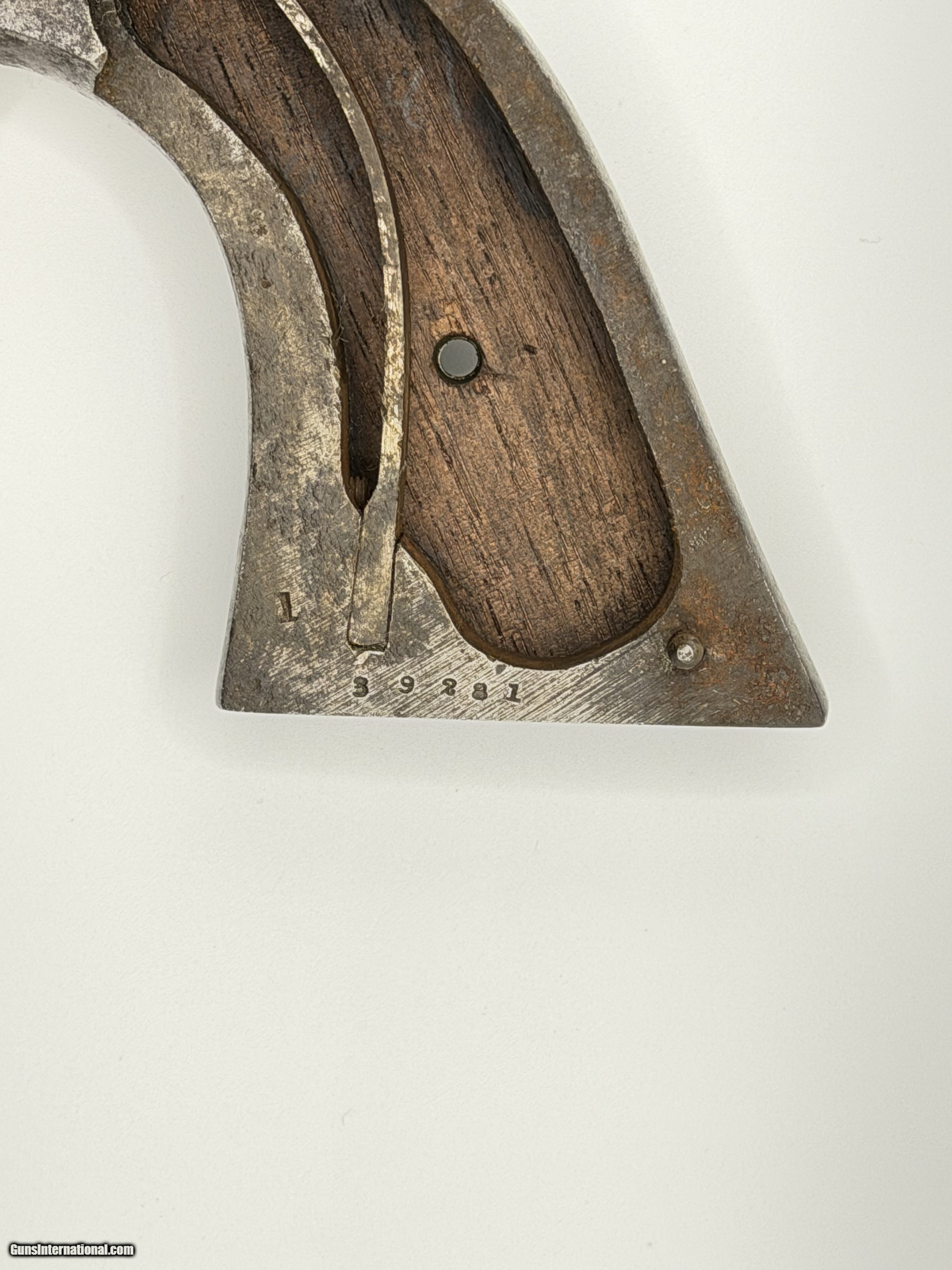 Antique: Yes Handgun Caliber: .44 Manufacturer: E. Remington & Sons Model: New Model Army Serial Number: 39281 Barrel Length: 8 Chambers: Six Ejectors: Loading lever with integrated rammer Condition: Original finish present with expected patina, Excellent mechanical condition; tight lockup and correct timing Metal Condition: Very good overall with honest age-related wear; markings remain visible Wood Condition: Original grips in good condition with a faint but visible cartouche on the left grip Bore Condition: Strong rifling Barrel Type: Steel, original Action: Single Manufacture Date: 1863 Grips: Original Price: $2,700.00 Buy Now Pay with