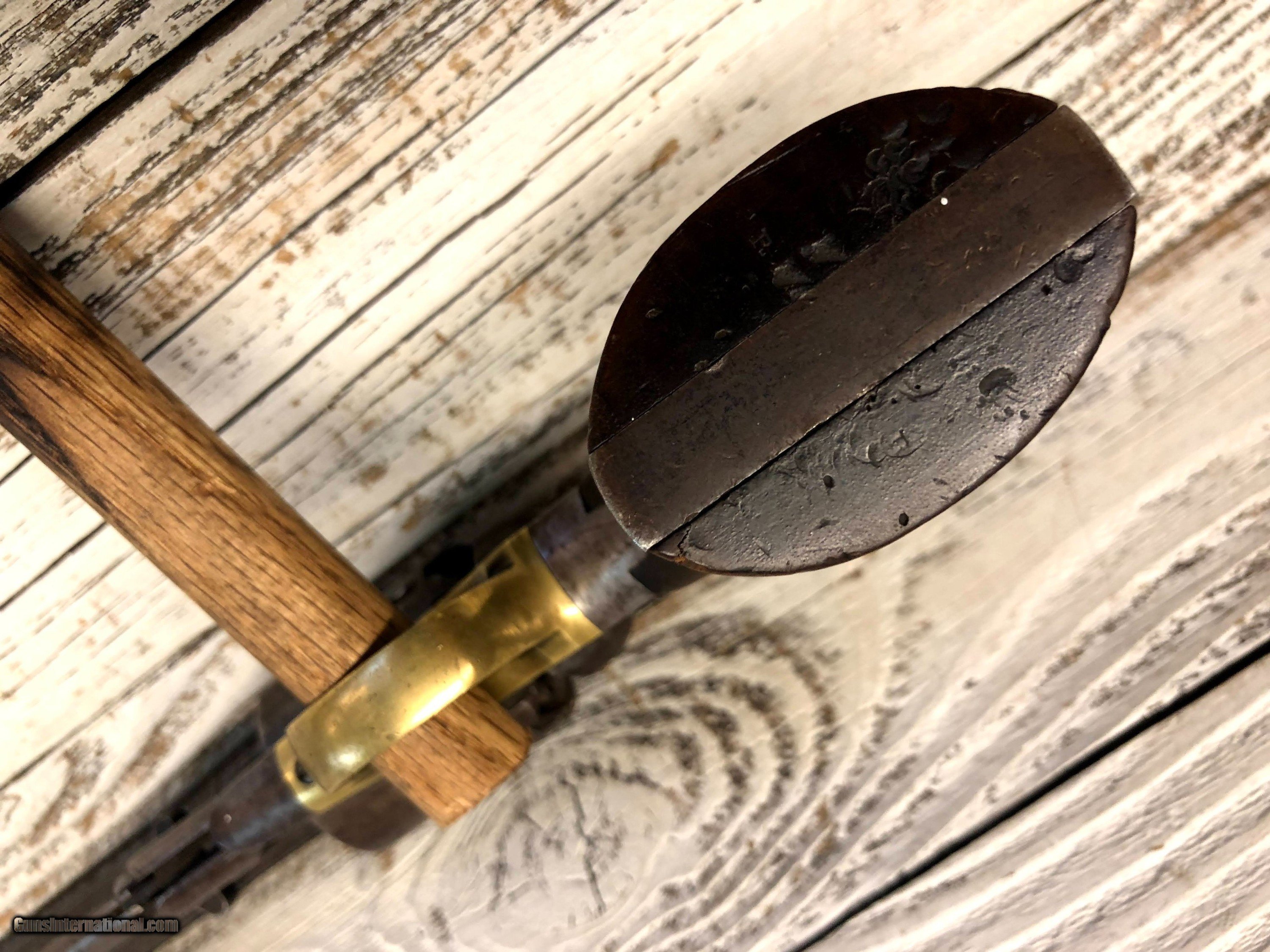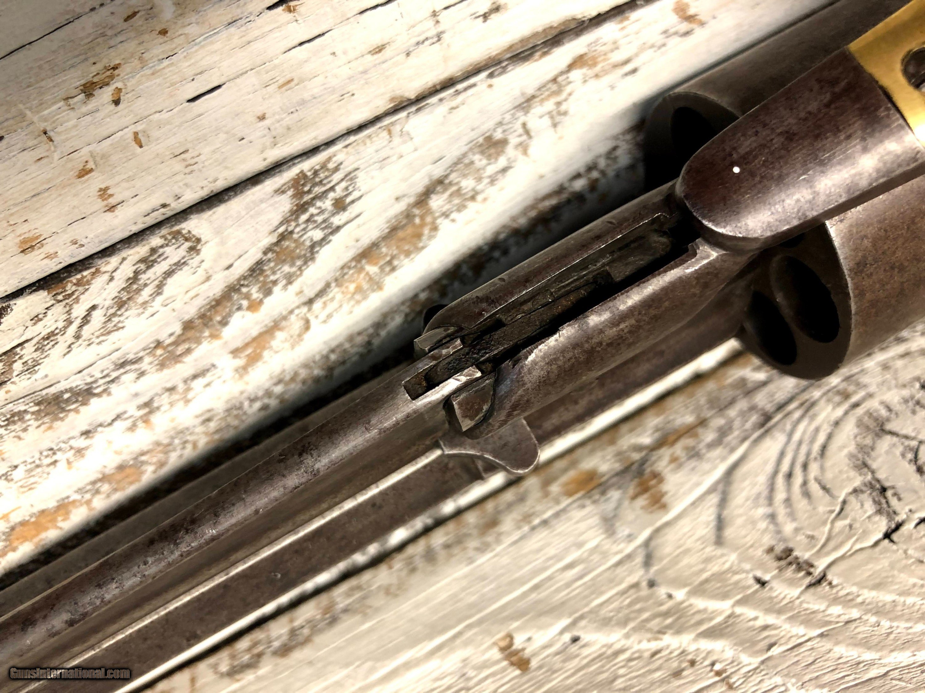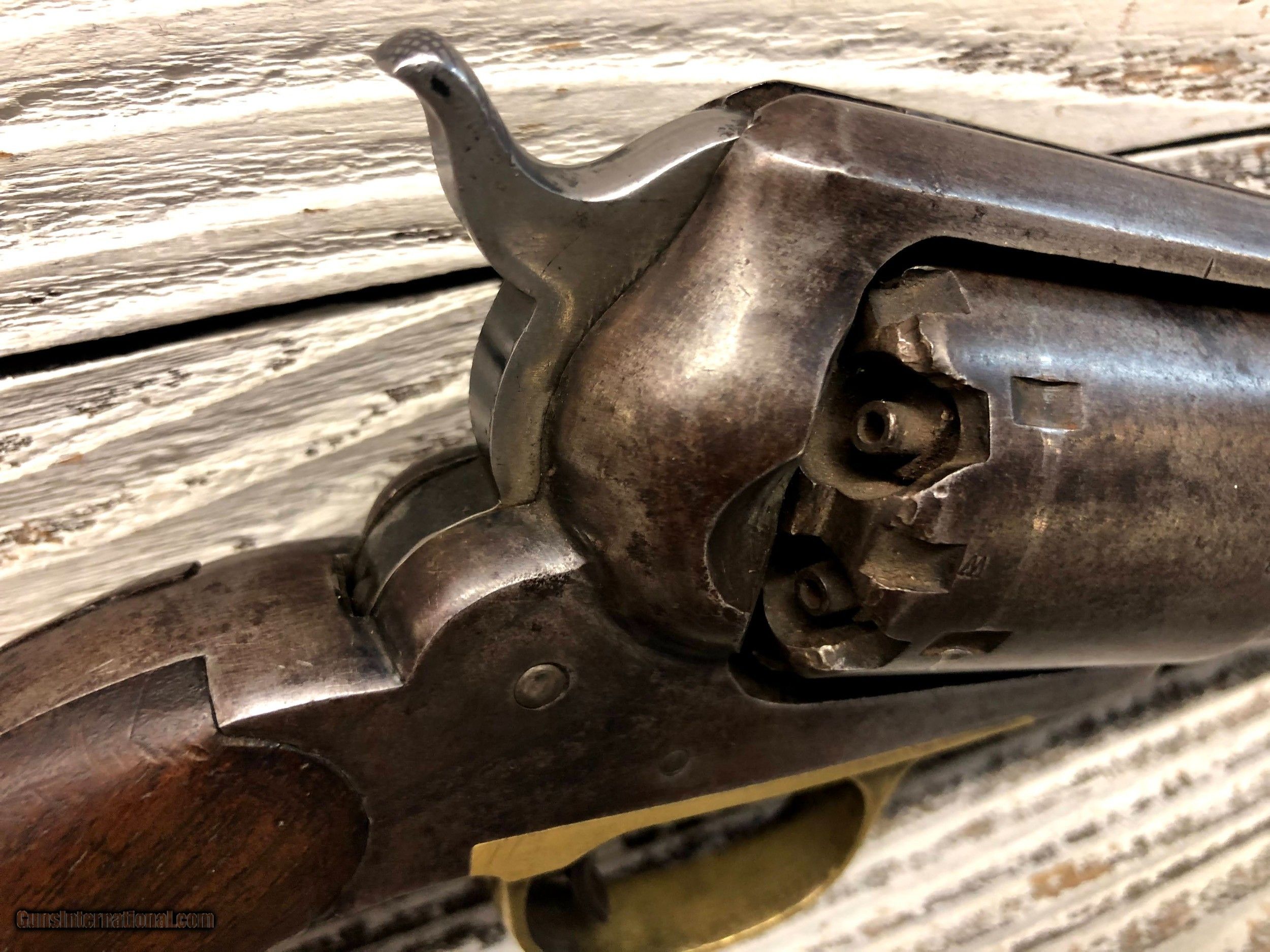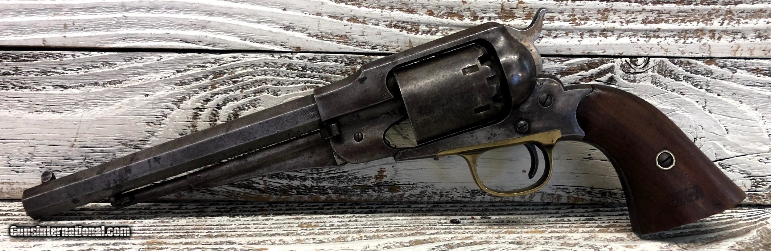 Description: Perfectly functioning Remington New Model Army in 44 Cal Has limitred wear, patina is solid, not rust, bore is clean and strong. Mechanics function as they should, probably possible to shoot this gun. SOLD Handgun Caliber: .44 |
