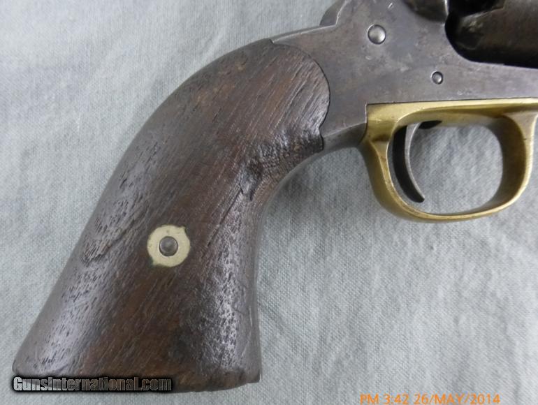 Description: Remington New Model Army Percussion Civil War revolver Remington New Model Army Percussion Civil War revolver, 44 cal., 6-shot 8” Bbl. Ser #56380 on Frame under grip and BBL. Standard Markings, “Patented Sept14 1858/E Remington & sons Ilion New York, USA/ New Model”, has military inspector’s markings on S,P, various parts. The bore is excellent with a lot of rifling and some corrosion; cylinder chambers are a little dirty. Action works well and locks up very tight when cocked, metal is clean with some faded finish on barrel and cylinder small light patches of corrosion. Walnut grips fit tightly, have a few dents, chips etc. Overall a nice VG original antique Civil War era Rem. Army suitable for collector/shooter. (14-79) I take Visa/Mastercard, add 3%. Allow two weeks for all checks, whether bank, personal or certified to clear. It is also possible to wire funds to my account for instant credit for a $20.00 wire charge. 3 day- no questions asked return period for refund of price paid for gun (including shipping or credit card charges). Call or email with any questions or for more pictures. Guns are antique and should not be fired without examination by gunsmith. $50 shipping for long guns, $30 for hand guns to lower 48 states, about $50-$75 to most European countries and $70-$80 to Australia for antique handguns, carbines $75-$125. We can generally get insurance if you want through shipper but coverage is limited. Notify me if you want it. You can send 20% down- balance in 90 days for installment payment plan. No refunds on installment plans. I have shipped to Norway (long gun w/fragile stock) see feedback, England (Winchester1876, Rem. Dbl. Derr.), Northern Ireland, France, Australia and Sweden. Email if you are not U.S. for estimated shipping costs, payment methods, etc. I am always buying and trading for antique and collectible guns, Indian items, rare ammo, etc. Email what you have got for sale or trade. SOLD Antique: Yes |