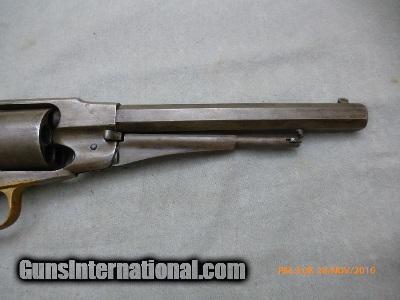 Description: Remington New Model Army Percussion Civil War Revolver 16-94 Remington New Model Army Percussion Civil War Revolver, 44 cal., 6-shot 8” Bbl. Ser #60736 on BBl & Frame. Standard Markings, “Patented Sept14 1858/E Remington & Sons Ilion New York, USA/New Model” are clear and sharp, has military inspector’s markings on various parts. The bore is very good/fine with 75% of rifling, and some corrosion; cylinder chambers are clean. Action works well and locks up very tight when cocked, metal is very clean with virtually no corrosion on cylinder and frame and a little finish under the loading lever. Walnut grips fit tightly, have a very feint remnant of a cartouche, and one very small chip at toe of right grip etc. Overall a good original antique Civil War Era Rem. Army suitable for collector/shooter. (16-94) $1,750.00 I take Visa/MasterCard, add 3%. Allow two weeks for all checks, whether bank, personal or certified to clear. It is also possible to wire funds to my account for instant credit for a $20.00 wire charge. 3 day- no questions asked return period for refund of price paid for gun. (Not including shipping or credit card charges). Call or email with any questions or for more pictures. Guns are antique and should not be fired without examination by gunsmith. $50 shipping for long guns, $30 for hand guns to lower 48 states, about $50-$75 to most European countries and $70-$80 to Australia for antique handguns, carbines $75-$125. We can generally get insurance if you want through shipper but coverage is limited. Notify me if you want it. You can send 20% down- balance in 90 days for installment payment plan. No refunds on installment plans. I have shipped to Norway (long gun w/fragile stock) see feedback, England (Winchester1876, Rem. Dbl. Derr.), Northern Ireland, France, Australia and Sweden. Email if you are not U.S. for estimated shipping costs, payment methods, etc. I am always buying and trading for antique and collectible guns, Indian items, rare ammo, etc. Email what you have got for sale or trade. SOLD Antique: Yes Serial Number: 60736 |