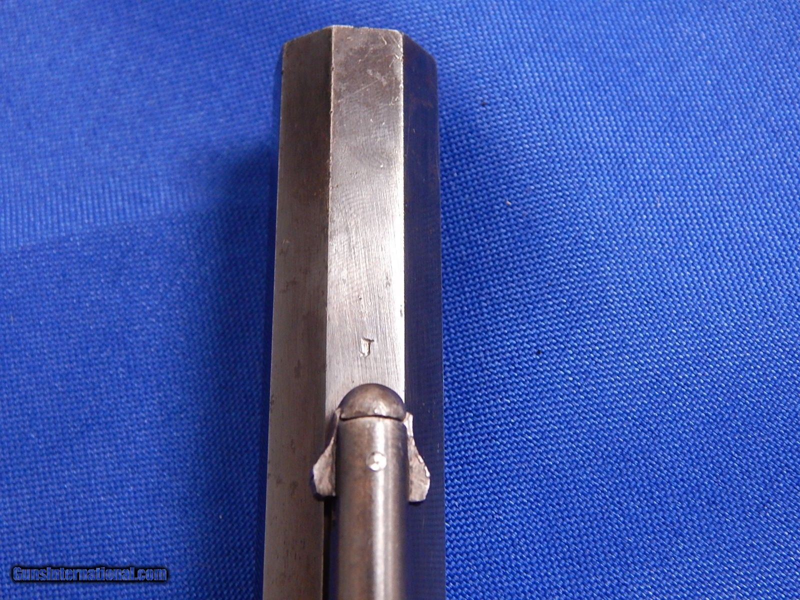 Description: This Remington New Model Army Revolver remaisn in very fine condition. Both barrel and frame have NJ stampings for the State of New Jersey. All markings are present and sub-inspections can be found on most parts. The serial number 71xxx is matching on barrel, frame and penciled on inside of grips.The rear of cylinder is not numbered as with many remington revolvers and just has a small sub-inspection. The actions are crisp and tight. Bore has strong rifling with a little minor scattered peppering. The original wood grips are very fine and show a few tiny chips. The hammer shows around 50% of its case color. Barrel retains around 85% bright blue. Cylinder shows around 65-70% blue. The frame blue has softened to mostly a blue/plumb blue mixture. Pistol overall still shows a nice even appearance and is a real crisp and clean example. Revolver measures 14 1/2" with a 8" barrel. SOLD Antique: Yes Manufacturer: E.Remington & Sons Model: New Model Serial Number: 71xxx Barrel Length: 8 Caliber Info: 44 Condition: Very Fine Metal Condition: Very Fine Wood Condition: Very Fine Bore Condition: Very Fine |