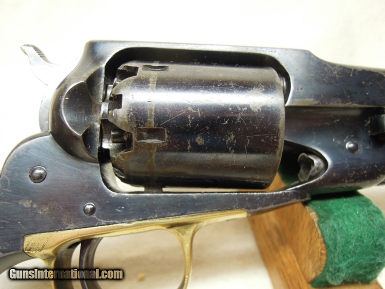 Description: Early Remington New Model Army Revolver - Cal. .44 - 8" Bbl. - SN 30XXX(1863).- all matching numbers. Bore is near perfect, bright and shiny with sharp, crisp rifling - excellent action with perfect timing and lock-up. Metal is excellent with no rust, pits, or corrosion and retains 85% to 90% + original blue overall with some thinning on the backstrap - about 50% case color remains on the hammer. Sharp markings and US sub-inspector marks on frame, barrel, cylinder, and guard. Very early manufacture barrels were of the 1861 or "Transition" style and did not have the "New Model" marking and had the early "cone" style front sight - this one appears to be German silver mounted in a dovetail. Grips are excellent and except for very small and minor chips at the front and rear bottom edges, are undamaged and retain 95% finish with excellent fit to frame - cartouche is somewhat faint but visible. A super example of a very early wartime production New Model Army in original and excellent condition with proper US markings that will make a great addition to a Civil War collection.. SOLD Antique: Yes |