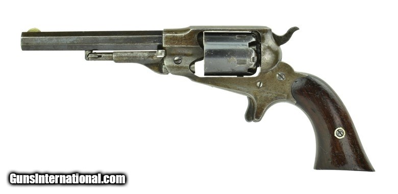 Description: Remington New Model Pocket Revolver. This is a 3rd Type being all iron construction. Bore is excellent. Action works perfectly. Grips are very good with most of the varnish. Barrel address is perfect and easily legible.
