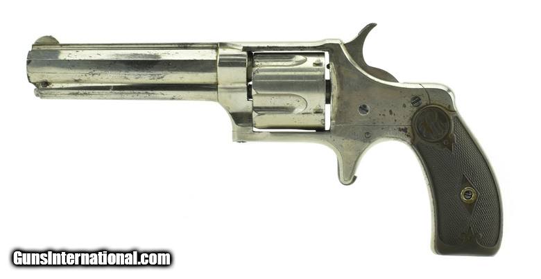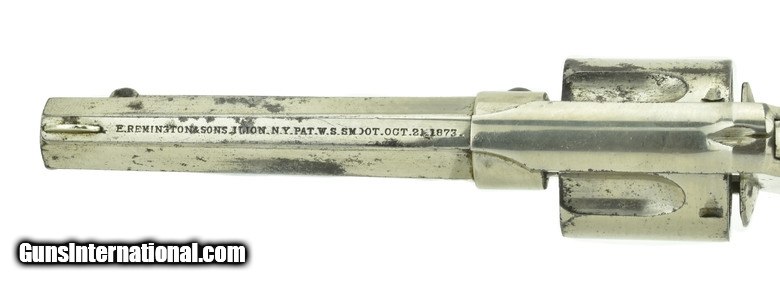 Description: Remington Smoot New Model in .38 Centerfire caliber revolver. Bore is very good to excellent. Action works, indexes and locks up perfectly. Barrel length 3 ¾”. Saw handle model. Grips are excellent. No chips, no cracks. This revolver has approximately 90-93% factory Nickle. Manufactured 1878-1888 hard to find in 38 Centerfire, and with saw handle grip! SOLD Antique: Yes |