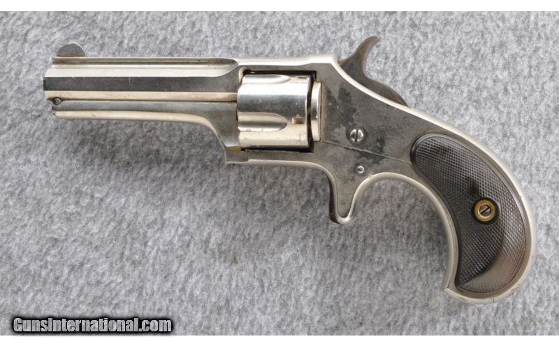 Description: About 3,000 made between 1878 & 1885 Most were in .32 Rim Fire Short SOLD Antique: Yes Manufacturer: 1878 - 1885 Serial no. 30 behind the grip panels Caliber Info: .30 Rim Fire Chambers: 5 shot cylinder Metal Condition: Nickel plated showing some spots of rust. Overall, in good condition Bore Condition: Good strong rifling, minimal wear Barrels: 2 3/4" Octagonal Triggers: Single Action Spur Stock: Checkered hard rubber Weight: 12 oz as shown Sights: Fixed blade front, Notch rear Item Location: Grand Junction, CO |