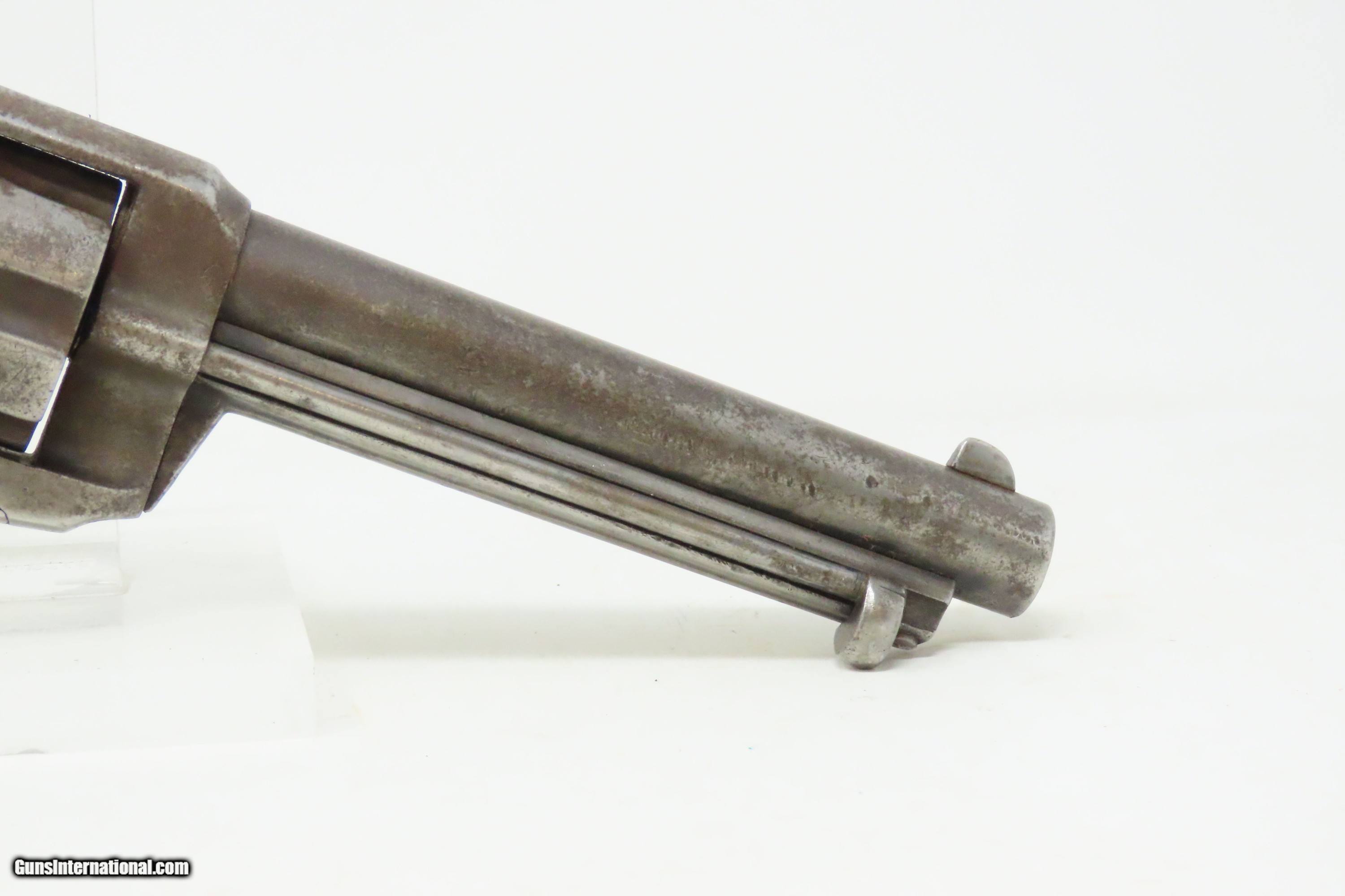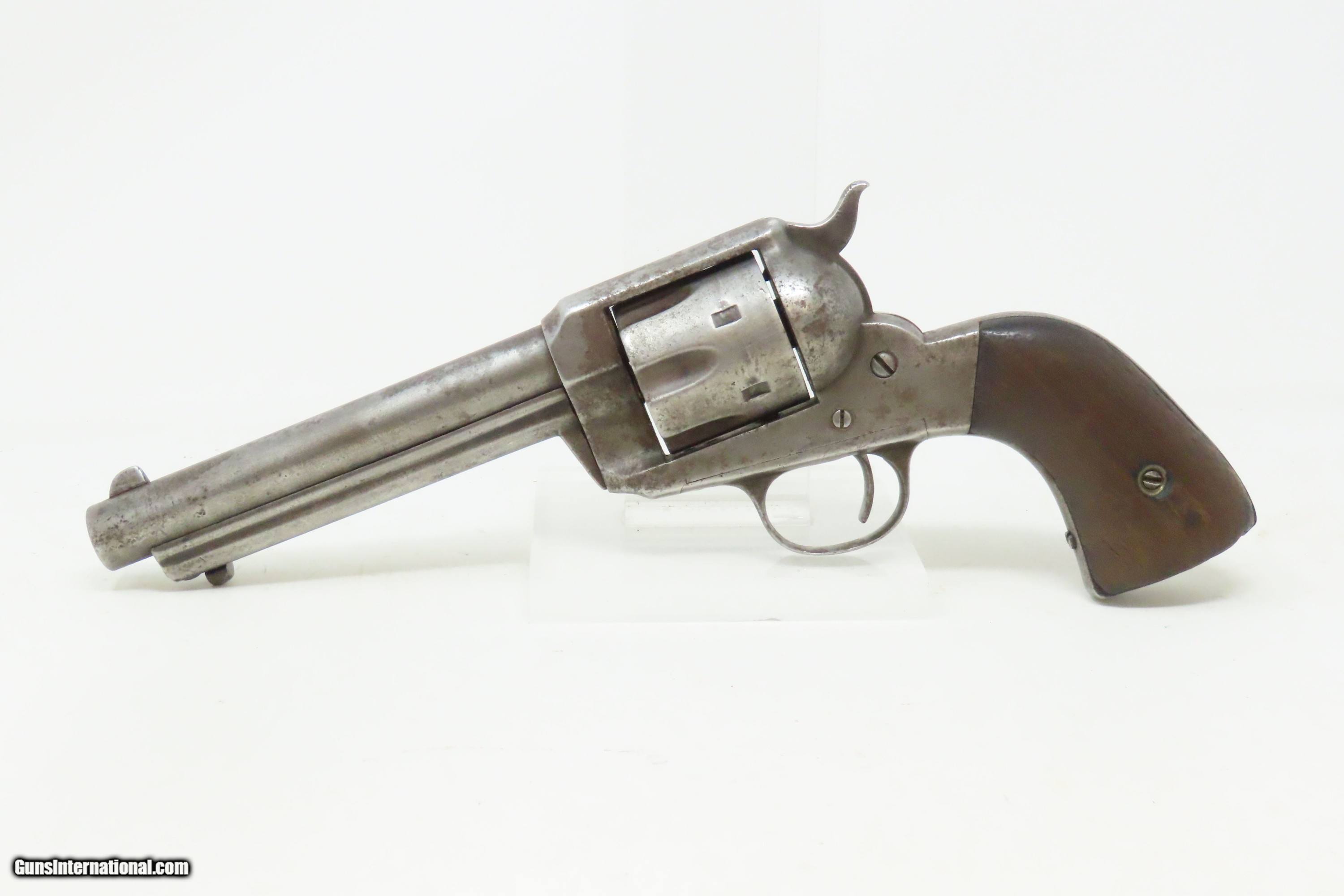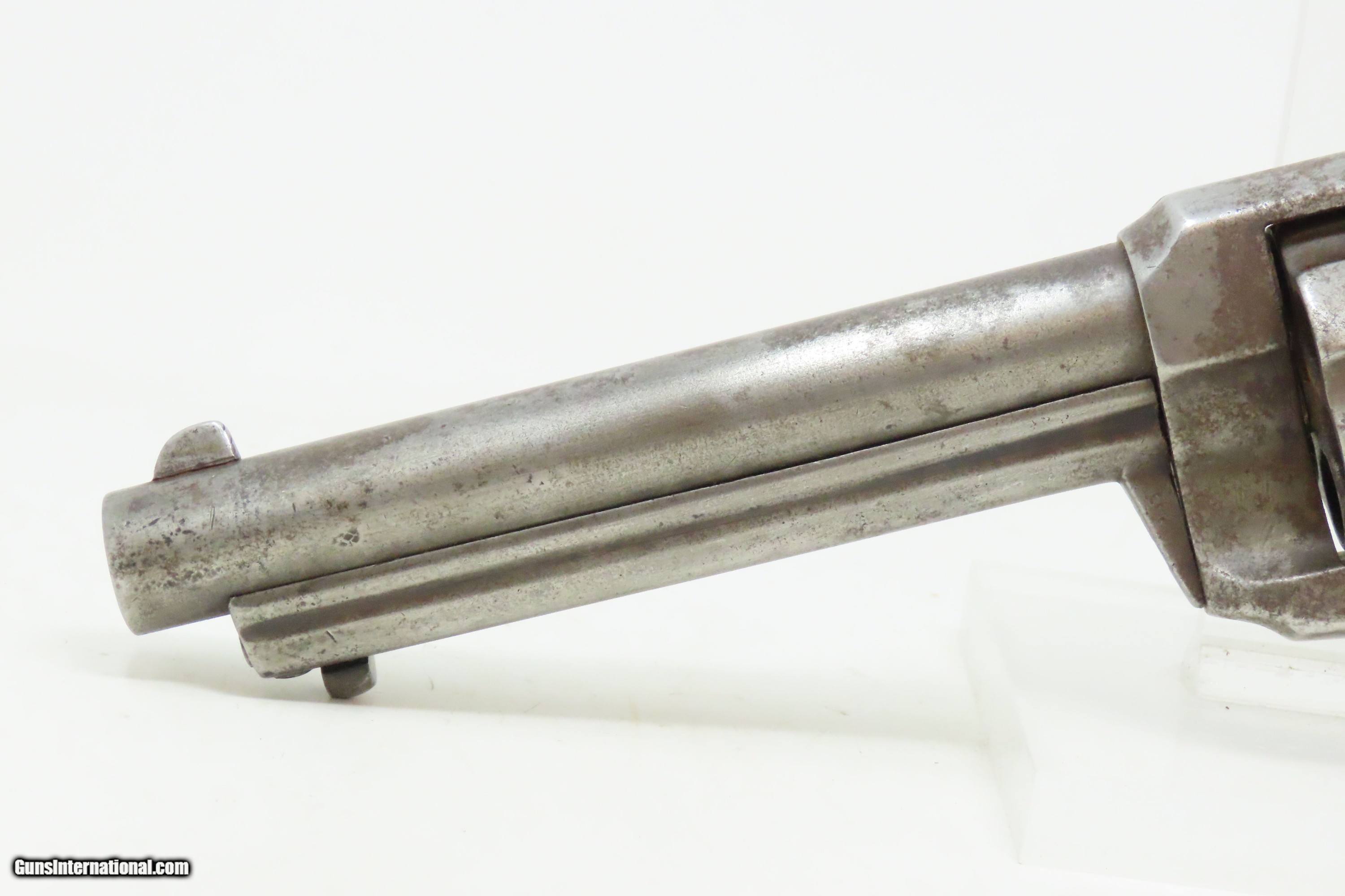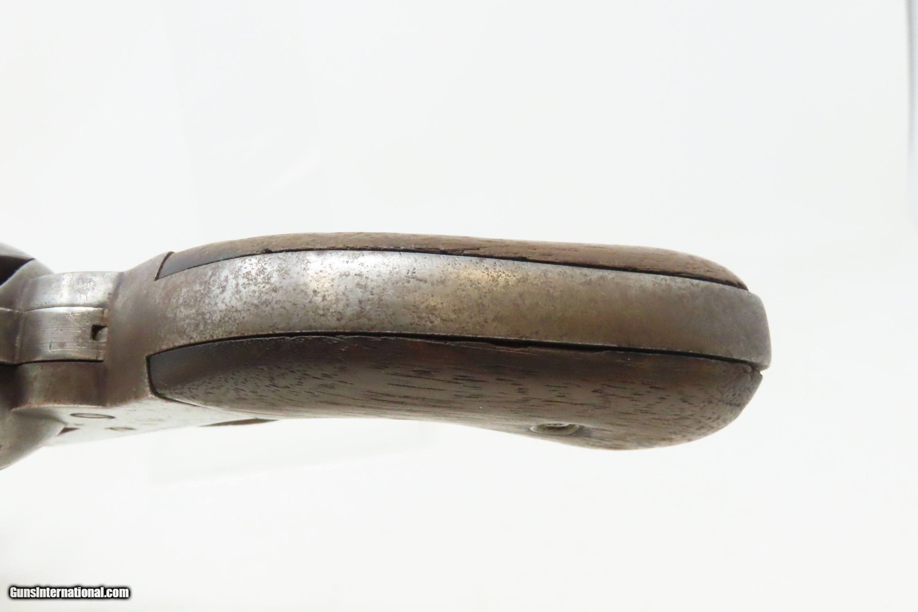 Description: VERY RARE Antique REMINGTON M1875/1888 .44 “New Model Pocket Army” REVOLVER 1 of <1000 TRANSITIONAL SINGLE ACTION ARMY REVOLVERS Here we present a rare antique Remington Model 1875/1888 Single Action Army Transitional Revolver, also known as the “New Model Pocket Army”, made in Ilion, New York circa 1888-89 with less than 1000 of these revolvers being manufactured. In 1888 Remington had entered receivership due to significant business setbacks and was purchased by Winchester and Hartley (of Hartley & Graham fame), who both owned 50% of the company. Having assumed control of Remington Arms Company in 1888, it is likely that these revolvers were specifically made for Hartley & Graham with parts on hand at the factory. Identical in appearance to the Model 1890, the revolver has a 5-3/4 inch round barrel marked “E. REMINGTON & SONS, ILION, N.Y. U.S.A.” on the top. This very scarce, limited production Remington Model 1888 was a direct competitor to the Colt Single Action Army and is one of the most sought after Remington handguns. Like the 1875 model, the 1888 was suitably made for metallic cartridges, but only issued in .44-40 caliber. Ordinary citizens and Old West lawmen alike recognized the sturdy quality of the new Remington revolvers. After the production of the very few Model 1888 transition revolvers, Remington began production of the Model 1890 Single Action Army revolver. The Model 1890 was manufactured between 1891 to 1896 in very small numbers. Aside from this transitional Model 1888, it is one of the most sought after of all of the Remington handguns. On the M1890, the standard barrel length was 7-1/2 inches or 5 3/4 inches. Of the 2,020 produced, a handful of Remington 1890s saw service as side arms by Indian police on Western reservations. Changes that were made to the Model 1890 were an attempt to make it more similar to the competing Colt Single Action Army pistols of the era. The Model 1890 was an opportunity for Winchester to put its own competitor to the Colt Single Action Army on the market, without technically violating the long standing unwritten agreement between Colt and Winchester to “stay out of each other’s markets”. In other words, Colt would concentrate on making handguns and try not to interfere too much in the rifle market and Winchester would stay out of the revolver market. The Model 1890 was a great way to compete directly with the Single Action Army by Colt, without starting a war between the two companies. The choice of the caliber was also a logical way for Winchester to emphasize the favorite pistol caliber (44-40 WCF) chambering of its most popular rifle line. The overall condition is good. Patina throughout. The action is strong. The bore is in good condition with strong rifling. Grips are very worn but remain solid. Own the original! This is a legitimate antique and not a reproduction. Barrel is 5-3/4 inches. Caliber: .44-40 Winchester Center Fire Overall condition as seen in photos. Very Fast. Very Safe. FREE SHIPPING WORLDWIDE. Delivered directly to your door by express mail! Guaranteed AUTHENTIC & Includes CERTIFICATE OF AUTHENTICITY. ancestryguns $3800 #240827 SOLD Antique: Yes |