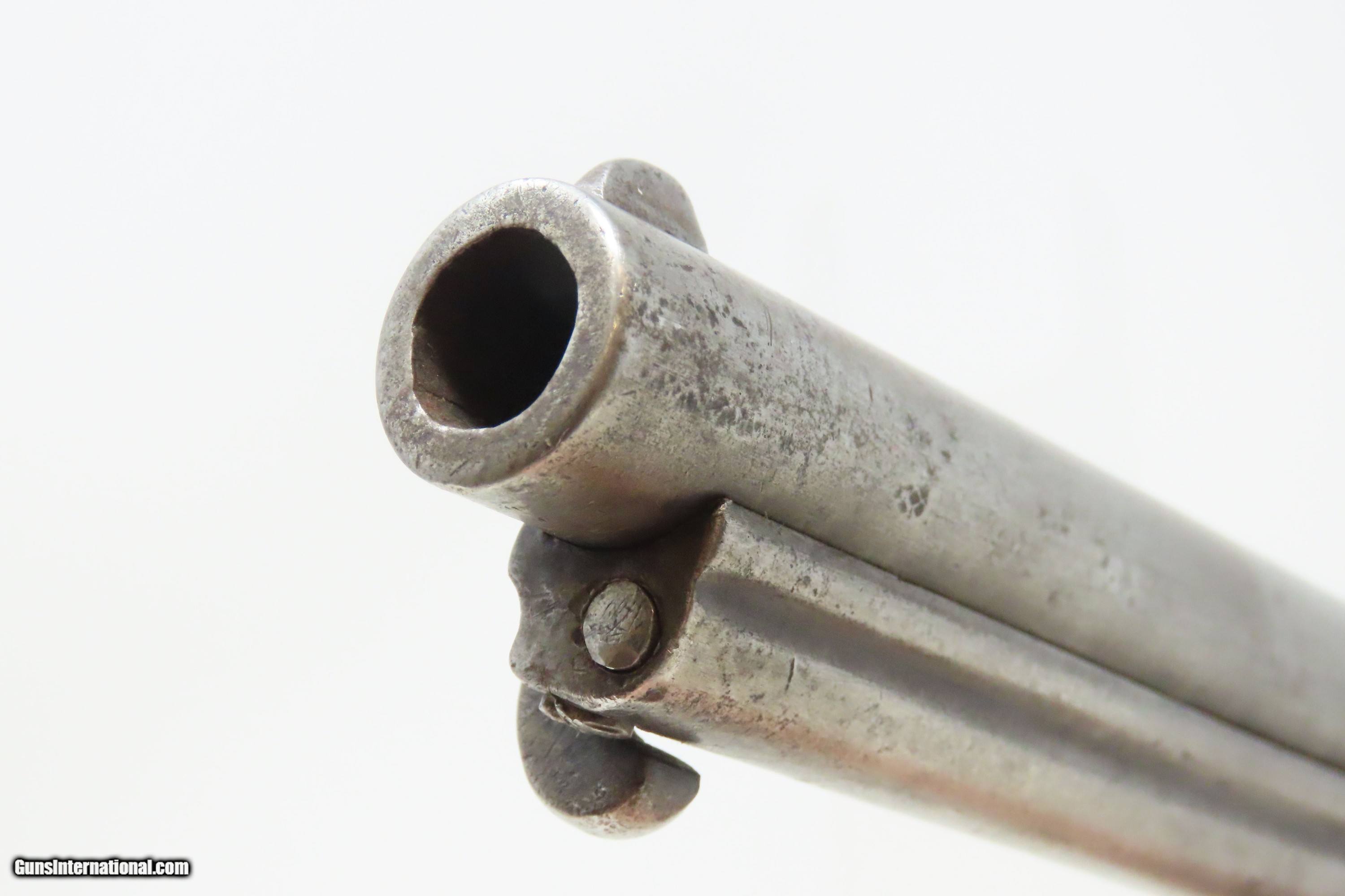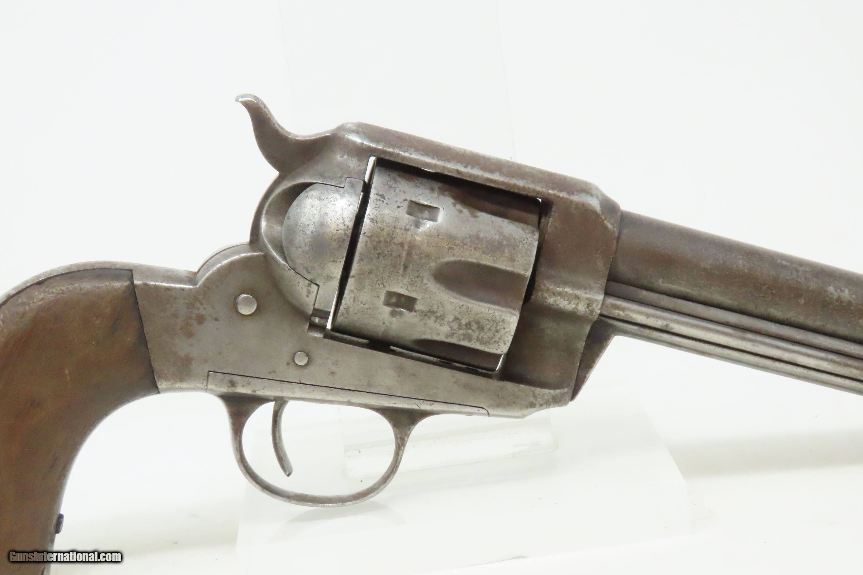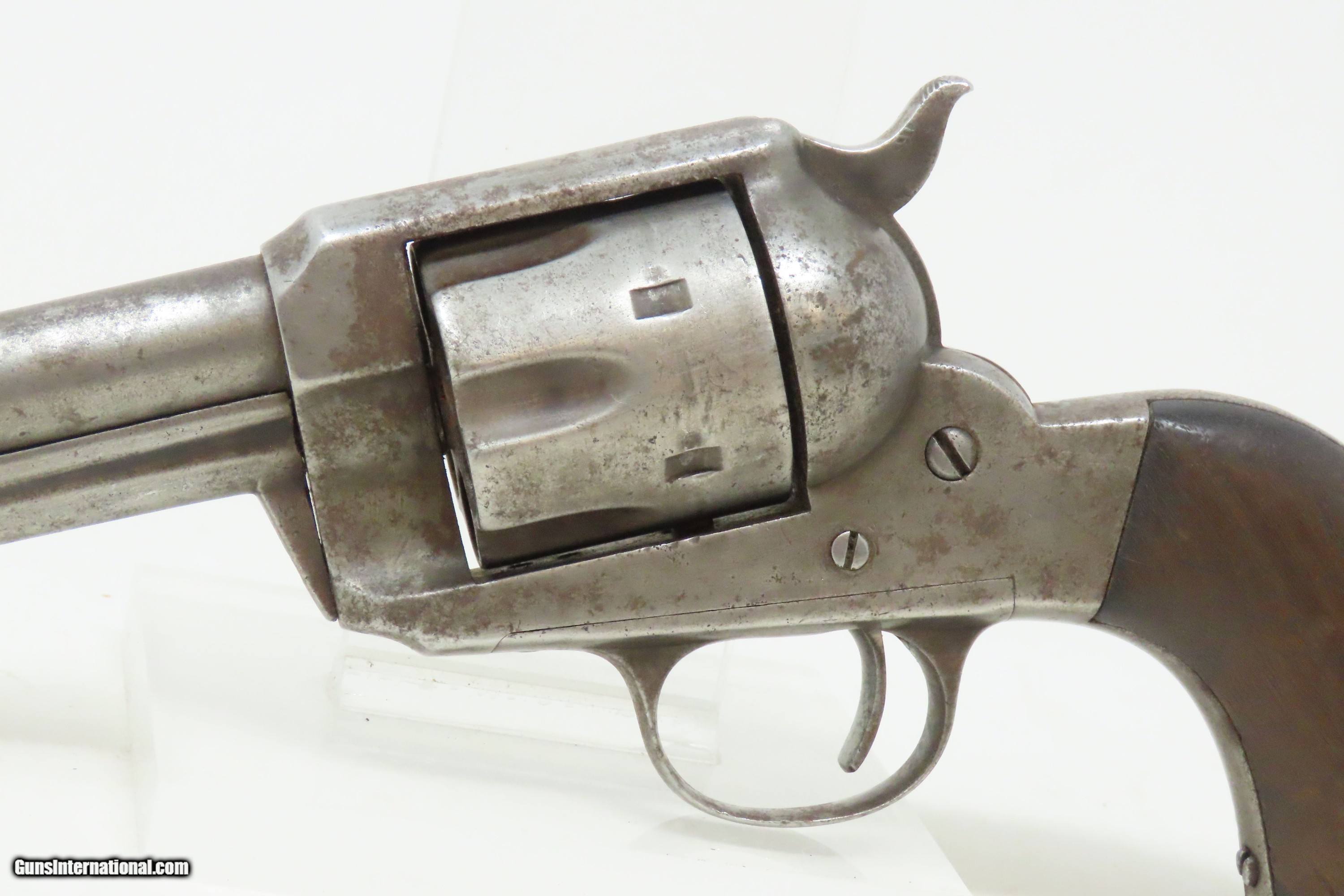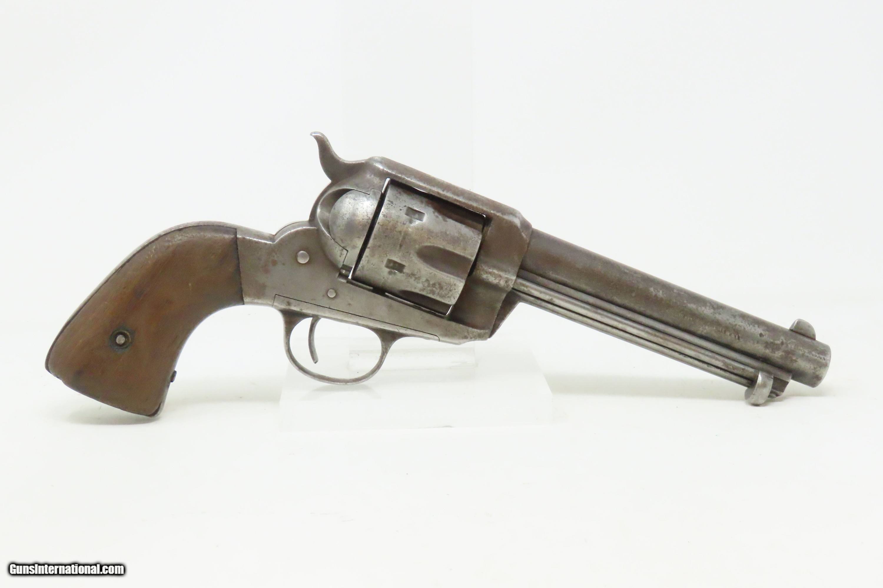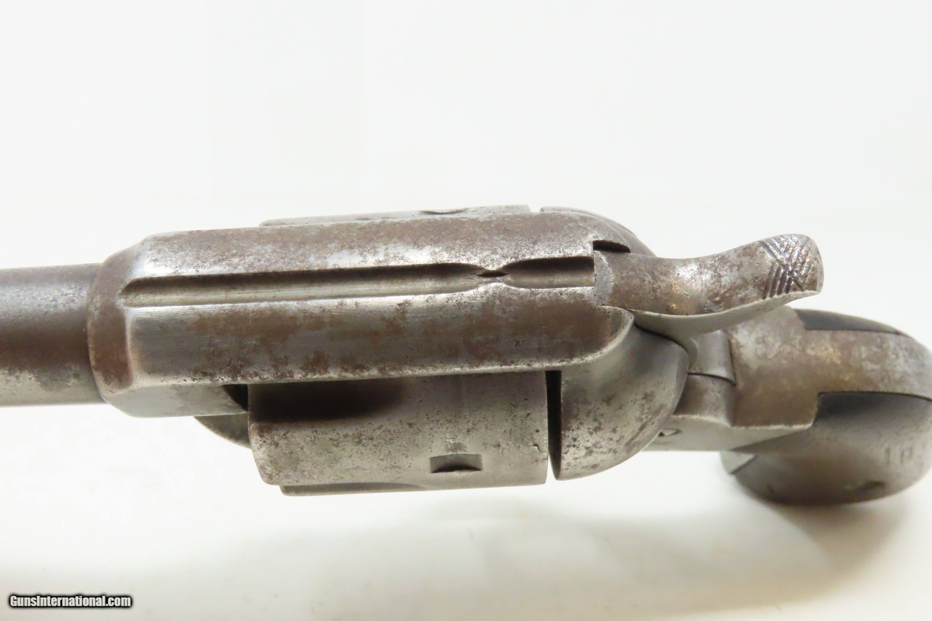 Description: VERY RARE Antique REMINGTON M1875/1888 .44 “New Model Pocket Army” REVOLVER 1 of <1000 TRANSITIONAL SINGLE ACTION ARMY REVOLVERS Here we present a rare antique Remington Model 1875/1888 Single Action Army Transitional Revolver, also known as the “New Model Pocket Army”, made in Ilion, New York circa 1888-89 with less than 1000 of these revolvers being manufactured. In 1888 Remington had entered receivership due to significant business setbacks and was purchased by Winchester and Hartley (of Hartley & Graham fame), who both owned 50% of the company. Having assumed control of Remington Arms Company in 1888, it is likely that these revolvers were specifically made for Hartley & Graham with parts on hand at the factory. Identical in appearance to the Model 1890, the revolver has a 5-3/4 inch round barrel marked “E. REMINGTON & SONS, ILION, N.Y. U.S.A.” on the top. This very scarce, limited production Remington Model 1888 was a direct competitor to the Colt Single Action Army and is one of the most sought after Remington handguns. Like the 1875 model, the 1888 was suitably made for metallic cartridges, but only issued in .44-40 caliber. Ordinary citizens and Old West lawmen alike recognized the sturdy quality of the new Remington revolvers. After the production of the very few Model 1888 transition revolvers, Remington began production of the Model 1890 Single Action Army revolver. The Model 1890 was manufactured between 1891 to 1896 in very small numbers. Aside from this transitional Model 1888, it is one of the most sought after of all of the Remington handguns. On the M1890, the standard barrel length was 7-1/2 inches or 5 3/4 inches. Of the 2,020 produced, a handful of Remington 1890s saw service as side arms by Indian police on Western reservations. Changes that were made to the Model 1890 were an attempt to make it more similar to the competing Colt Single Action Army pistols of the era. The Model 1890 was an opportunity for Winchester to put its own competitor to the Colt Single Action Army on the market, without technically violating the long standing unwritten agreement between Colt and Winchester to “stay out of each other’s markets”. In other words, Colt would concentrate on making handguns and try not to interfere too much in the rifle market and Winchester would stay out of the revolver market. The Model 1890 was a great way to compete directly with the Single Action Army by Colt, without starting a war between the two companies. The choice of the caliber was also a logical way for Winchester to emphasize the favorite pistol caliber (44-40 WCF) chambering of its most popular rifle line. The overall condition is good. Patina throughout. The action is strong. The bore is in good condition with strong rifling. Grips are very worn but remain solid. Own the original! This is a legitimate antique and not a reproduction. Barrel is 5-3/4 inches. Caliber: .44-40 Winchester Center Fire Overall condition as seen in photos. Very Fast. Very Safe. FREE SHIPPING WORLDWIDE. Delivered directly to your door by express mail! Guaranteed AUTHENTIC & Includes CERTIFICATE OF AUTHENTICITY. ancestryguns $3800 #240827 SOLD Antique: Yes |