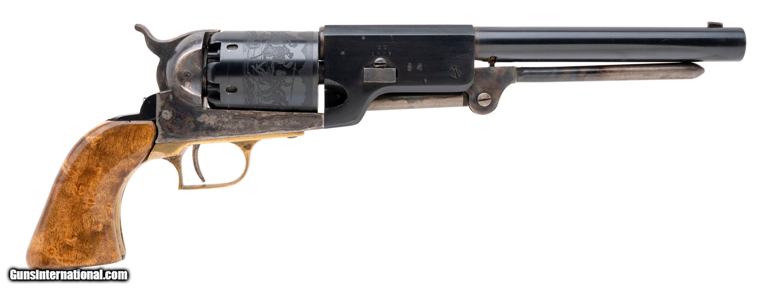 Description: "SN: 1945. Modern replica black powder .44 cal revolver with 9"" barrel. Italian made modern Walker revolver with fancy grips. Overall in very good condition. SOLD |