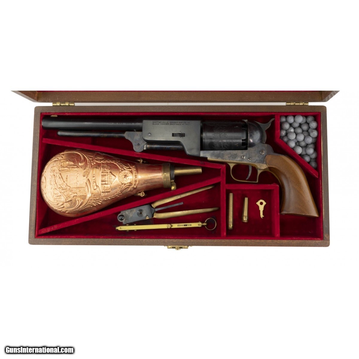 Italian made replica of the famous Colt Walker .44 cal black powder revolver. Comes in a wooden presentation case with flask, mould and balls. A neat looking set, in excellent condition.