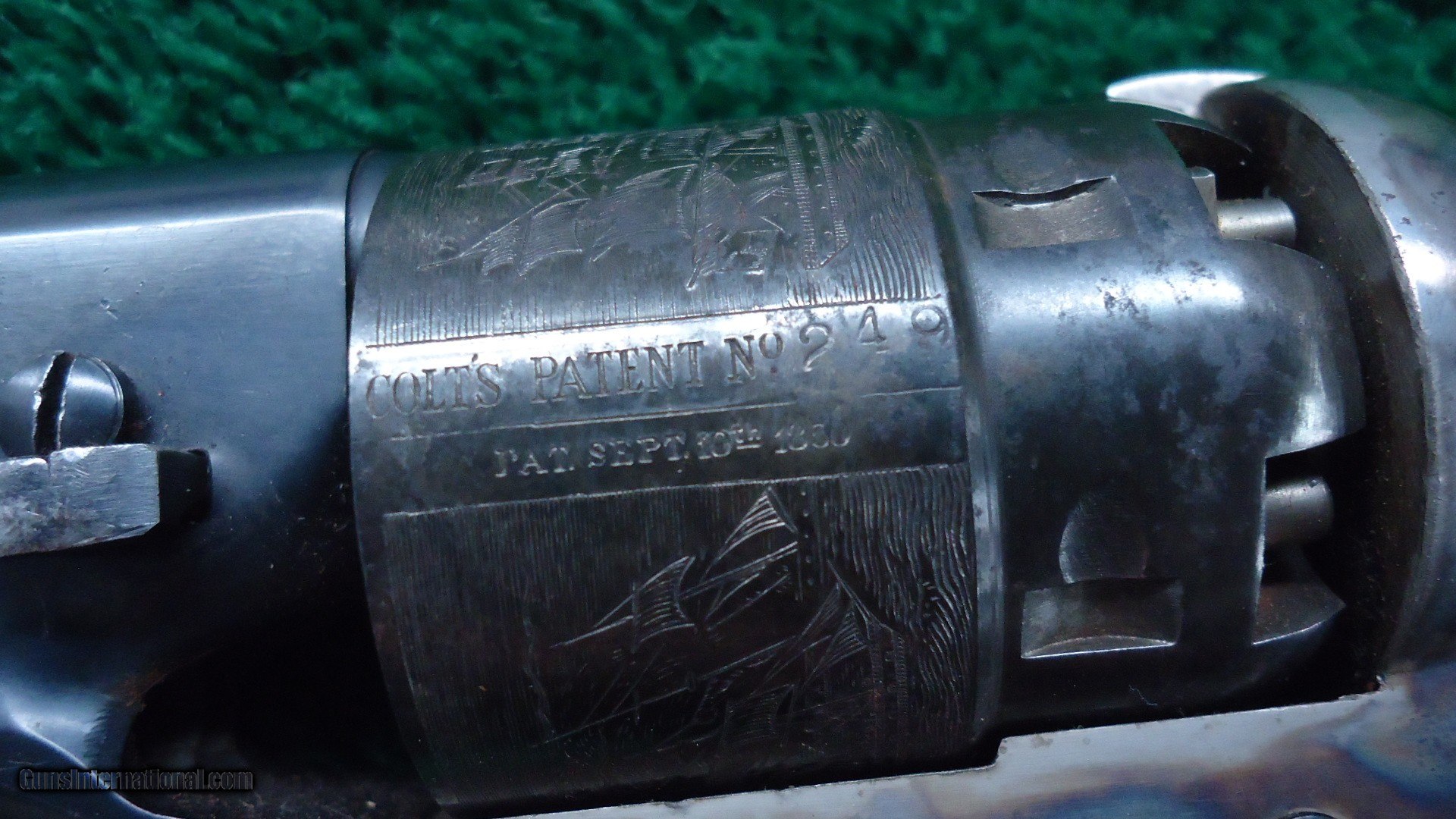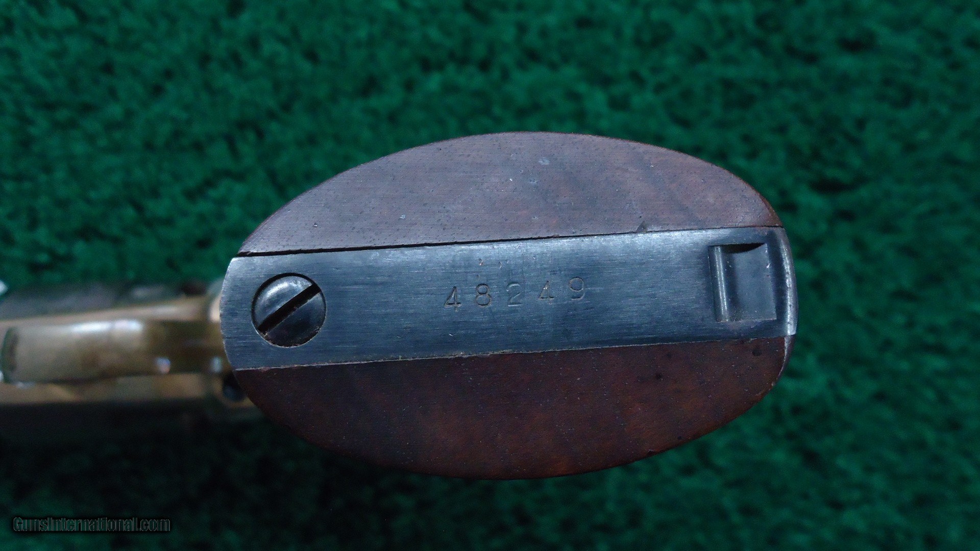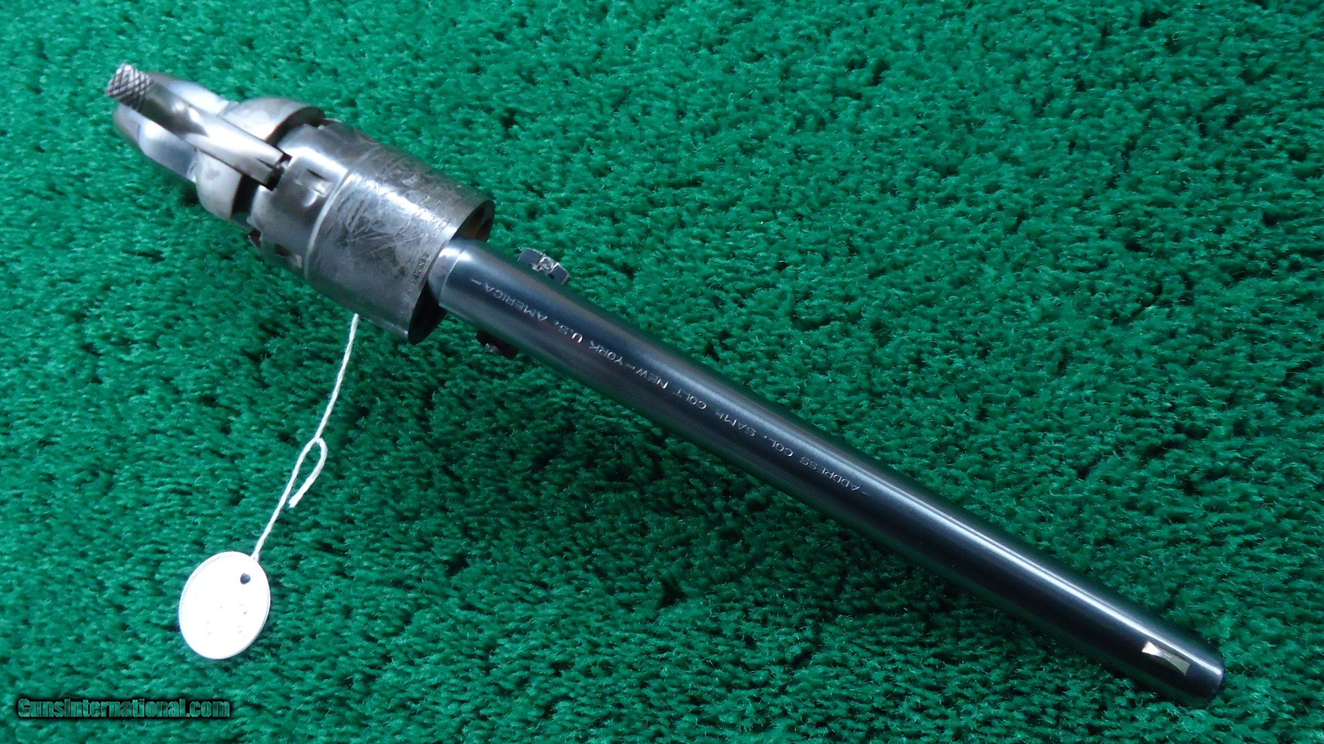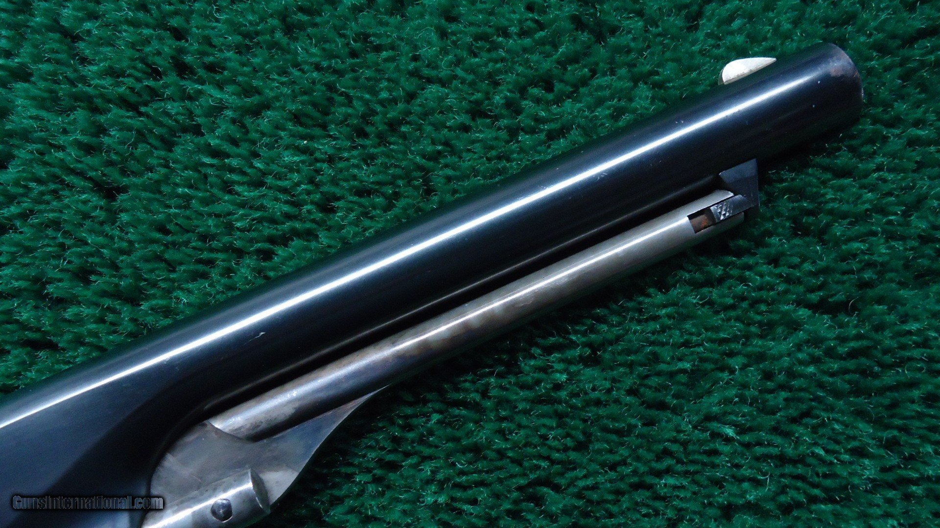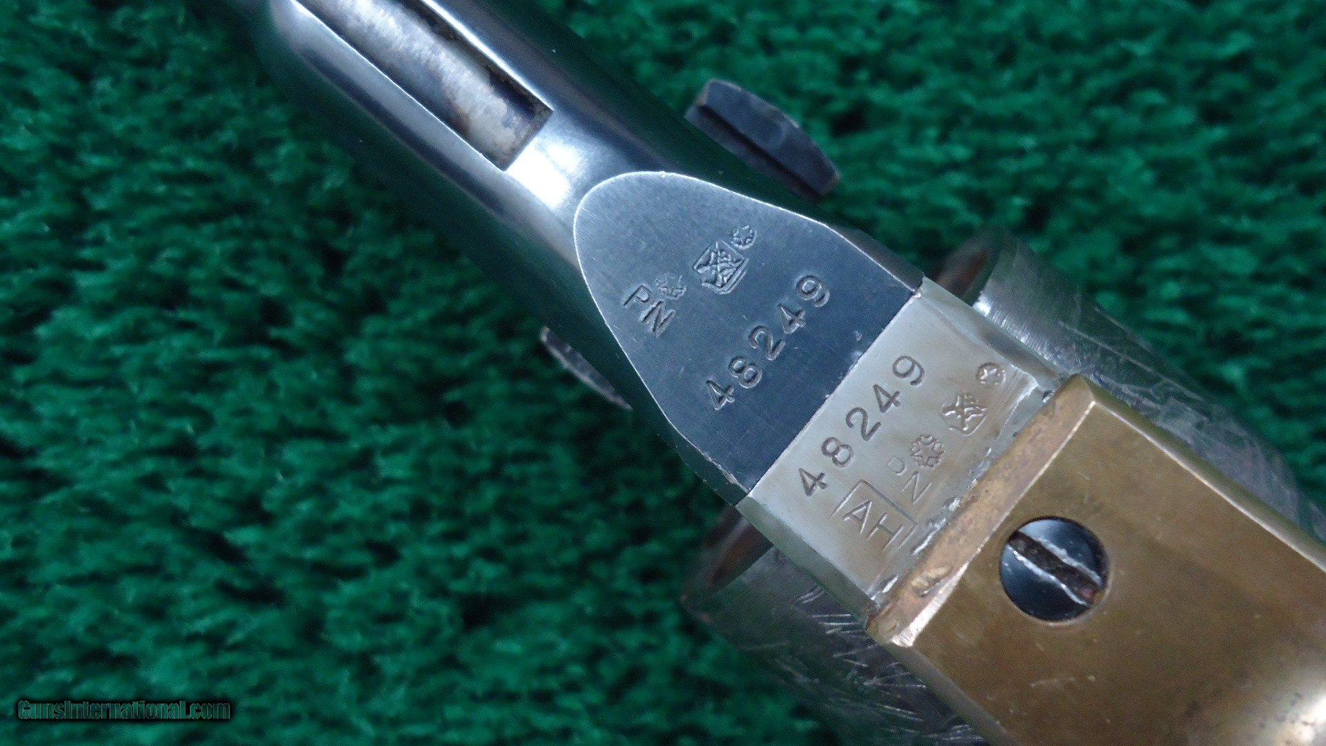Description: This is a Modern Reproduction Black Powder Revolver with an 8 inch round barrel that is marked "BLACK POWDER ONLY CAL 44" made in Italy. Blued barrel retains nearly all of its finish while the frame and rammer are beautifully case colored. The cylinder scene is vivid. The smooth wood grips are in very good condition. Good shiny bore and excellent functioning action. Would be good for cowboy reenactments and just having fun at the range. Leroy Merz Antique Firearms specializes in antique and vintage Winchesters and other fine American firearms. Since 1965 Mr. Merz has taken part in the world of firearms and has been a contributor to many well known reference books. We have hundreds of additional guns in every price range at our home online. Search for Merz Antiques in google. SOLD Antique: Yes Handgun Caliber: .44 |