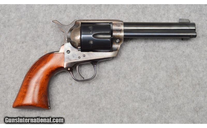 Description: This is a nice Early & Modern Firearms model of the 1873 Colt in .22 Long Rifle. The 4 3/4" barrel is excellent in condition with sharp crisp rifling. The weight and balance of this 1873 clone is representative of the original Colt. The frame has light case hardened coloring. The single action trigger is light, smooth and crisp. The light walnut stocks are in excellent condition. This will be a joy to own and shoot. A piece of pride every time you open the safe.No box or accessories. SOLD Manufacturer: S/N SA18XXX Caliber Info: .22 Long Rifle Metal Condition: Excellent Wood Condition: Excellent Bore Condition: Excellent Barrels: Blued 4 3/4 Triggers: Factory Blue Single Action Stock: Smooth Light Walnut Stock Dimensions: 3 1/2" LOP Weight: 44 Ounces Sights: Fixed with Front Blade Item Location: West Chester, OH |