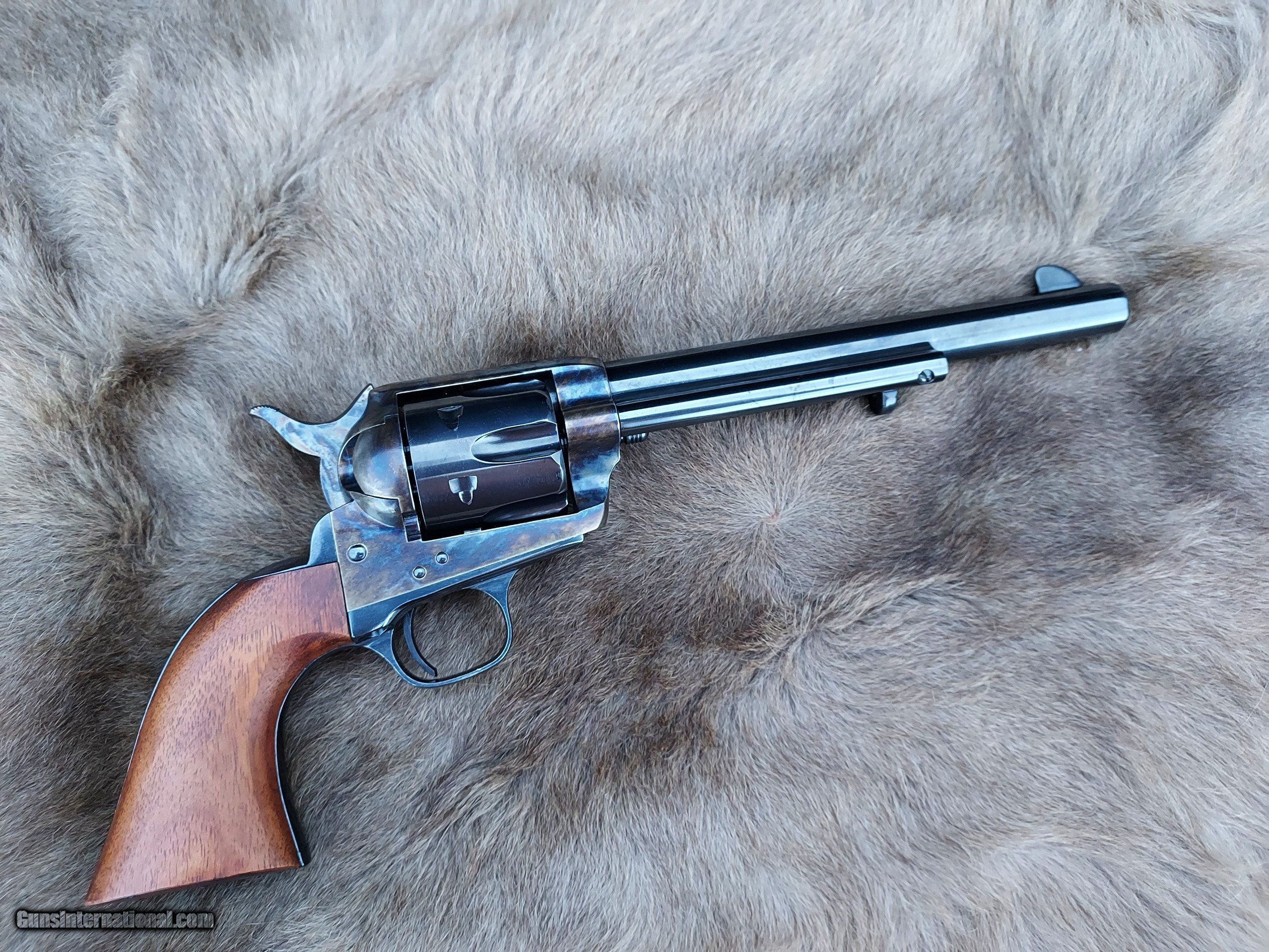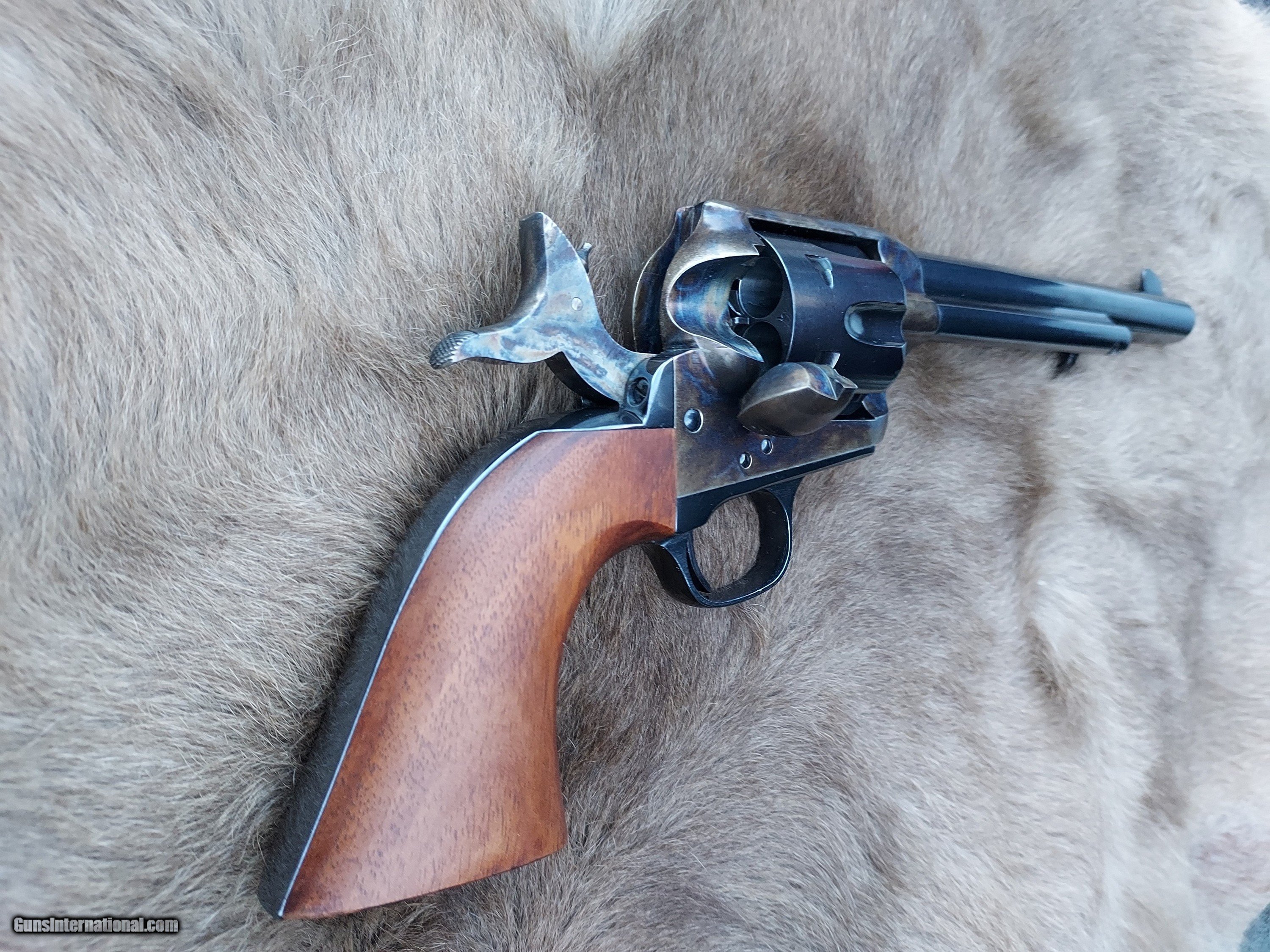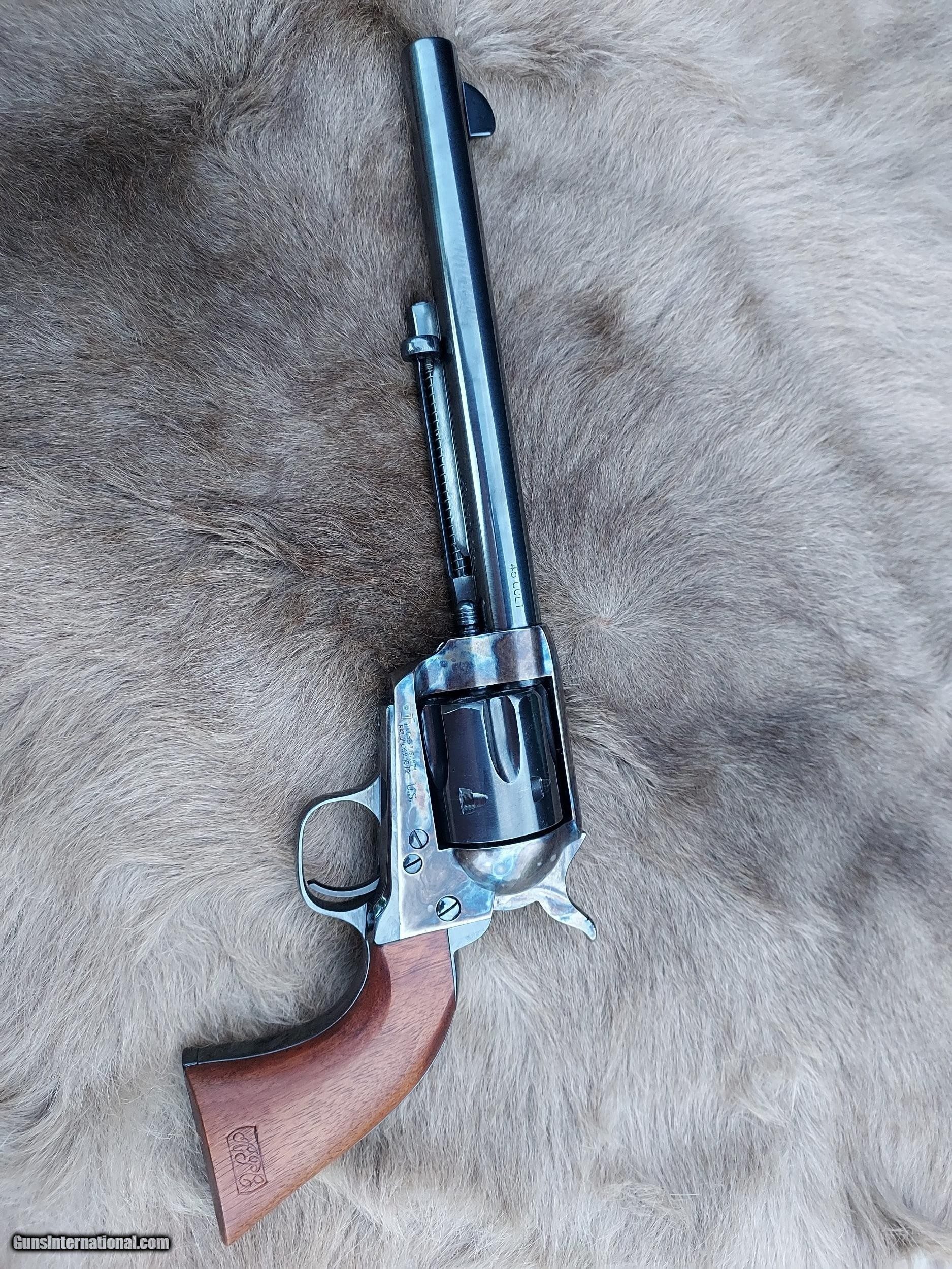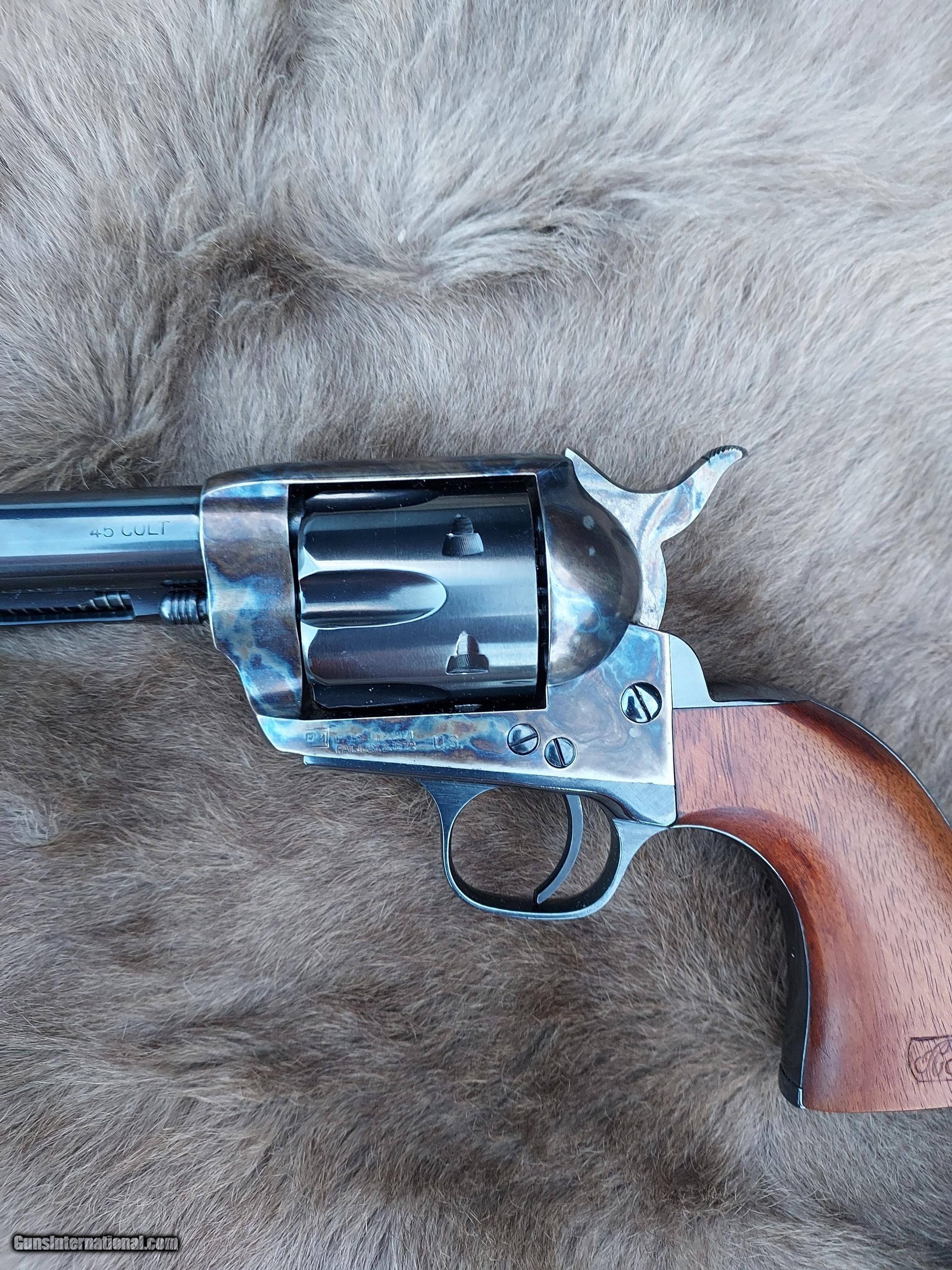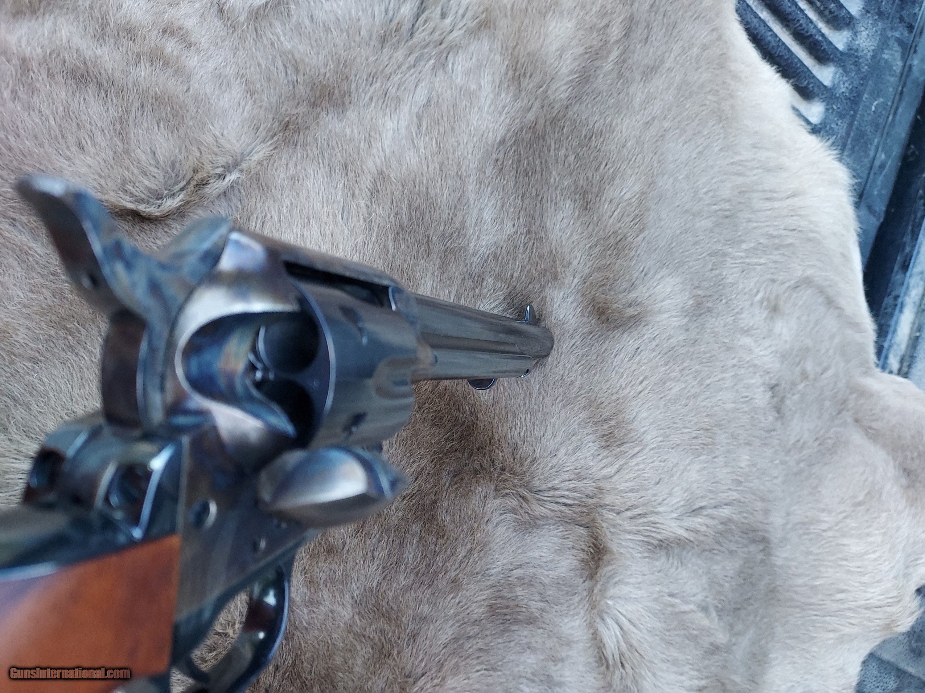 Description: EMF Hartford 1873 Calvary 45 Colt cal. Beautiful blue and C.C. frame, 7 1/2" bbl. Smooth wood grips with cartouce' excellent condition and shot very little! One of the closet Colt replica guns made. Action is glass smooth and finish is beautiful. Case coloring looks outstanding! Will make fun shooter or cowboy action shooter. Shipping is $50 2nd day in conus. Price $399.00. SOLD PENDING FUNDS SOLD Handgun Caliber: .45 Colt Manufacturer: EMF Model: Hartford 1873 Barrel Length: 7 1/2 Bore: Bright&Shiny Condition: Excellent Metal Condition: Excellent Wood Condition: Excellent Bore Condition: Excellent Action: Single |