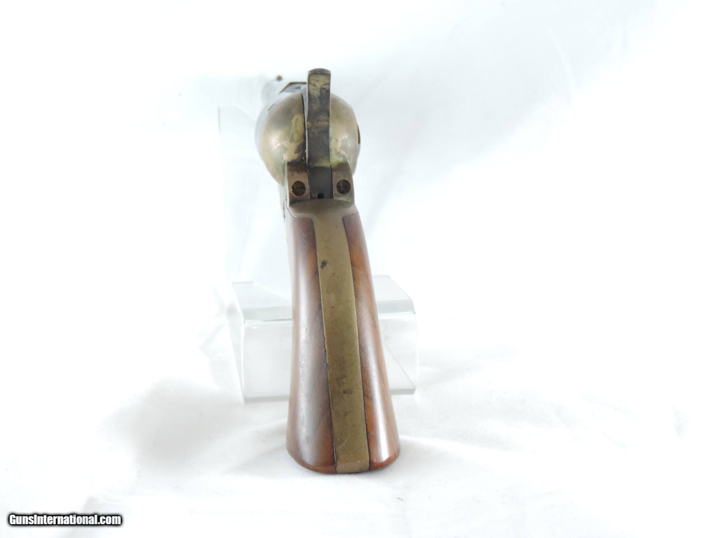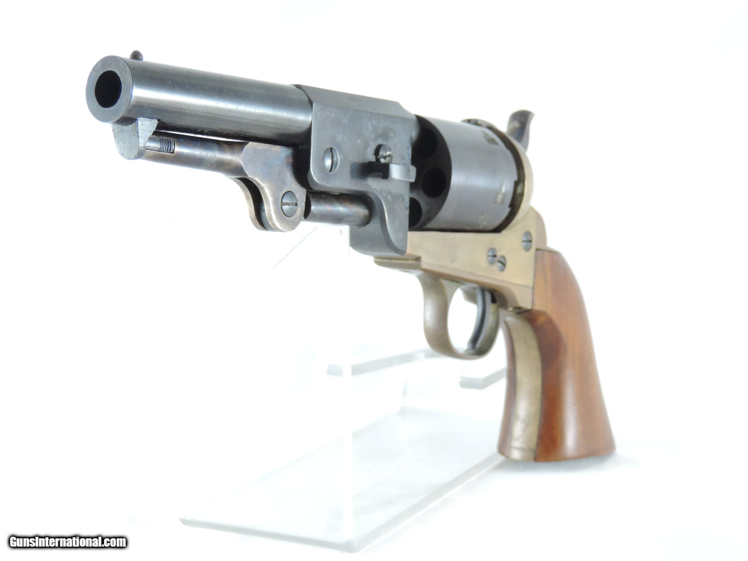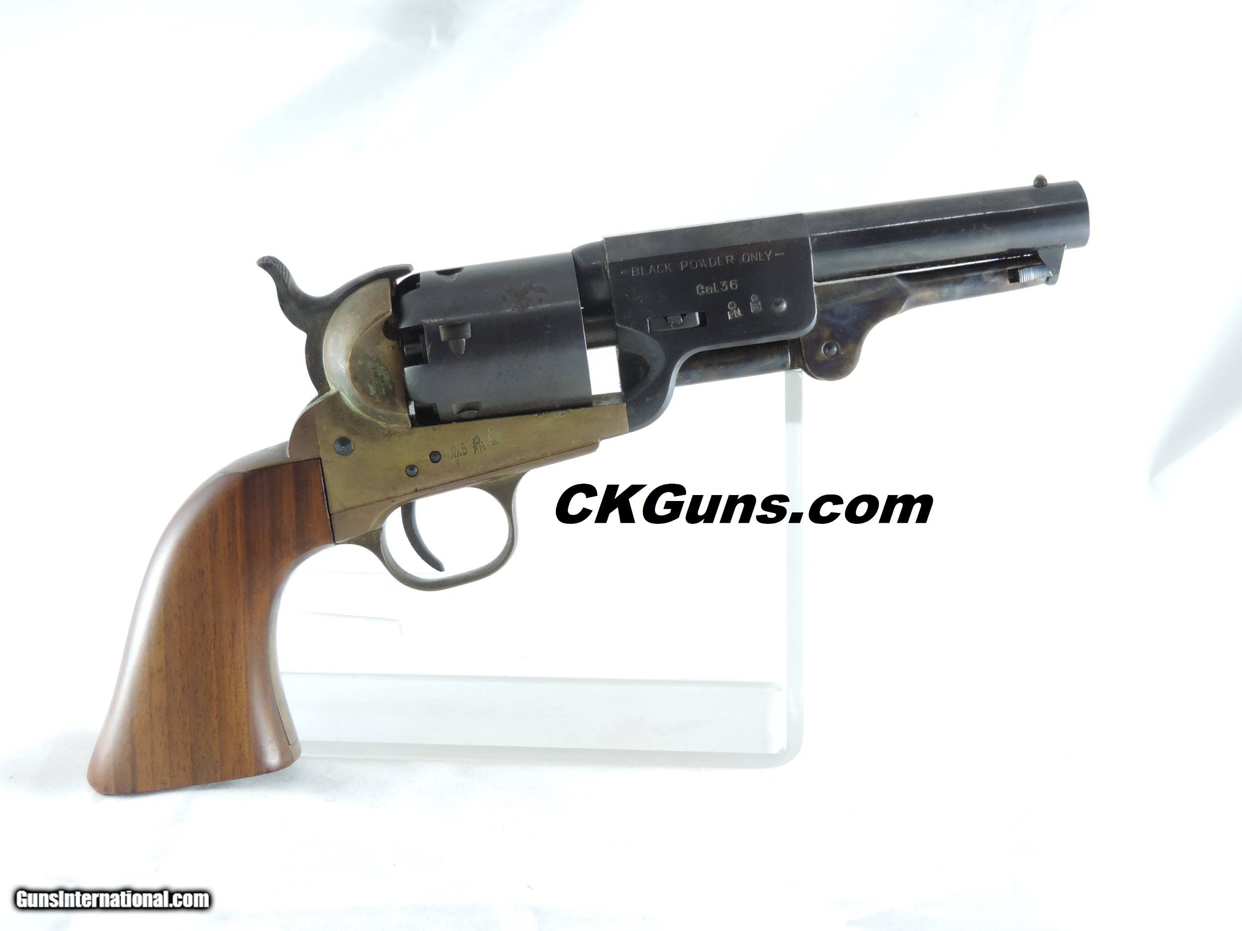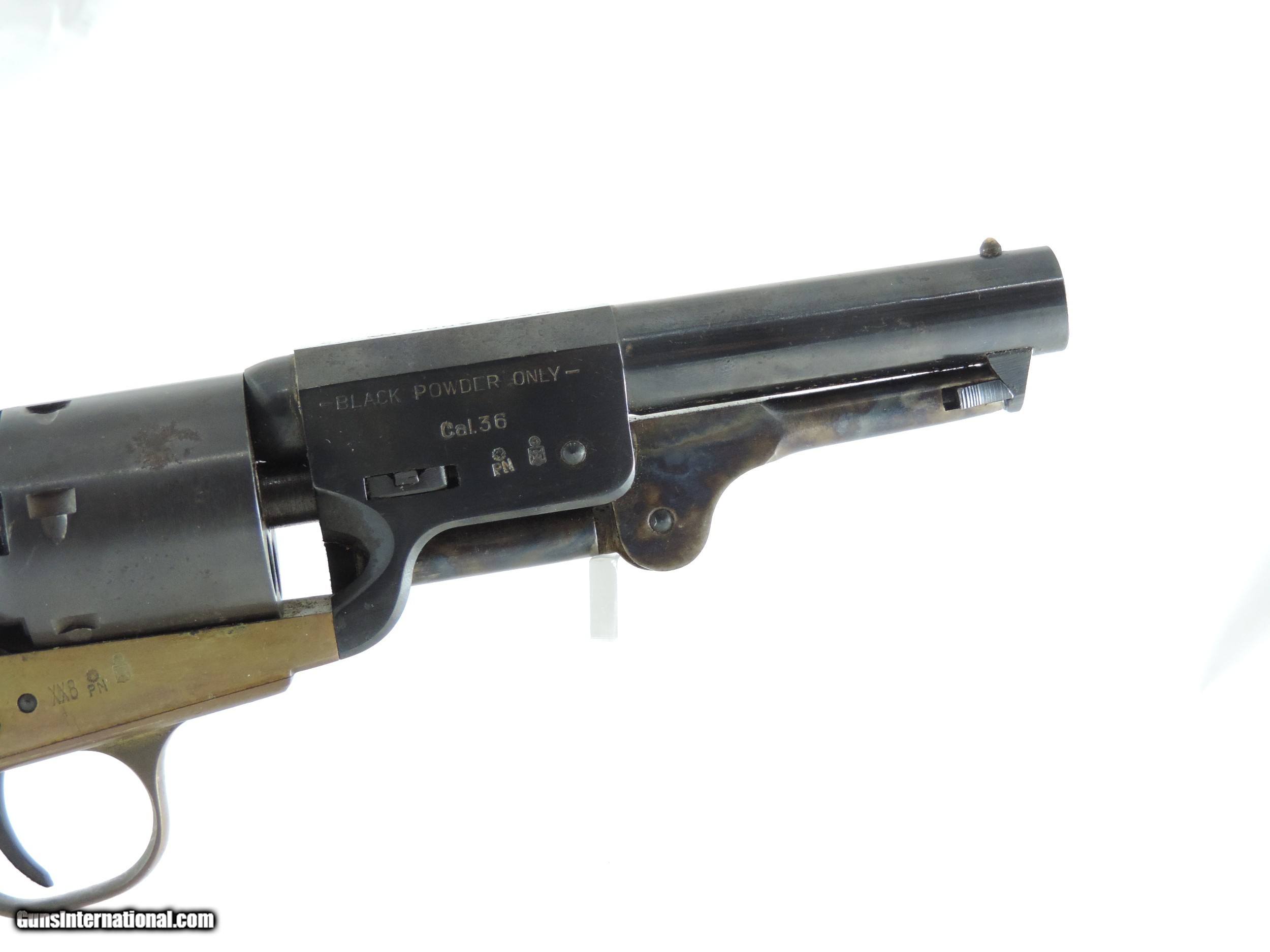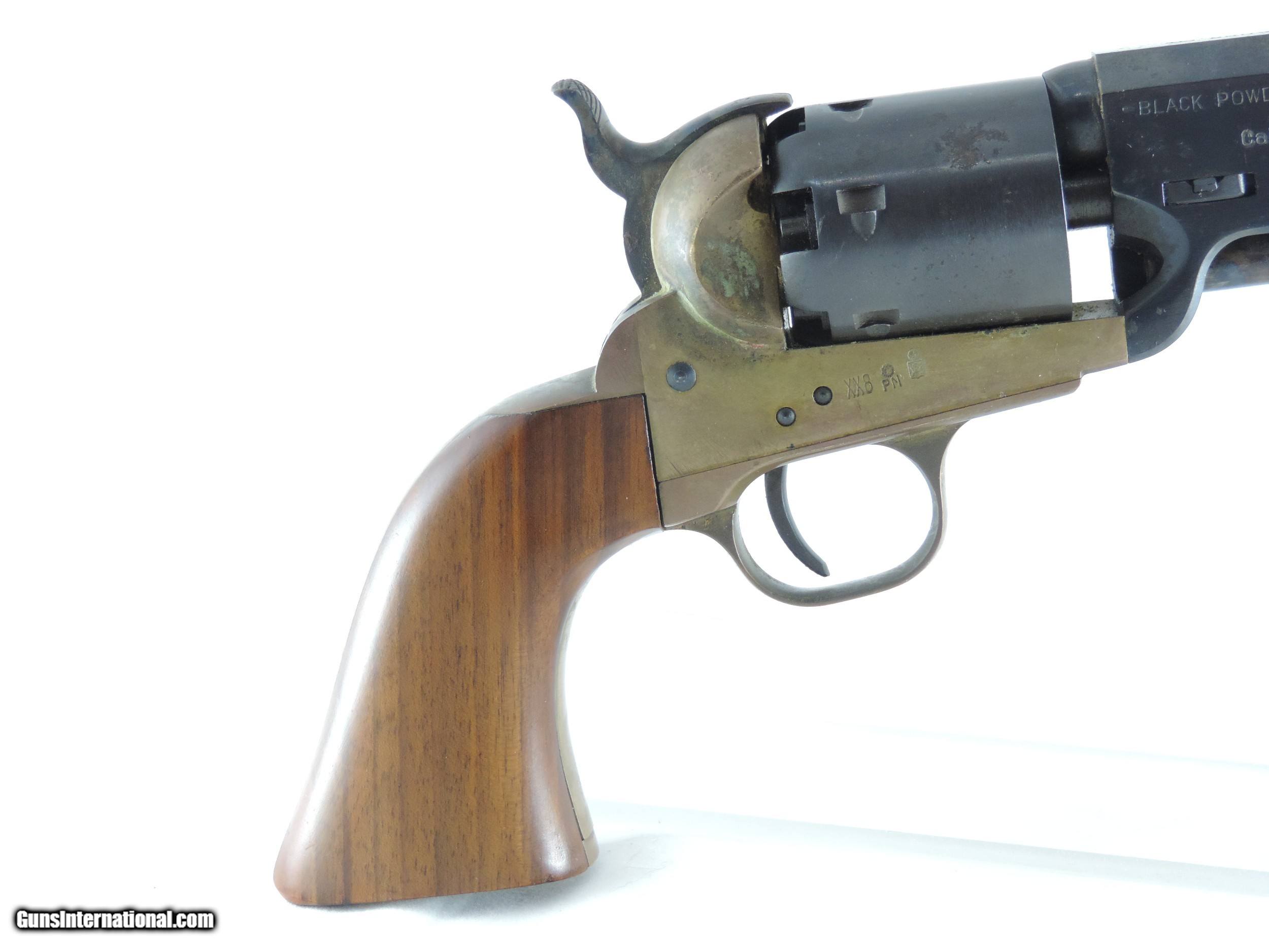 Description: Inv. 7534 Navy Arms (Pietta), 1851 Navy, Cal. .36, Ser. 0273XX. This is an estate wall hanger and shows no evidence of ever having been fired. The brass frame has picked up an attractive uneven patina, which can easily be cleaned if the buyer chooses to do so. The blued barrel and and cylinder do have some very light scattered pin pricks due to age. The gun is really minty. For the collector, re-enactor or just for display it's a real find at .....Shipped......$165.*** ***It comes with a "Purchaser Satisfaction Guarantee" To purchase this firearm or if you want to request more information contact us at: Email ckguns[at]ymail[dot]com Phone 201-512-0002 Cell 201-575-6838 FAX 201-215-4759 We accept most major credit cards. Prices shown are Discounted 3% for Cash or Check. The buyer must be familiar with all the laws governing the purchase and the ownership of firearms in their own city and state. The Yankee Armorer, Inc is not responsible for any failure to comply with or observe these laws. The Yankee Armorer, Inc will only ship after full payment and receipt of all required documents. Shipping: Add $35.00 for handguns, $45.00 for long guns. New Jersey buyers are subject to a 7% sales tax. The Yankee Armorer, Inc offers a 3 day inspection period with full refund upon return of intact firearm and in the original condition. The Yankee Armorer, Inc offers a no interest lay away program - 25% down; 25% in 30 days; 25% in 60 days; and full payment in 90 days. Any violation of this policy is subject to restocking and forfeiture of all payments. Any variation from this policy must be agreed to in advance. Unshipped Cancelled sales are subject to a 20% restocking fee. Be advised that all firearms sold by The Yankee Armorer, Inc. or the Gun Exchange, LLC (SELLER) are sold as collector’s items. They have not been fired or tested for safety and must be examined by a license gunsmith prior to use. By purchasing any item from the (SELLER), you are agreeing to hold the (SELLER) free from any damages or lawsuits of any nature. Any item left for transfer or storage will be charged to $25.00 per month, per item from the day of its receipt. Any variation from this policy must be agreed to in advance. Store hours 10:00 am to 5:00 pm Tuesday -Saturday. It's always best to call for appointment. Store 201-512-0002, cell 201-575-6838. SOLD Manufacturer: Navy Arms (Pietta) Model: 1851 Navy Serial Number: 0273XX Caliber Info: .36 |
