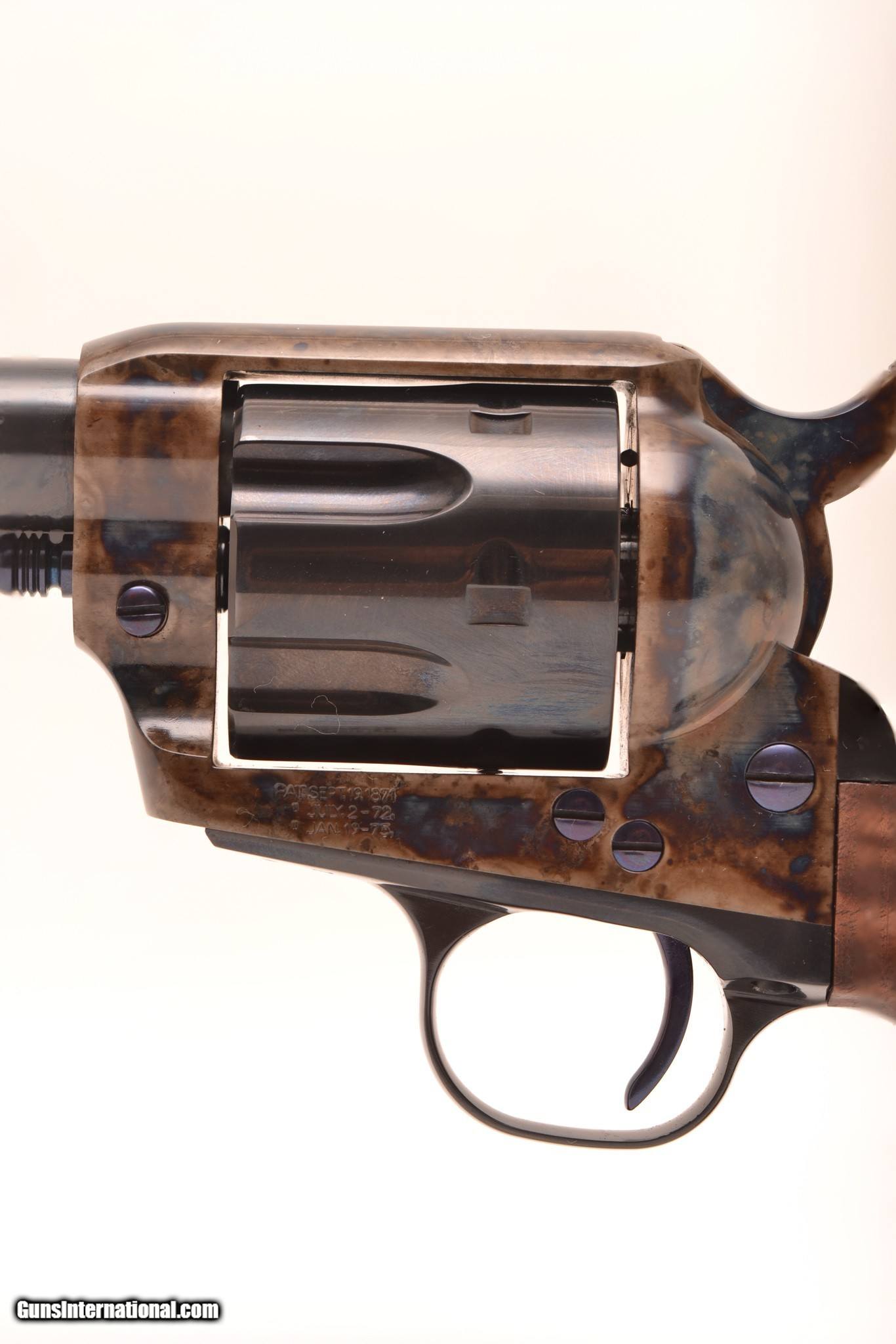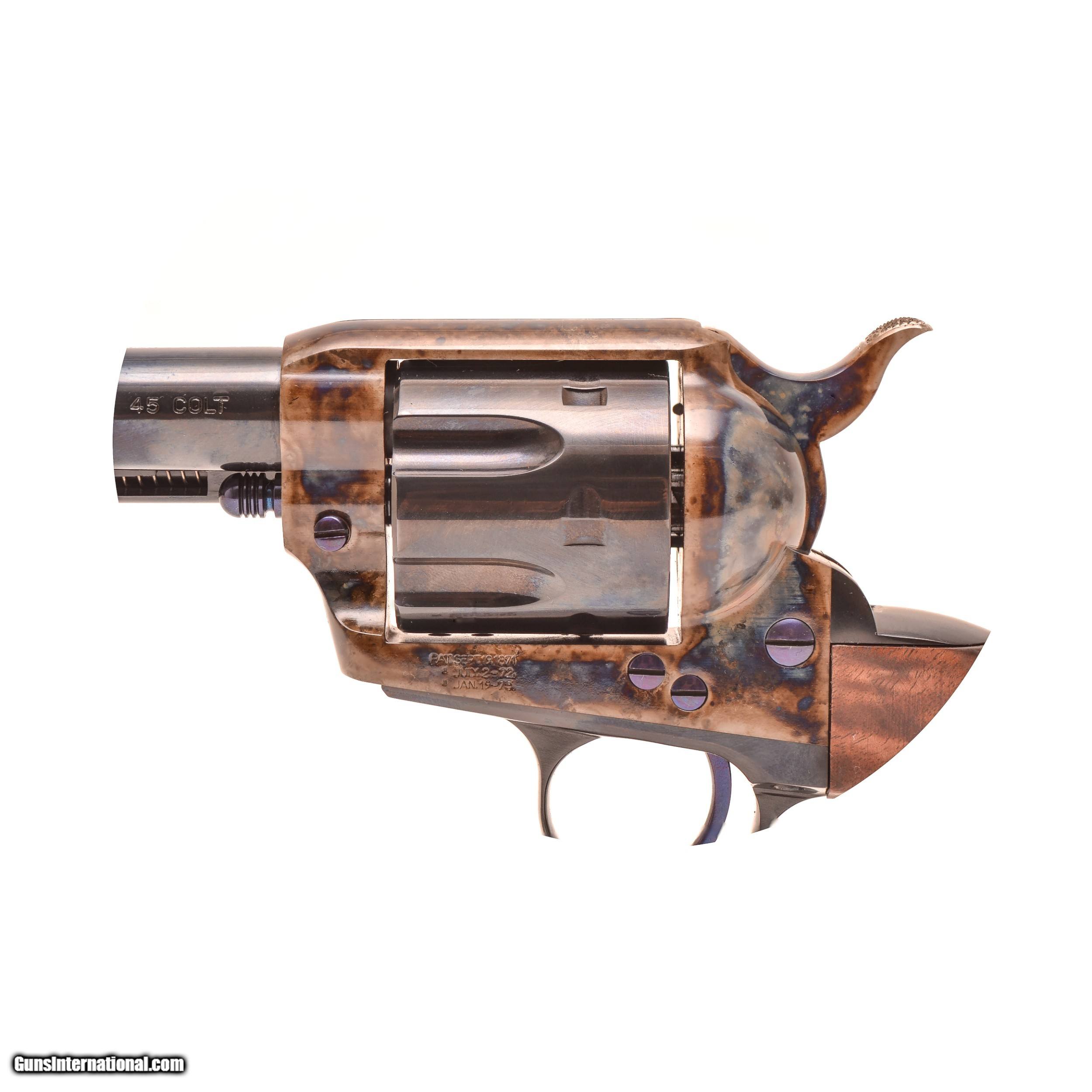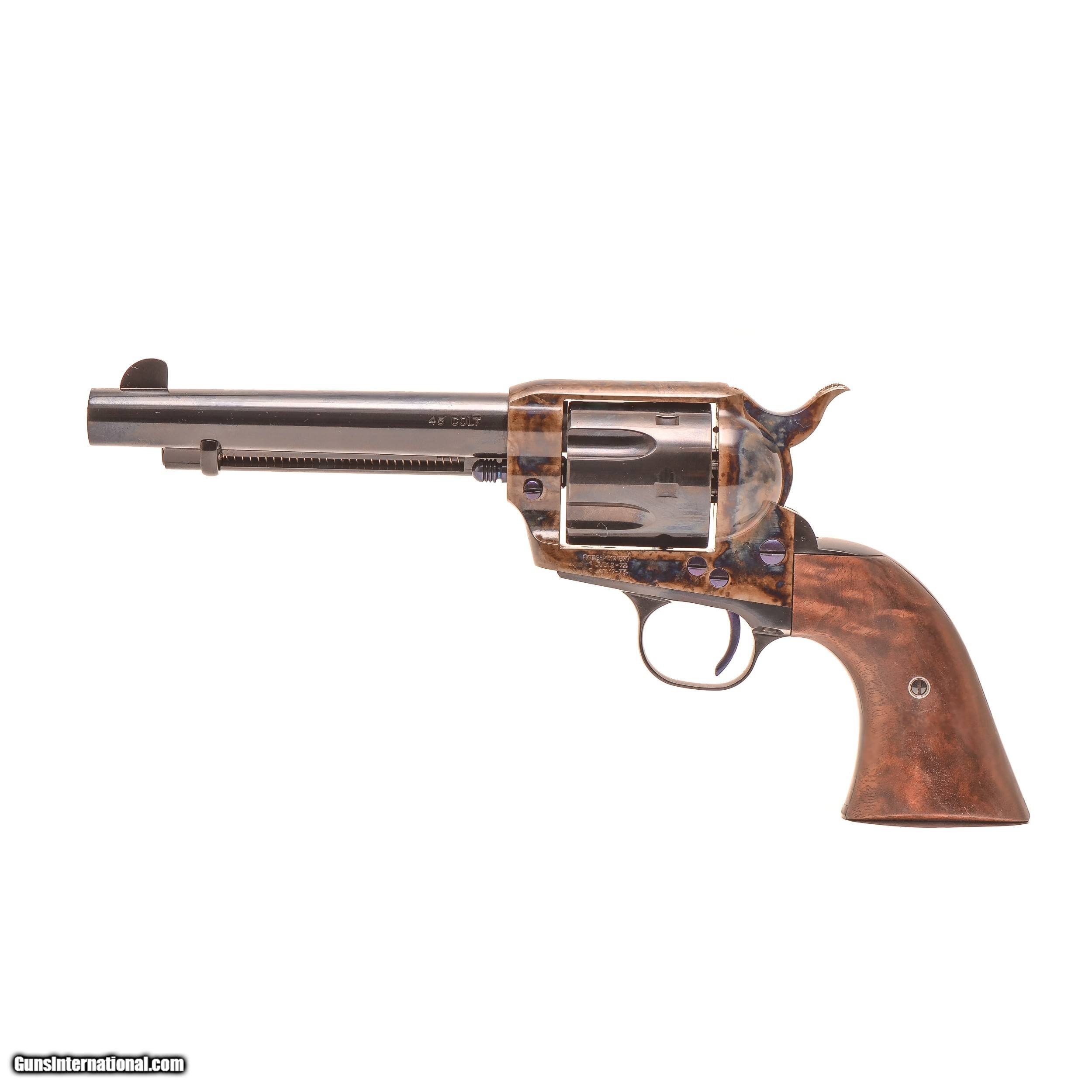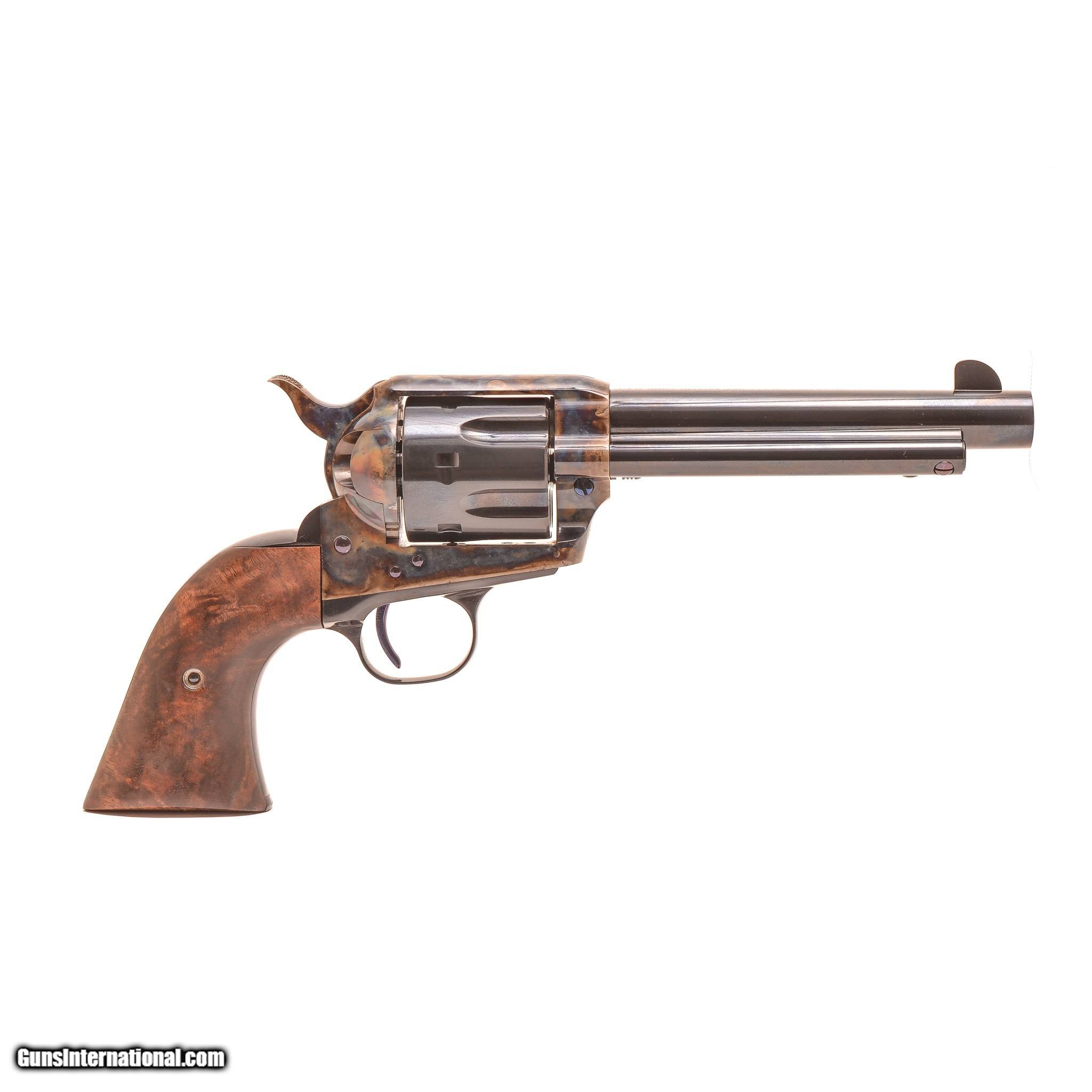 Description: Standard Manufacturing SA Revolver Description: Never before in history has an effort been put forth to produce the finest single action revolver. To start, this entire gun is made of solid 4140 steel; there are no inferior cast or metal injection molded parts used. No other maker of this type of gun can make such a claim. Additionally, the precision machining equipment used in the manufacture of our guns is the absolute finest in the industry and because the machining is done in-house, quality is carefully controlled. Even the very best parts are of little value without the hands and minds of experienced gunsmiths. The master gunsmiths here at Standard Manufacturing are versed in making iconic guns that include the Ansley H. Fox, Parker, and Model 21 double shotguns. Upon close inspection of our Single Action Revolver, you will immediately recognize that this gun is something very special. With its perfect fit between all of the parts to the hand polishing and stoning. From the deep blued finishes to the traditional bone and charcoal color case hardening on all of the metal surfaces, even all of the screws are perfectly timed. Our Single Action Revolvers are true to form, which is to say the man who designed this gun originally would immediately recognize it as his own, as would the legends of the Wild West. These guns are available for immediate delivery starting at $1,895, plus $40 shipping and handling to your local FFL dealer. Specifications and Features Action Type: Single Action, with cone shaped firing pin and no transfer bar Caliber: .45 LC Capacity: 6 Barrel Length: 4 ¾”, 5 ½”, 7 ½” Hammer Type: Spurred and bone and charcoal color case hardened Grips: Hand made and fitted 2 piece Fancy Walnut Sights: Fixed Weight: 40 oz. (approx.) Finish: Frame is bone and charcoal color case hardened Barrel, cylinder, and metal parts are deep blued All screws and pins are fire blued. Price: $1,895.00 SOLD |