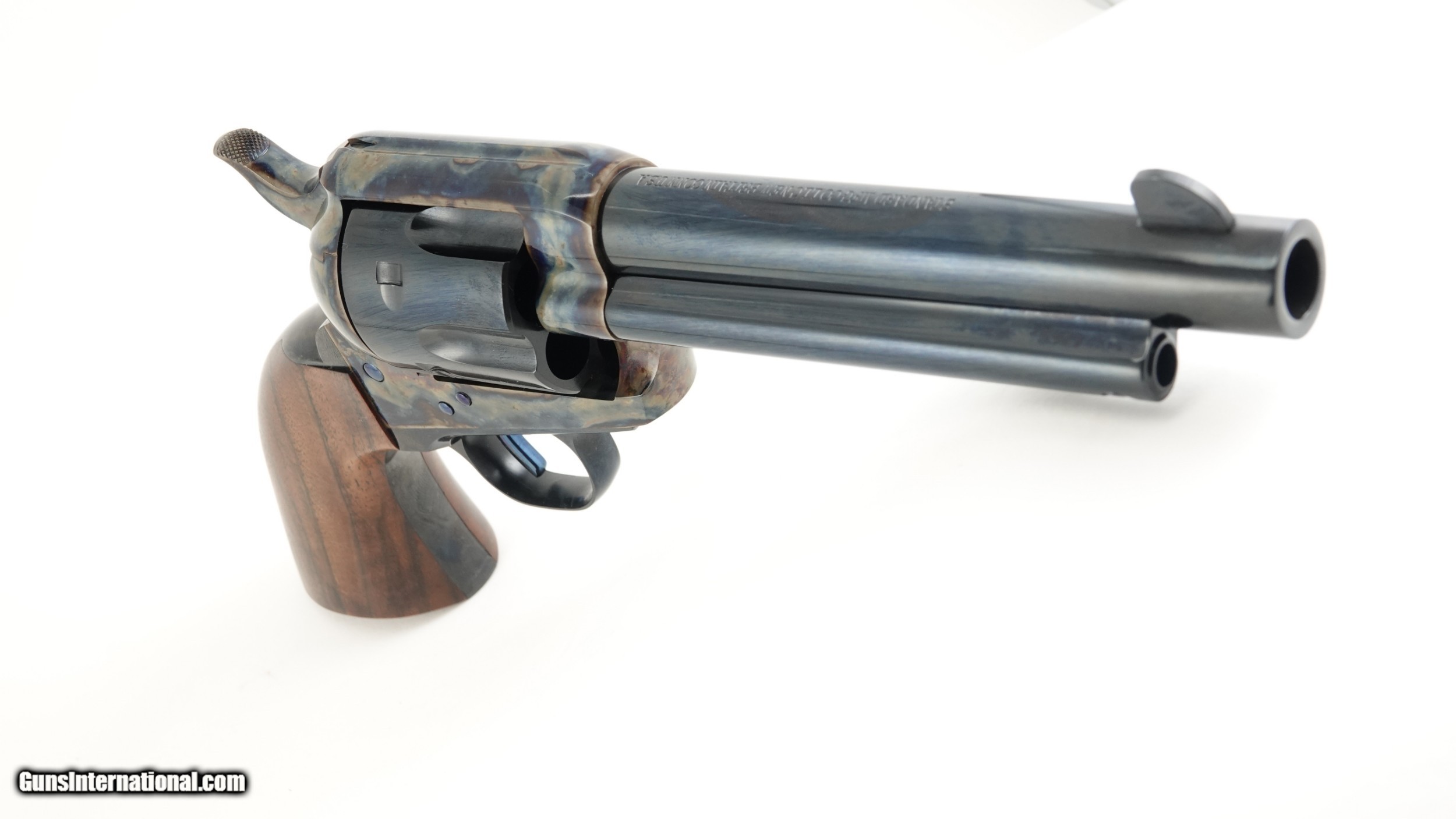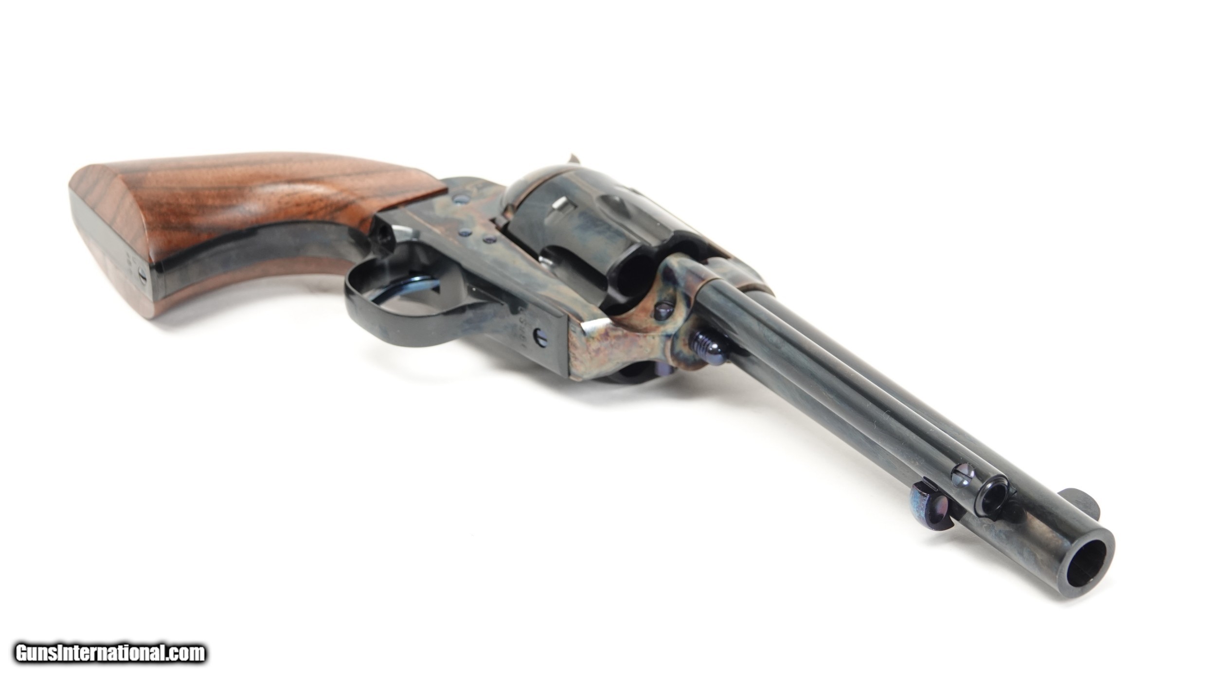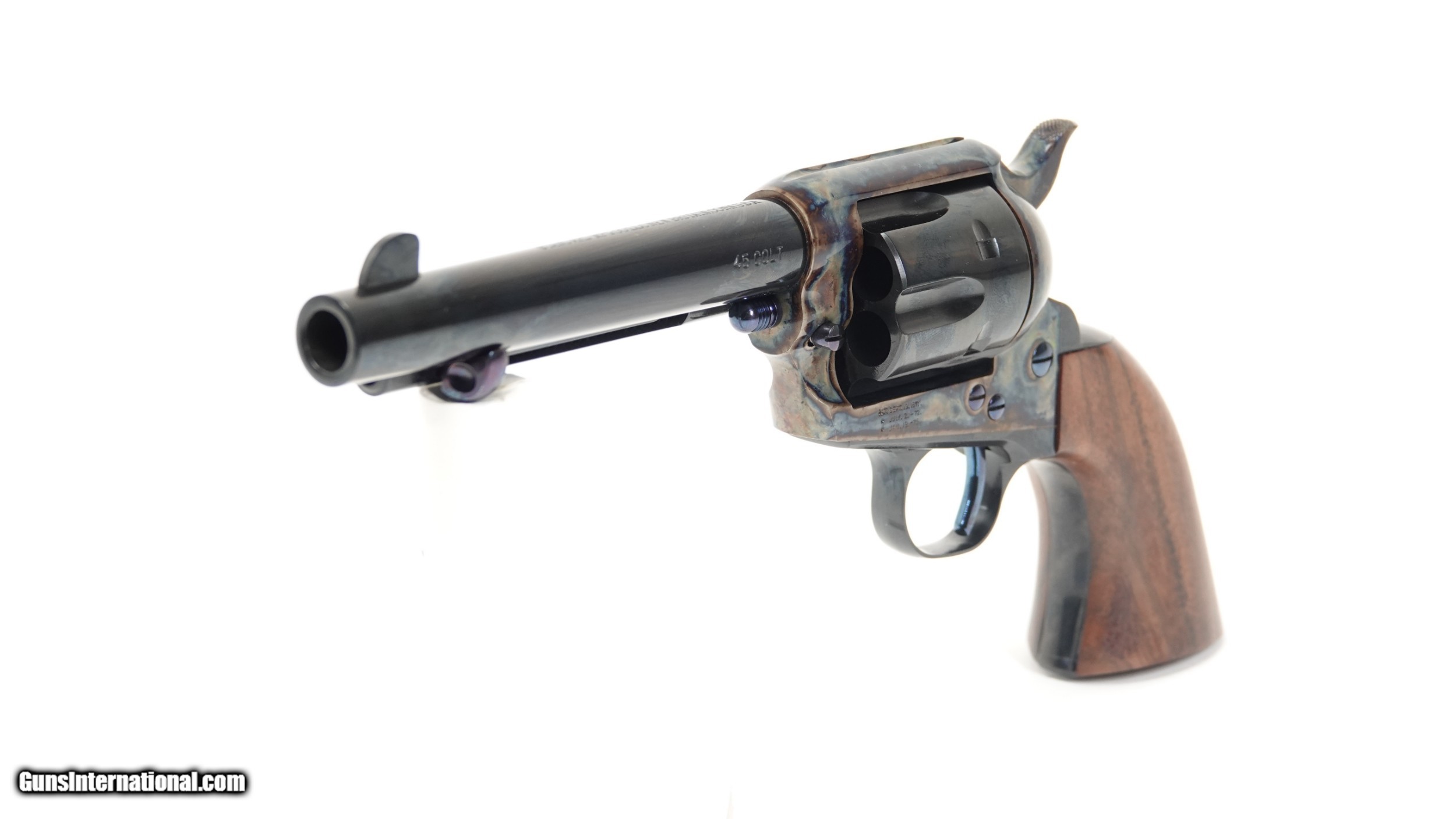 Description: Standard Manufacturing SA Revolver Description: Never before in history has an effort been put forth to produce the finest single action revolver. To start, this entire gun is made of solid 4140 steel; there are no inferior cast or metal injection molded parts used. No other maker of this type of gun can make such a claim. Additionally, the precision machining equipment used in the manufacture of our guns is the absolute finest in the industry and because the machining is done in-house, quality is carefully controlled. Even the very best parts are of little value without the hands and minds of experienced gunsmiths. The master gunsmiths here at Standard Manufacturing are versed in making iconic guns that include the Ansley H. Fox, Parker, and Model 21 double shotguns. Upon close inspection of our Single Action Revolver, you will immediately recognize that this gun is something very special. With its perfect fit between all of the parts to the hand polishing and stoning. From the deep blued finishes to the traditional bone and charcoal color case hardening on all of the metal surfaces, even all of the screws are perfectly timed. Our Single Action Revolvers are true to form, which is to say the man who designed this gun originally would immediately recognize it as his own, as would the legends of the Wild West. These guns are available for immediate delivery starting at $1,895, plus $40 shipping and handling to your local FFL dealer. Specifications and Features Action Type: Single Action, with cone shaped firing pin and no transfer bar Caliber: .45 LC Capacity: 6 Barrel Length: 4 ¾”, 5 ½”, 7 ½” Hammer Type: Spurred and bone and charcoal color case hardened Grips: Hand made and fitted 2 piece Fancy Walnut Sights: Fixed Weight: 40 oz. (approx.) Finish: Frame is bone and charcoal color case hardened Barrel, cylinder, and metal parts are deep blued All screws and pins are fire blued. Price: $1,895.00 SOLD |
