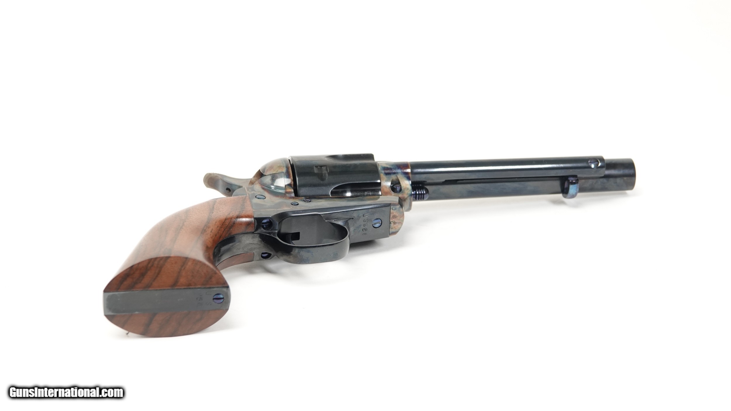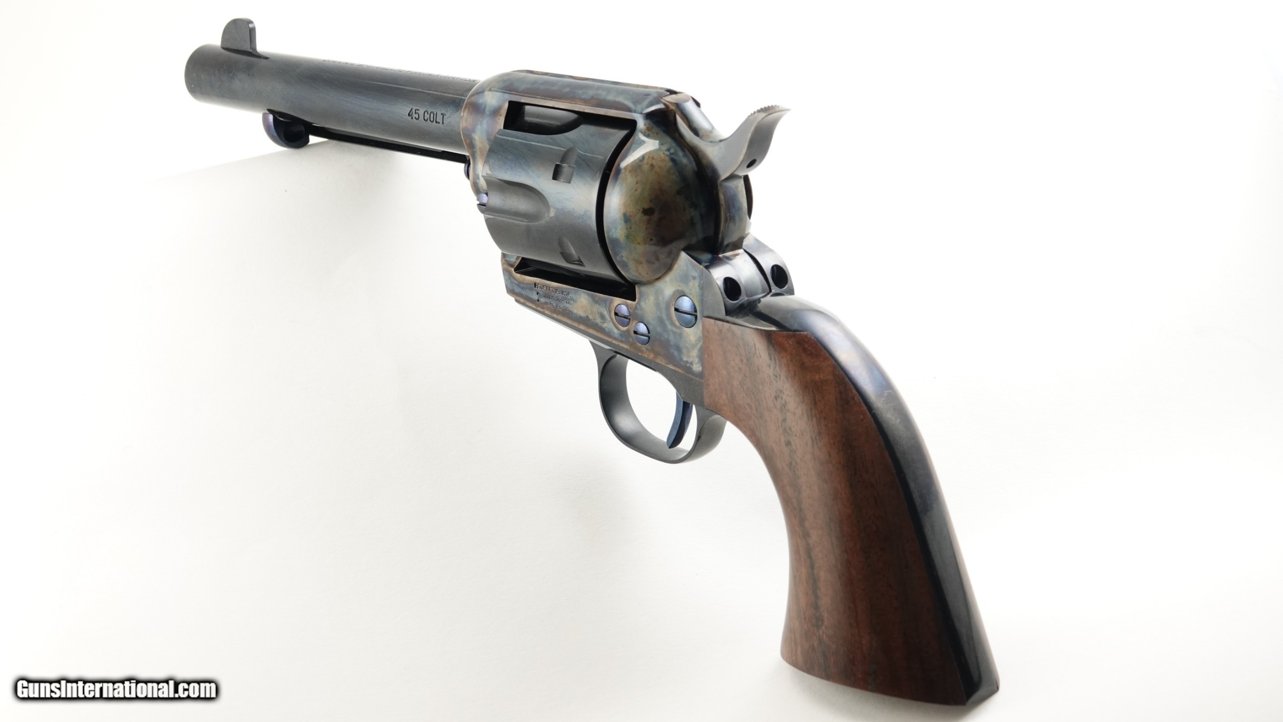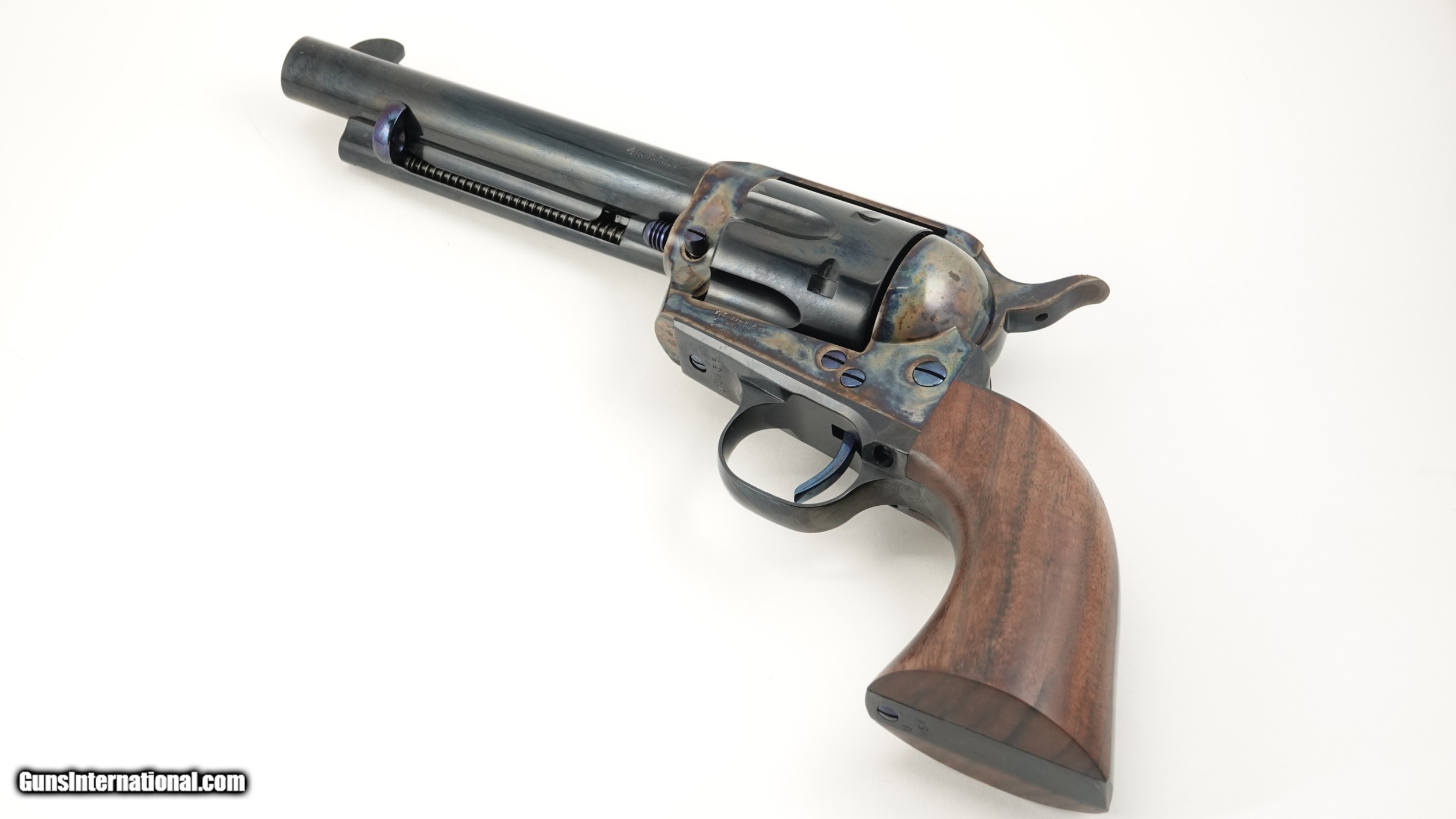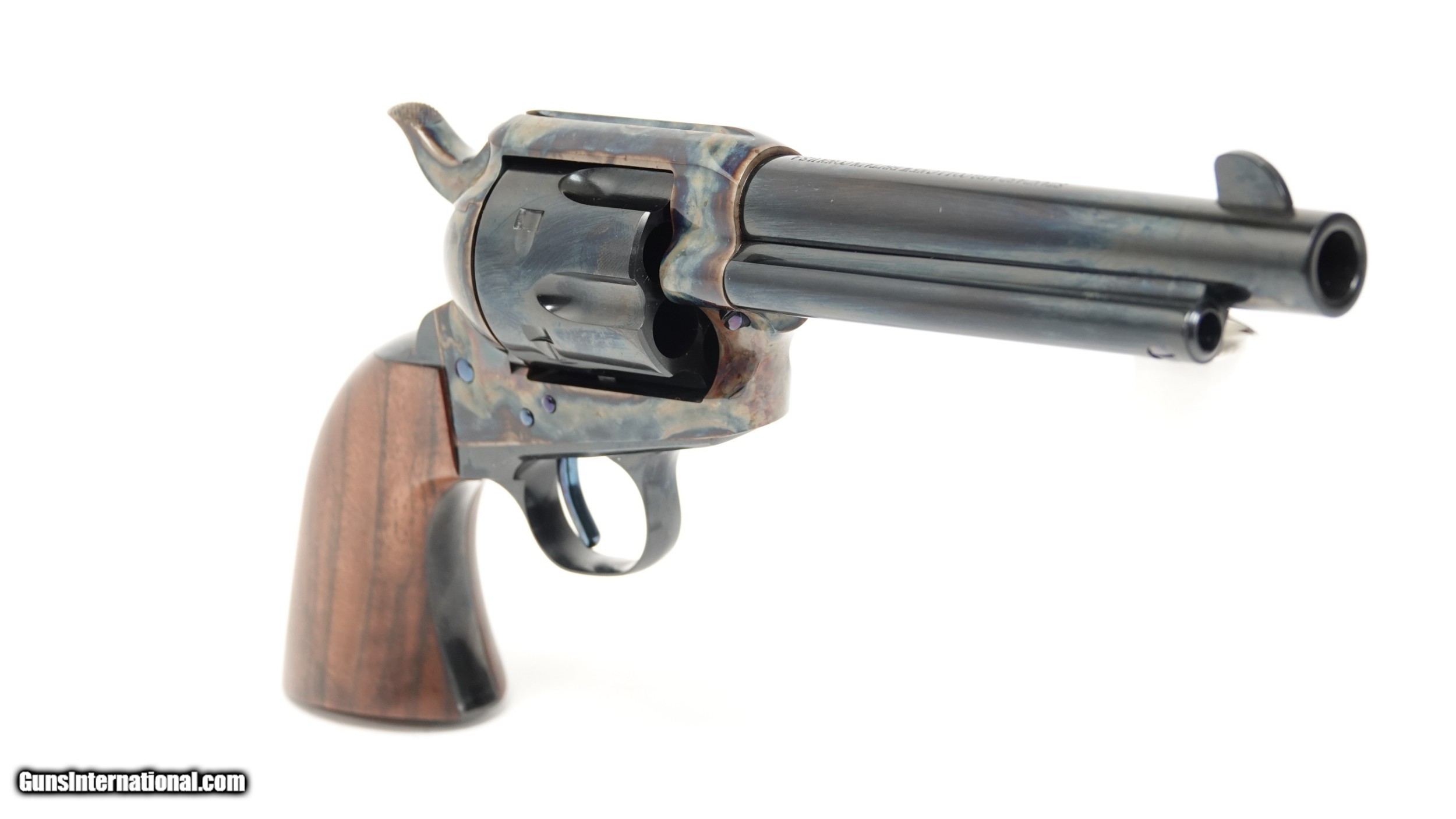 Description: Standard Manufacturing SA Revolver Description: Never before in history has an effort been put forth to produce the finest single action revolver. To start, this entire gun is made of solid 4140 steel; there are no inferior cast or metal injection molded parts used. No other maker of this type of gun can make such a claim. Additionally, the precision machining equipment used in the manufacture of our guns is the absolute finest in the industry and because the machining is done in-house, quality is carefully controlled. Even the very best parts are of little value without the hands and minds of experienced gunsmiths. The master gunsmiths here at Standard Manufacturing are versed in making iconic guns that include the Ansley H. Fox, Parker, and Model 21 double shotguns. Upon close inspection of our Single Action Revolver, you will immediately recognize that this gun is something very special. With its perfect fit between all of the parts to the hand polishing and stoning. From the deep blued finishes to the traditional bone and charcoal color case hardening on all of the metal surfaces, even all of the screws are perfectly timed. Our Single Action Revolvers are true to form, which is to say the man who designed this gun originally would immediately recognize it as his own, as would the legends of the Wild West. These guns are available for immediate delivery starting at $1,895, plus $40 shipping and handling to your local FFL dealer. Specifications and Features Action Type: Single Action, with cone shaped firing pin and no transfer bar Caliber: .45 LC Capacity: 6 Barrel Length: 4 ¾”, 5 ½”, 7 ½” Hammer Type: Spurred and bone and charcoal color case hardened Grips: Hand made and fitted 2 piece Fancy Walnut Sights: Fixed Weight: 40 oz. (approx.) Finish: Frame is bone and charcoal color case hardened Barrel, cylinder, and metal parts are deep blued All screws and pins are fire blued. Price: $1,895.00 SOLD |