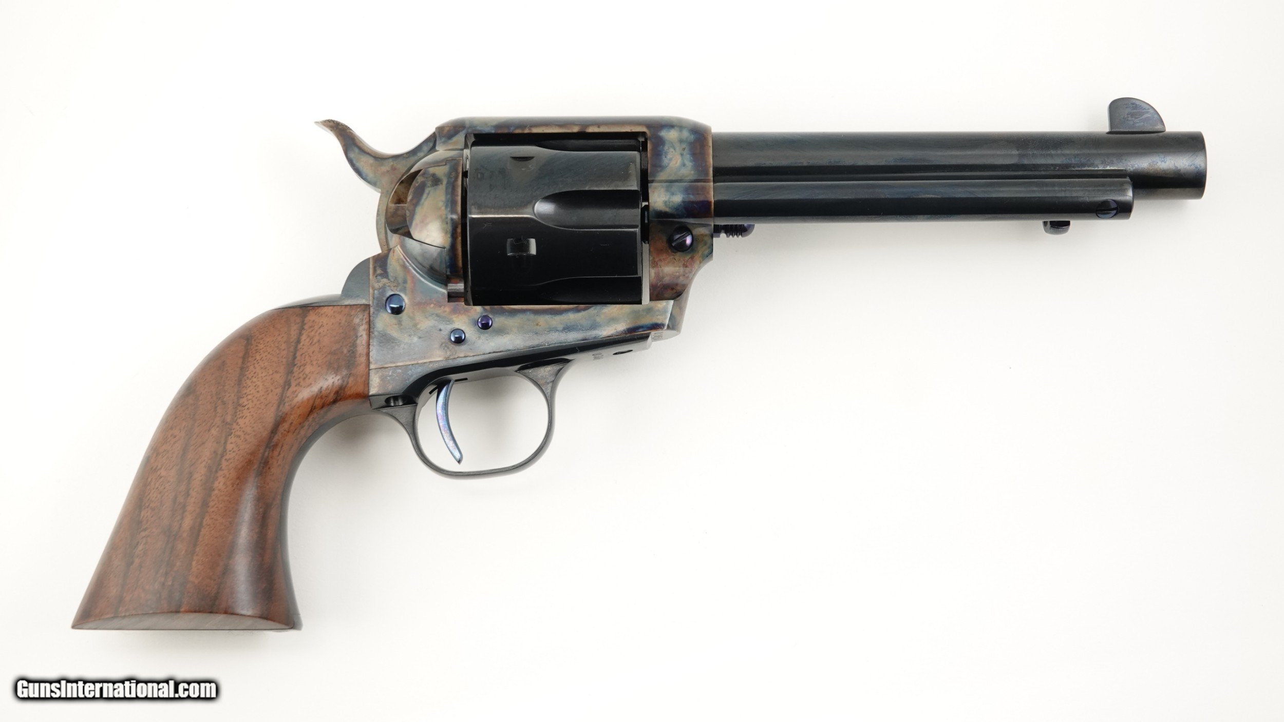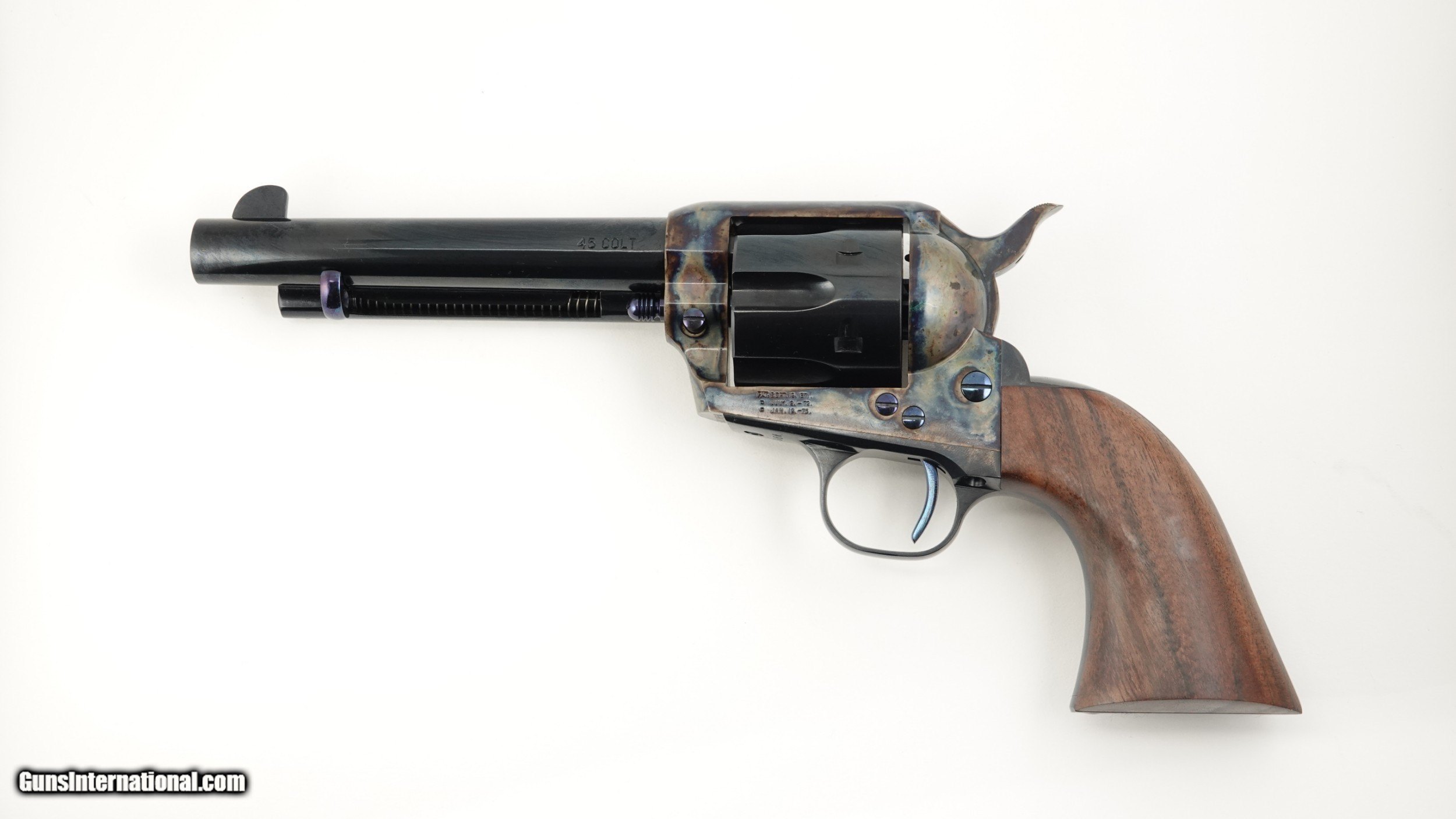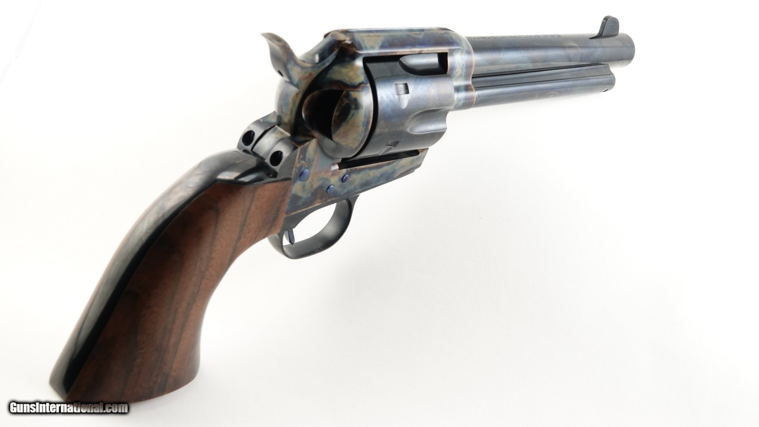 Description: Standard Manufacturing SA Revolver Description: Never before in history has an effort been put forth to produce the finest single-action revolver. To start, this entire gun is made of solid 4140 steel; there are no inferior cast or metal injection molded parts used. No other maker of this type of gun can make such a claim. Additionally, the precision machining equipment used in the manufacture of our guns is the absolute finest in the industry and because the machining is done in-house, quality is carefully controlled. Even the very best parts are of little value without the hands and minds of experienced gunsmiths. The master gunsmiths here at Standard Manufacturing are versed in making iconic guns that include the Ansley H. Fox, Parker, and Model 21 double shotguns. Upon close inspection of our Single Action Revolver, you will immediately recognize that this gun is something very special. With its perfect fit between all of the parts to the hand polishing and stoning. From the deep blued finishes to the traditional bone and charcoal color case hardening on all of the metal surfaces, even all of the screws are perfectly timed. Our Single Action Revolvers are true to form, which is to say the man who designed this gun originally would immediately recognize it as his own, as would the legends of the Wild West. What do others say about the Standard Manufacturing Single Action? ://thetruthaboutguns/gun-review-standard-manufacturing-single-action-revolver/ Gun Review: Standard Manufacturing Single Action Revolver BY JON WAYNE TAYLOR | AUG 07, 2019 "The Standard revolvers simply outshine, outperform, and outclass the other traditional single-action revolvers on the market." These guns are available for immediate delivery starting at $1,895, plus $40 shipping and handling to your local FFL dealer. Specifications and Features Action Type: Single Action, with cone shaped firing pin and no transfer bar Caliber: .45 LC Capacity: 6 Barrel Length: 4 ¾”, 5 ½”, 7 ½” Hammer Type: Spurred and bone and charcoal color case hardened Grips: Hand made and fitted 2 piece Fancy Walnut Sights: Fixed Weight: 40 oz. (approx.) Finish: Frame is bone and charcoal color case hardened Barrel, cylinder, and metal parts are deep blued All screws and pins are fire blued. Price: $1,895.00 * Shown with optional 1 pcs grips * SOLD |