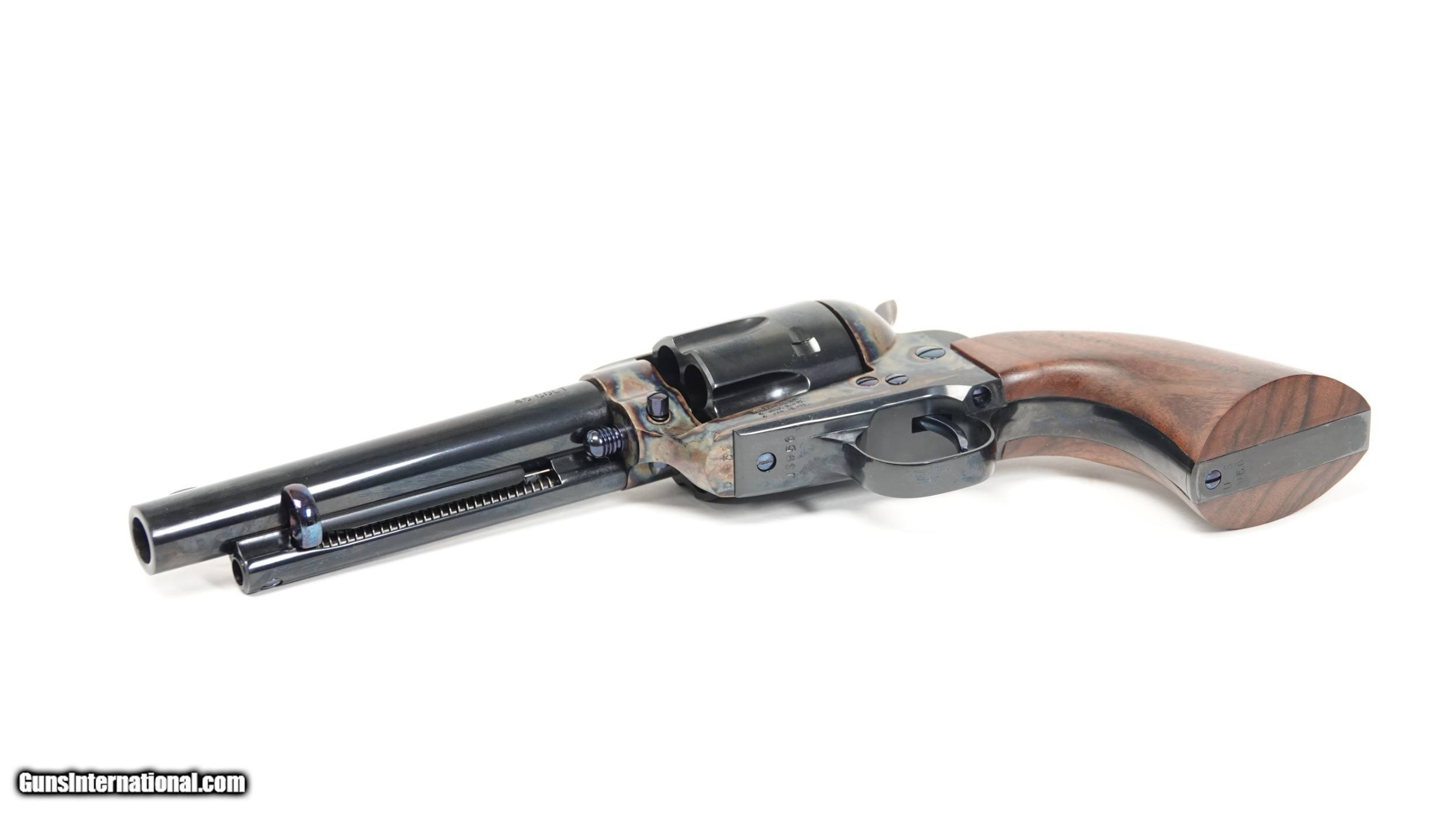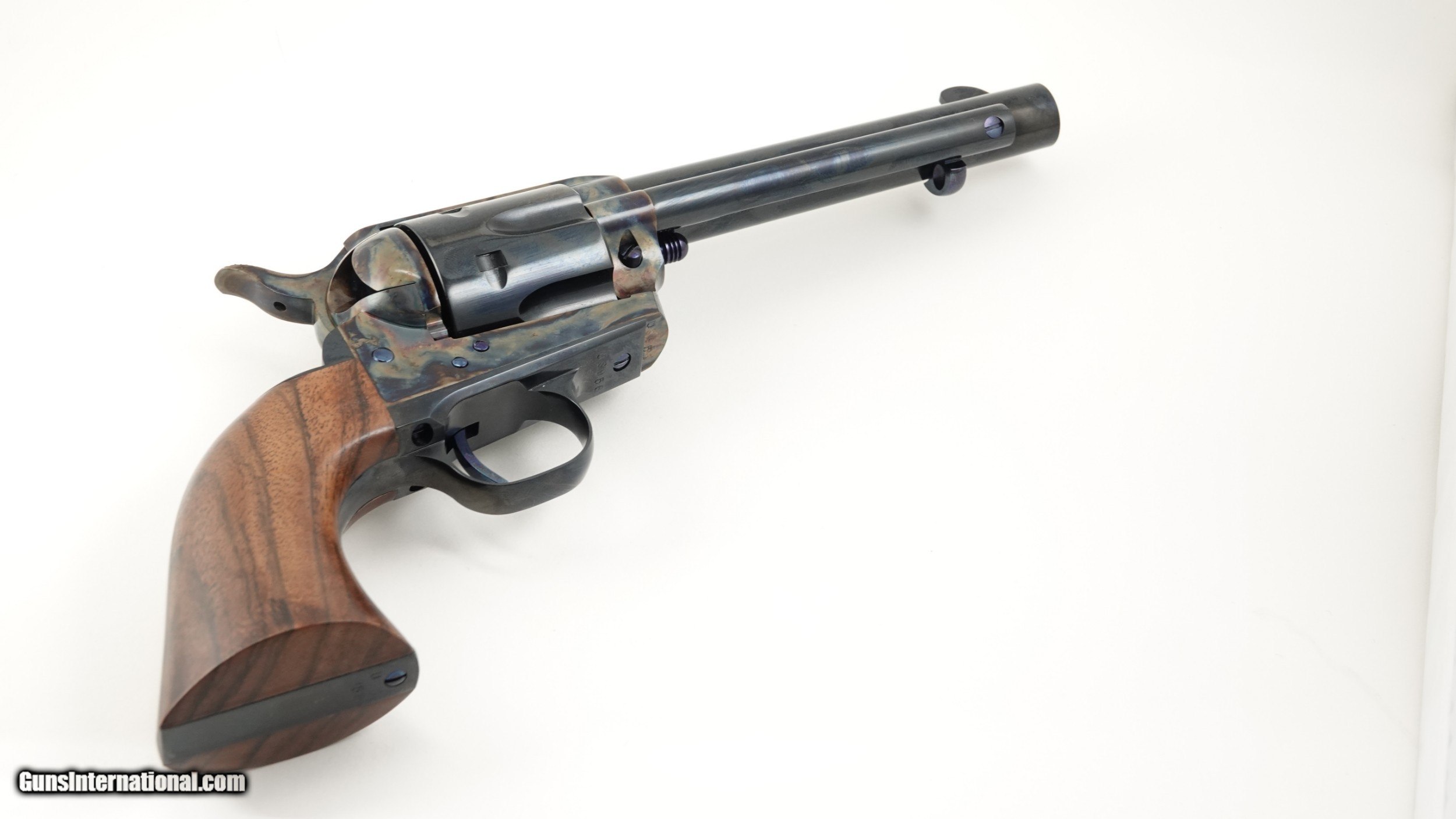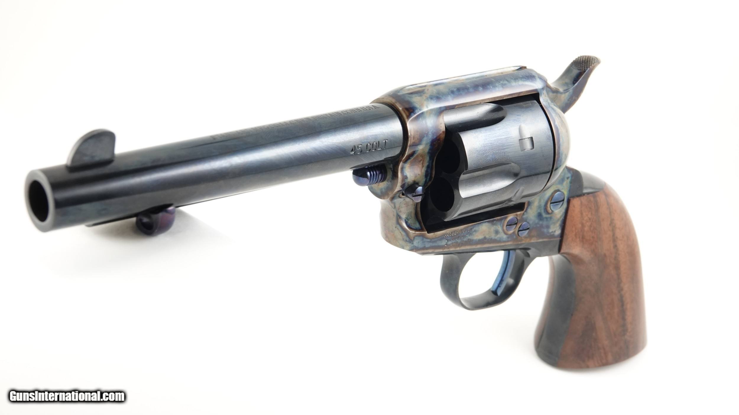 Description: Standard Manufacturing SA Revolver Description: Never before in history has an effort been put forth to produce the finest single-action revolver. To start, this entire gun is made of solid 4140 steel; there are no inferior cast or metal injection molded parts used. No other maker of this type of gun can make such a claim. Additionally, the precision machining equipment used in the manufacture of our guns is the absolute finest in the industry and because the machining is done in-house, quality is carefully controlled. Even the very best parts are of little value without the hands and minds of experienced gunsmiths. The master gunsmiths here at Standard Manufacturing are versed in making iconic guns that include the Ansley H. Fox, Parker, and Model 21 double shotguns. Upon close inspection of our Single Action Revolver, you will immediately recognize that this gun is something very special. With its perfect fit between all of the parts to the hand polishing and stoning. From the deep blued finishes to the traditional bone and charcoal color case hardening on all of the metal surfaces, even all of the screws are perfectly timed. Our Single Action Revolvers are true to form, which is to say the man who designed this gun originally would immediately recognize it as his own, as would the legends of the Wild West. What do others say about the Standard Manufacturing Single Action? ://thetruthaboutguns/gun-review-standard-manufacturing-single-action-revolver/ Gun Review: Standard Manufacturing Single Action Revolver BY JON WAYNE TAYLOR | AUG 07, 2019 "The Standard revolvers simply outshine, outperform, and outclass the other traditional single-action revolvers on the market." These guns are available for immediate delivery starting at $1,895, plus $40 shipping and handling to your local FFL dealer. Specifications and Features Action Type: Single Action, with cone shaped firing pin and no transfer bar Caliber: .45 LC Capacity: 6 Barrel Length: 4 ¾”, 5 ½”, 7 ½” Hammer Type: Spurred and bone and charcoal color case hardened Grips: Hand made and fitted 2 piece Fancy Walnut Sights: Fixed Weight: 40 oz. (approx.) Finish: Frame is bone and charcoal color case hardened Barrel, cylinder, and metal parts are deep blued All screws and pins are fire blued. Price: $1,895.00 * Shown with optional 1 pcs grips * SOLD |