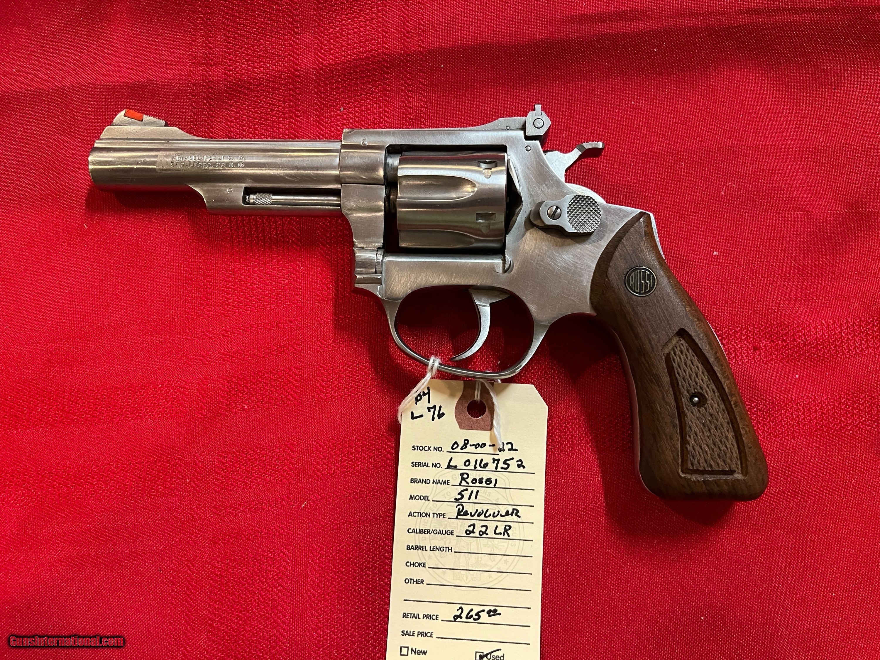 Description: Rossi 511 stainless steel 4" revolver. Wooden grips. Adjustable sights. Very clean. SOLD Handgun Caliber: .22 Long Rifle |