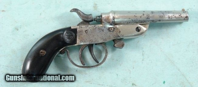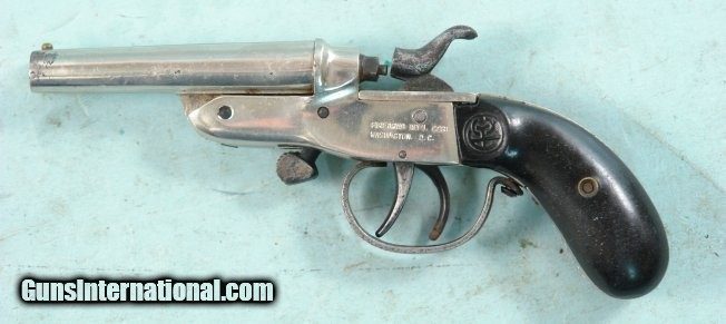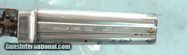 Description: ROSSI DOUBLE BARREL TIP-UP .22 LONG RIFLE CAL. DERRINGER CIRCA 1960’S. 3” rifled barrels stamped “ROSSI CAL. 22.” And “MADE IN BRAZIL”. Left side of frame stamped “FIREARMS INTL. CORP/WASHINGTON, D.C.”. Double triggers, rebounding firing pins and extractor. Nickle plated with light wear. Original hard rubber grips. Working order and very good bores. SOLD Handgun Caliber: .22 Long Rifle |