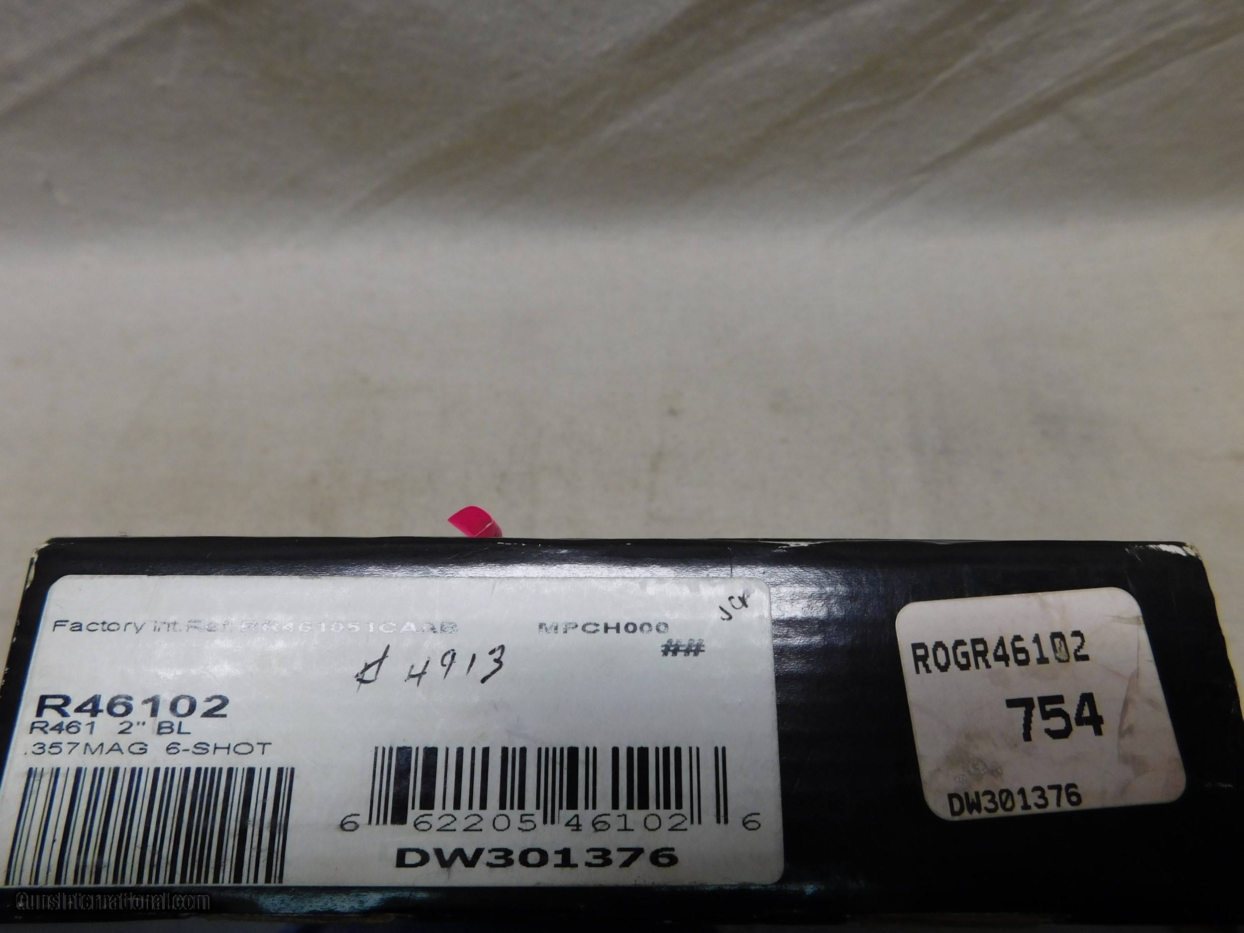 Description: Rossi Model 461 Revolver,357 Magnum,2" Barrel,Blued,6 Shot, Finger Groove Grips, New Unfired with Box & Papers!! Store hours Thurs-Fri-10AM-8PM Sat-9AM-12PM All Other times please leave a message,Thank You! No California Sales Lower 48 State Sales only Shipping $ 35.00 SOLD Manufacturer: Rossi Model: 461 Serial Number: DW301376 Caliber Info: 357 Magnum |