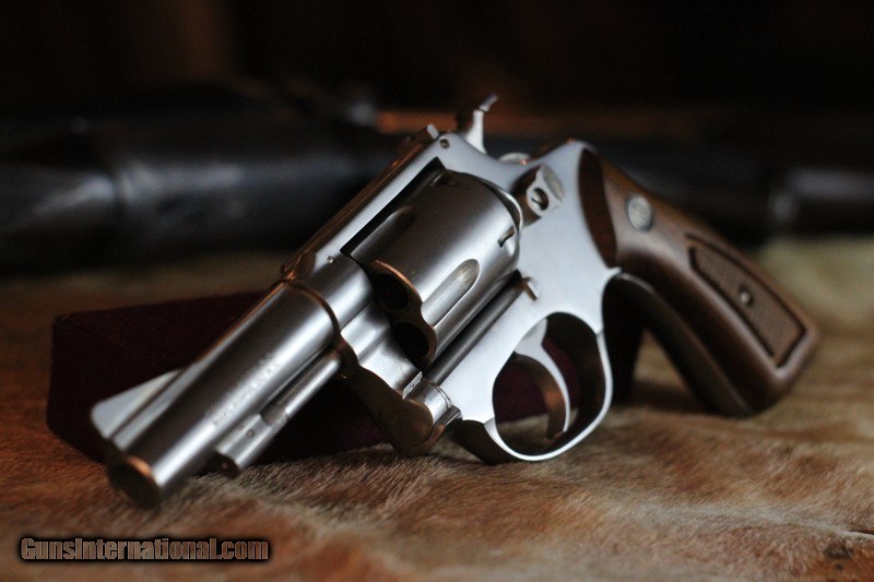 Description: This gun has a stainless finish with factory wood grips 3” barrel and rear sight adjustable for windage. 95% condition with 5 shot cylinder. A very nice example of pocket revolvers Price: $309.00 Shipping: $40.00 SOLD |