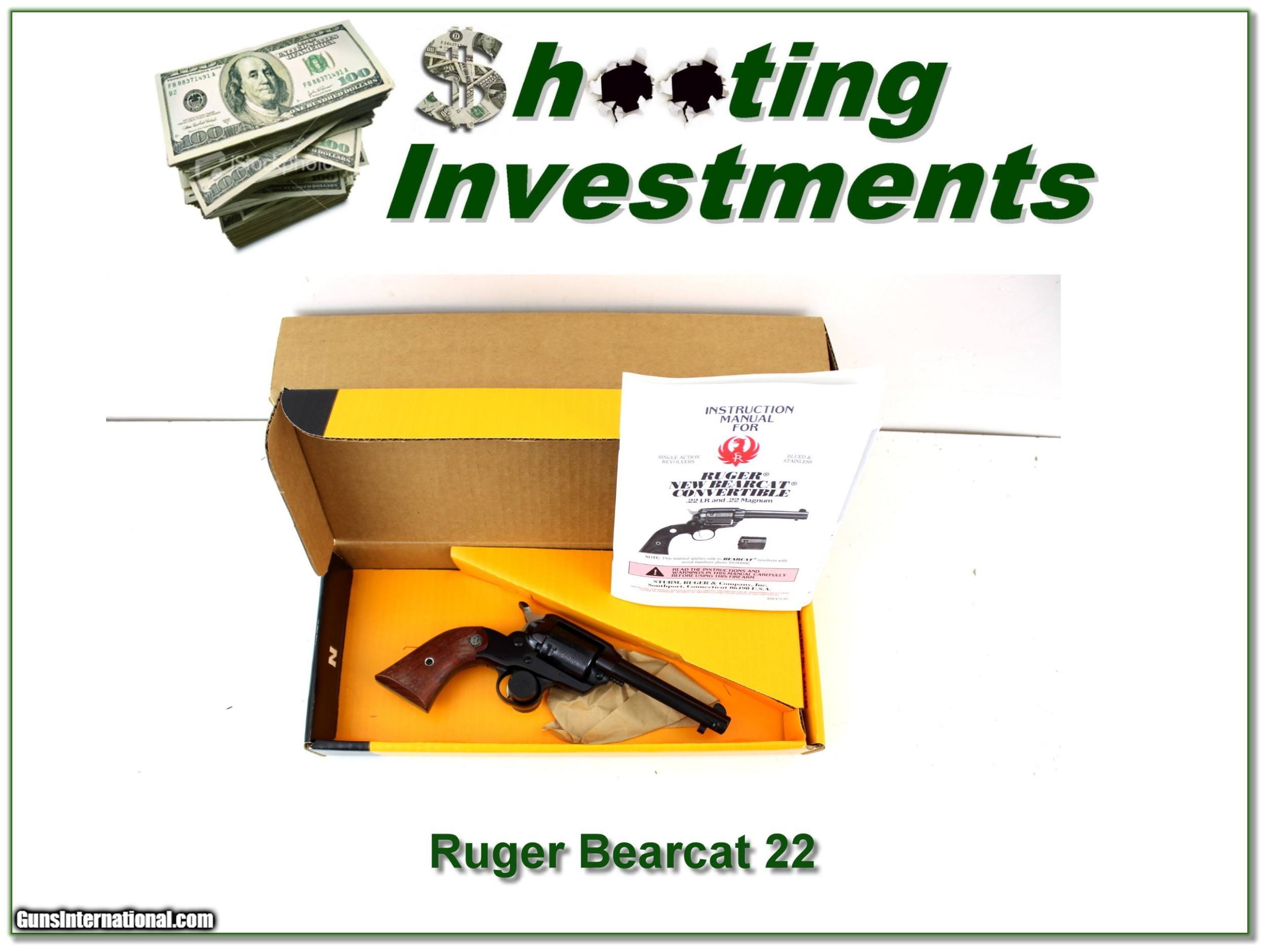 Description: Collectors, this is the original model Ruger Bearcat 22. It has a 4in barrel and in new and unfired. It comes in original box with manual and outer box with serialized end label. I am selling this one on consignment and as such lay-a-way can’t be used. It does of course have the standard 3-day inspection. Shipping and insurance is $39. Please email me with any questions or larger pictures. (Consign your quality firearms with Shooting Investments for only 12%! Let me know if you have any you would like to sell!) 21-1598 Payment: Payment is by Money Order, Cashiers Check or Personal Check. I can now also accept Credit Cards (MasterCard, Visa, Discover & American Express) with a 3% convenience fee. Shipping: The shipping charge will be listed in each description. It is $39 for most firearms. Some heavy guns or those insured for over $2000 will be higher. Shipments to Alaska and Hawaii are higher because air shipment is required. Most firearms are shipped on Tuesday and Thursday and usually in 5 days of receipt of payment. We package all shipments carefully and insure them. Optics are shipped Priority Mail and most other non-firearm shipments are shipped First Class. Returns: Our return policy is simple. If for any reason you are not pleased with your purchase, you may return your item for a full refund of purchase price. Ammunition cannot be returned. It is important to us that you are happy. Guns cannot be fired or dissembled before returning them and they must be returned in the same condition as received. Notification of a return must occur with-in 3 days of receipt at your dealer. Shipping, convenience and dealer fees are not refundable and are the responsibility of the buyer. Lay-a-way: If needed, we offer a 60 day lay-a-way option on most firearms. It is 1/3 now, 1/3 in 30 days and 1/3 in 60 days. Lay-a-way firearm sales are final and if not completed the first payment cannot be returned. Consigning your firearms with Shooting Investments: We will help you get top dollar for your firearms. While most local guns shops charge 20% or more, our fee is only 12% with a minimum of $75. At your local gun shop it might take months to sell. Selling on-line provides instant access to thousands of interested buyers. You won’t find any other on-line dealer willing to sell your firearms for only 12% or listing every gun on 3 separate s. Selling through an House typically costs the seller 15% and the buyer an addition 15% (so 30%) and you have to wait several months to sell and longer to receive funds. If properly priced, we will sell your firearms in a few weeks. Send us an email or give us a call and we’ll explain how easy it is for you to get top dollar. Trading: Trading for use is really just buying your gun to re-sell. If you have a gun you want to trade, please email a picture and we will let you know what we can give or it. You will always get more if we sell it for you on consignment. Help for California Buyers: We are happy to ship to California. It is the buyer’s responsibility to make sure any item you buy is legal in your state. We are also happy to help with your purchase of a firearm from someone other than us. If you see a gun you would like to buy but the seller can’t or won’t ship to California they can ship to use and we’ll then ship it to your California dealer. The cost for this service is only $30 + shipping. Let us know if we can help! SOLD |
