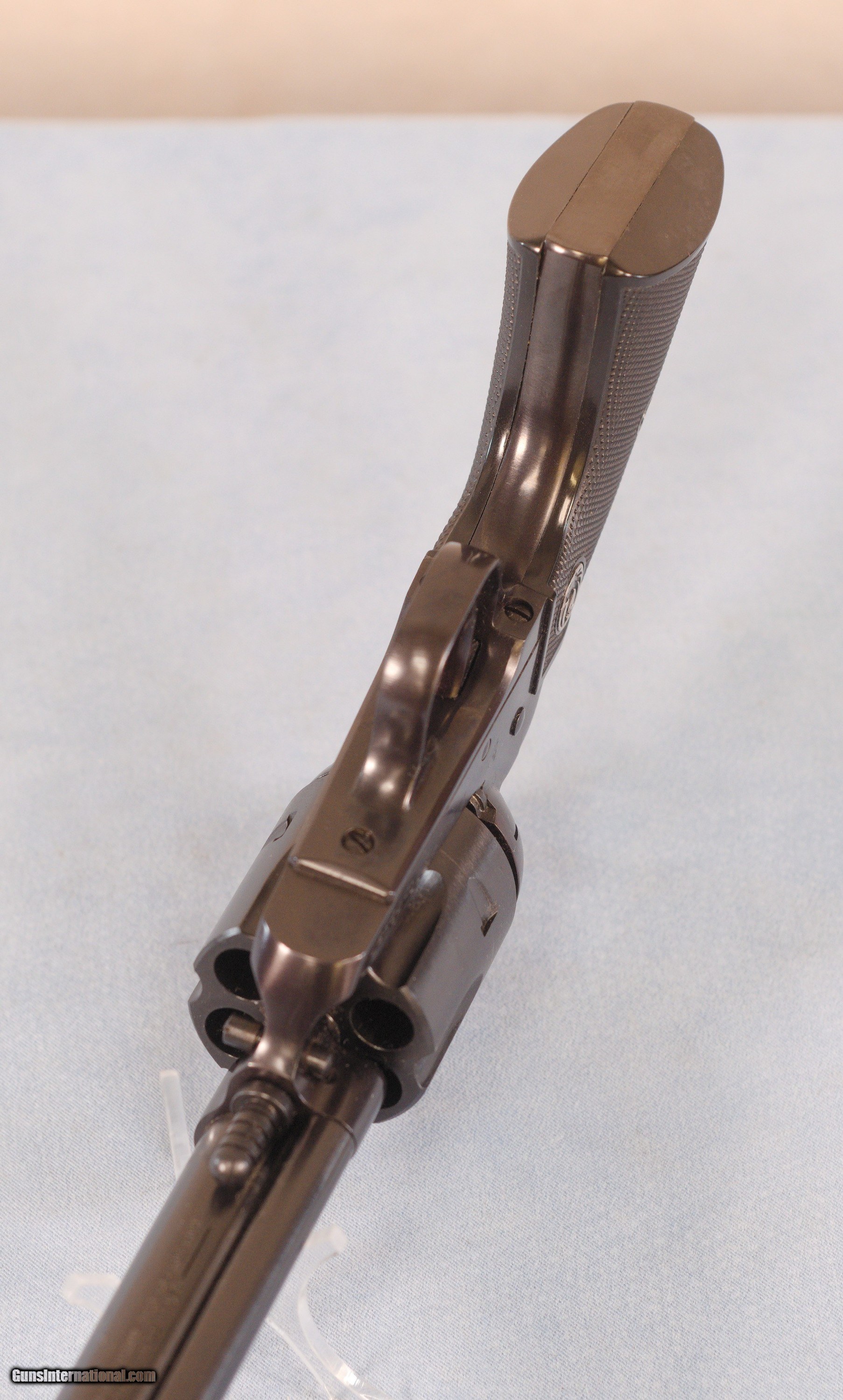 Description: Presented for consideration is a Ruger New Model Blackhawk in .44 Magnum caliber. In 1973, in order to eliminate accidents occurring from the hammer jarring against a round loaded in the sixth chamber, Ruger introduced the New Model Blackhawk. The New Model Blackhawk did not require the hammer to be half-cocked for loading and unloading, and it employed a transfer bar mechanism which prevented the cartridge under the hammer from being fired without the trigger being pulled. The New Blackhawk was seen as limiting firearms accidents and legal liability. Opening the loading gate allows the cylinder to be moved for loadiing of up to 6 cartridges. The .44 Remington Magnum, also known as .44 Magnum or 10.9x33mmR (as it is known in unofficial metric designation), is a rimmed, large-bore cartridge originally designed for revolvers and quickly adopted for carbines and rifles. Despite the ".44" designation, guns chambered for the .44 Magnum round, and its parent, the .44 Special, use 0.429 in (10.9 mm) diameter bullets. The .44 Magnum is based on the .44 Special case but lengthened and loaded to higher pressures for greater velocity and energy. This particular example has been used very little as evidenced by the light turn rings. There is virtually no wear at all on this fine Ruger Blackhawk. It is a 50th Anniversary model commemorating a milestone of the .44 Magnum cartridge. It has a ramped blade front sight and a micro adjustable rear. It is in outstanding condition overall. The 6 1/2" barrel is bright with strong rifling. This would make a great addition to a collection or a very special shooter. PRICE: **SOLD** We are Antique & Modern Firearms in Lexington, KY, a dealer of fine firearms since 1974. To Inquire please phone us at 859-276-1419 Mon-Fri 9am to 5pm We Buy, Sell, and Trade Firearms & Knives. Have an Individual Firearm, Firearms Collection, or Firearms Estate to sell, let us know, and we can buy or consignment sell it for you. NOTE: No additional fee for a Credit Card payment SOLD Handgun Caliber: .44 Remington Magnum Manufacturer: Ruger Model: New Model Blackhawk Serial Number: 870-02587 Barrel Length: 6 1/2 inches Condition: Very Good Metal Condition: Very Good Bore Condition: Very Good strong rifling Manufacture Date: 2006 |