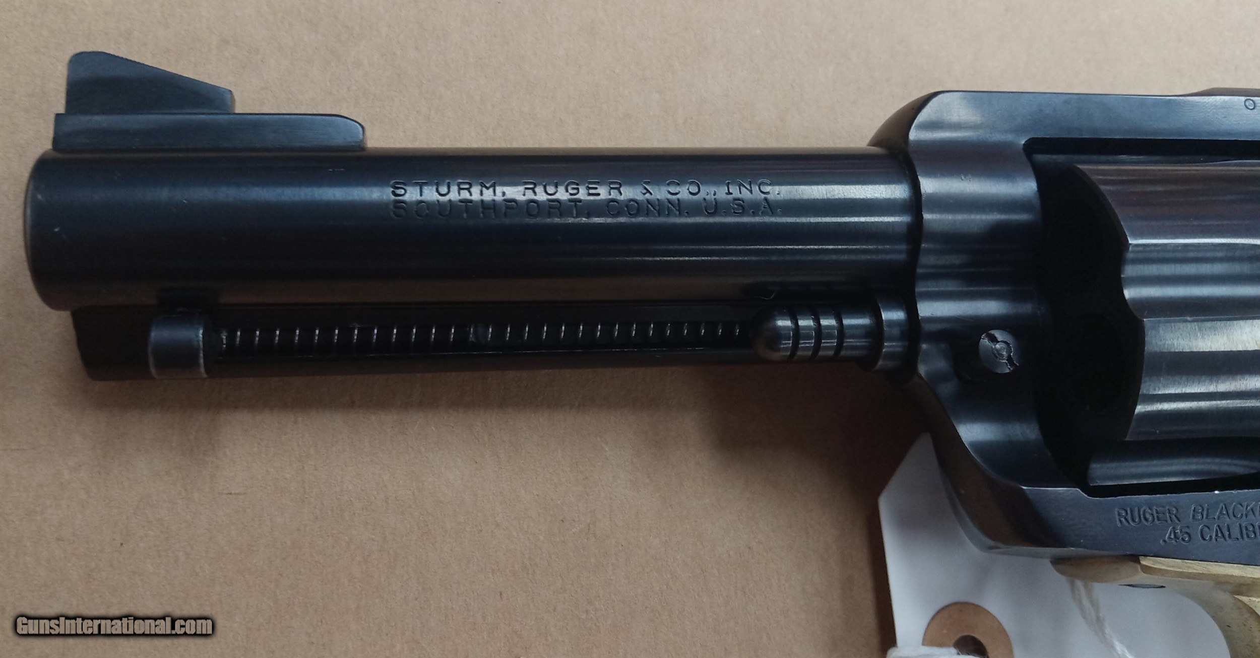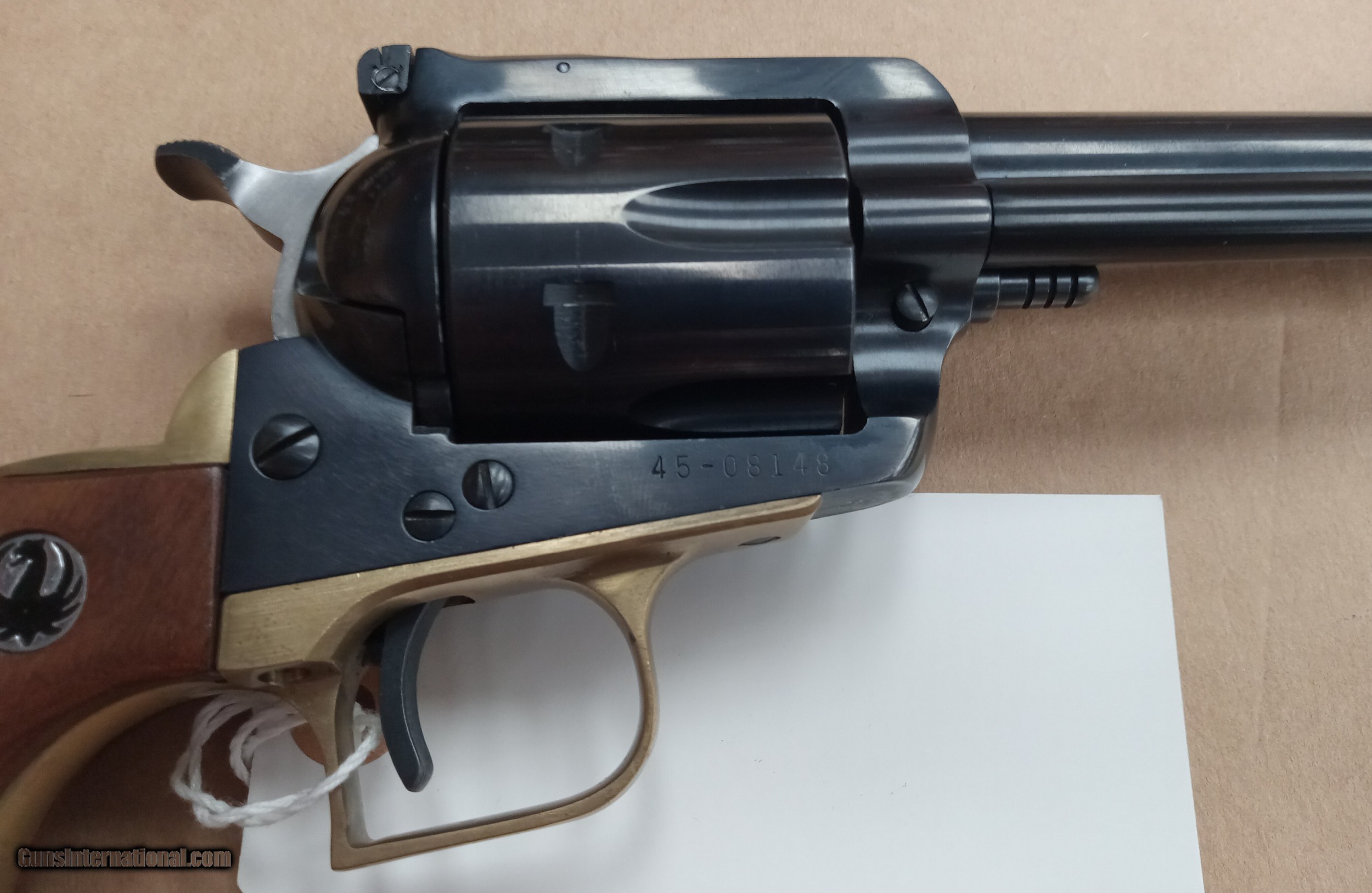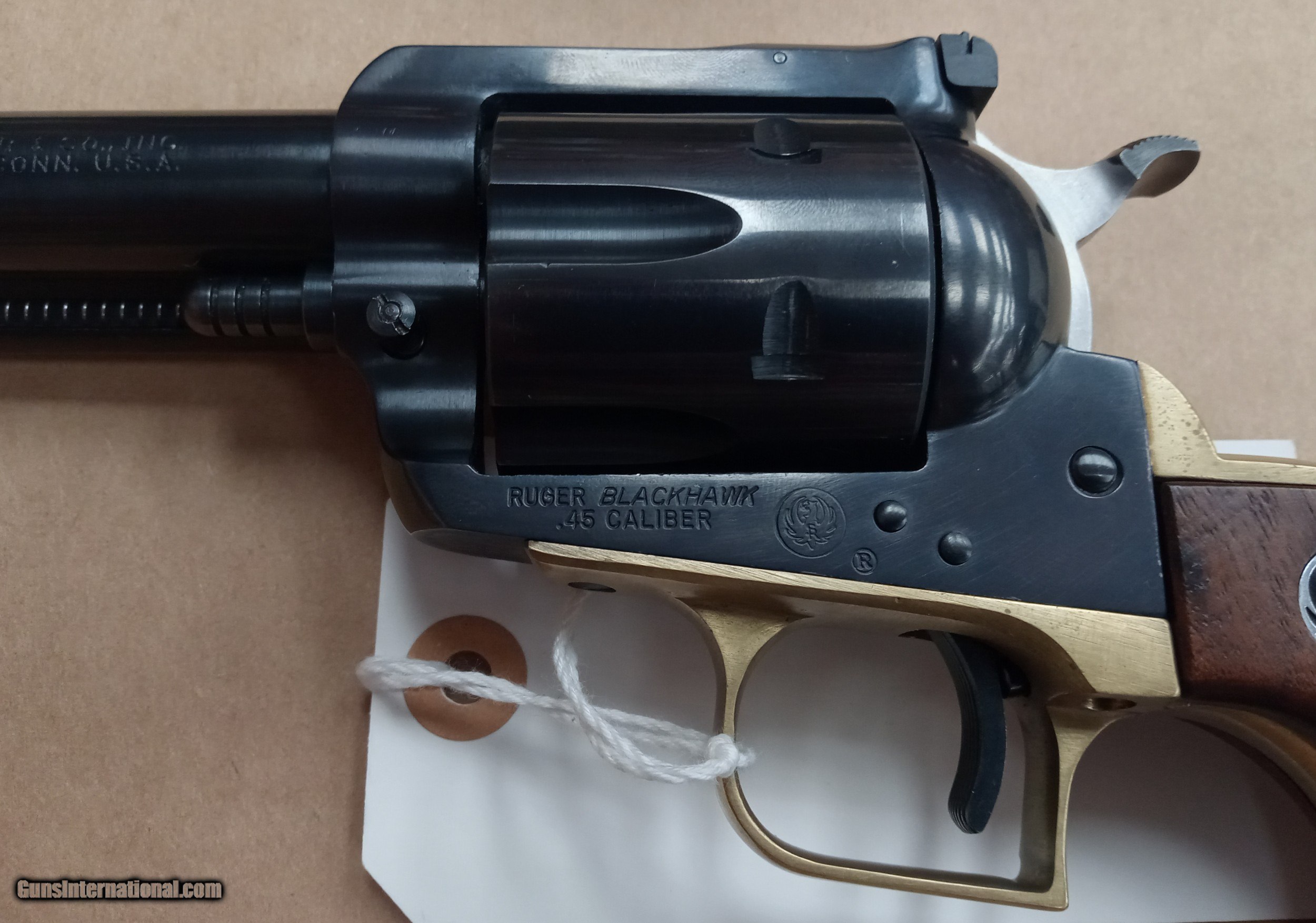 Description: Ruger Blackhawk .45 Colt revolver with brass frame. SOLD Handgun Caliber: .45 Colt Manufacturer: Ruger |