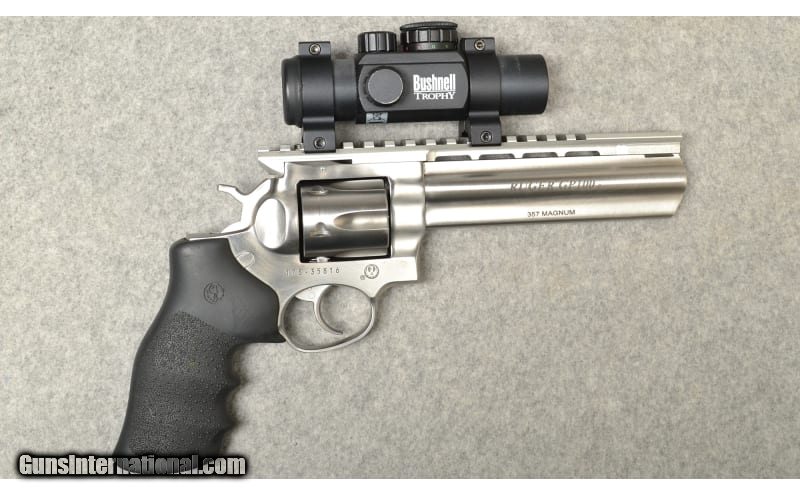 Description: This Ruger GP100 is in excellent condition and will make a great addition to your collection. This revolver will be great for hunting because of its picatinny rail and red dot optic. The ribbed barrel will help mitigate the mirage you get after shooting the revolver a lot and will give you a better sight picture. The action is very smooth and is followed by a light crisp trigger break. .357 Magnum SOLD Chambers: .357 Magnum Metal Condition: Excellent Bore Condition: Great Barrels: "Rifled, 6"" Barrel, Ribbed Weight: 2 lbs Sights: Bushnell Trophy red dot Item Location: Columbus, OH |