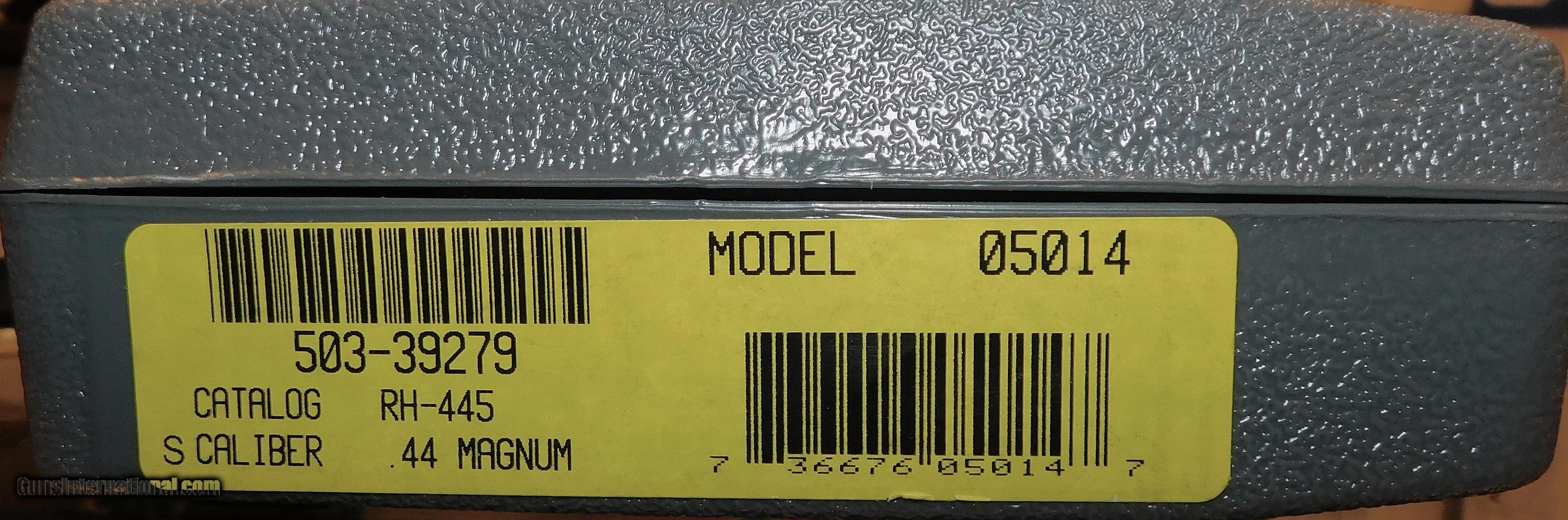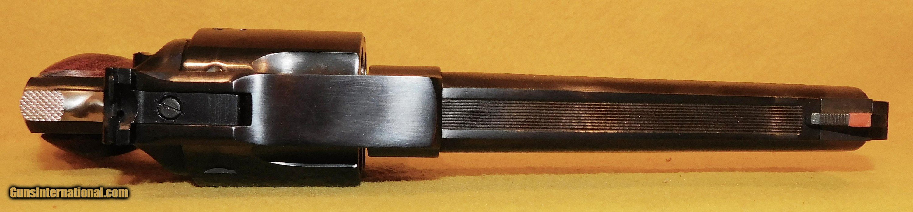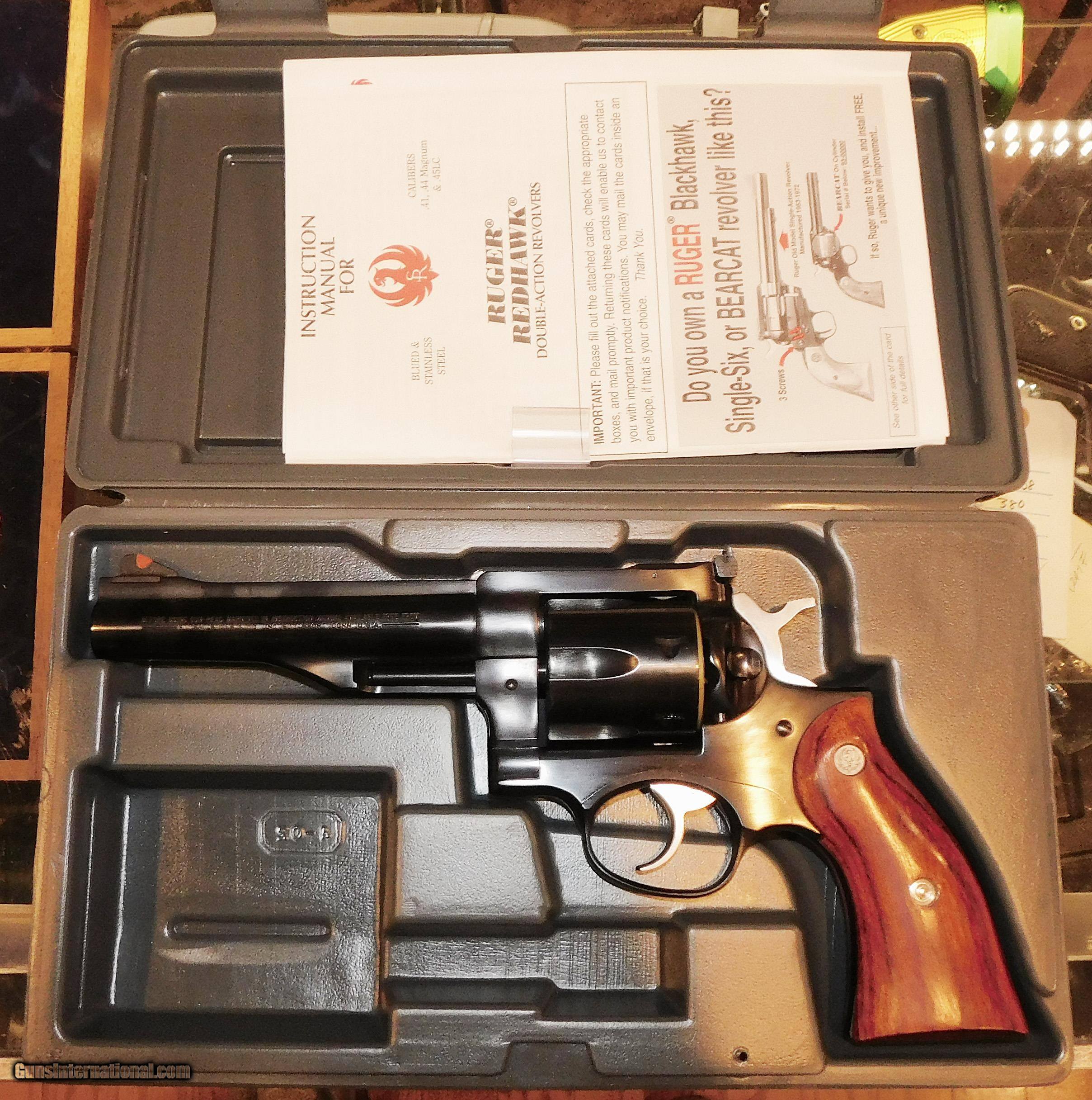 Description: RUGER RED HAWK IN .44 MAGNUM CAL., WITH 5.5" BARREL. COLOR BLUE. CONDITION 98%+ UNFIRED. SERIAL NUMBER 503-39279. RUGER MODEL RED HAWK (APPEARS UNFIRED) IN .44 MAGNUM CALIBER, MIRROR BORE, WALNUT GRIPS EXCELLENT, ADJUSTABLE REAR SIGHT WITH WHITE OUT LINE AND YELLOW FRONT BLAD INSERT, CYLINDER HAS BEEN ROTATED, COMES WITH HARD CASE AND PAPERS, 98%+ UNFIRED OVERALL CONDITION, OUR STOCK # D6670 SOLD |