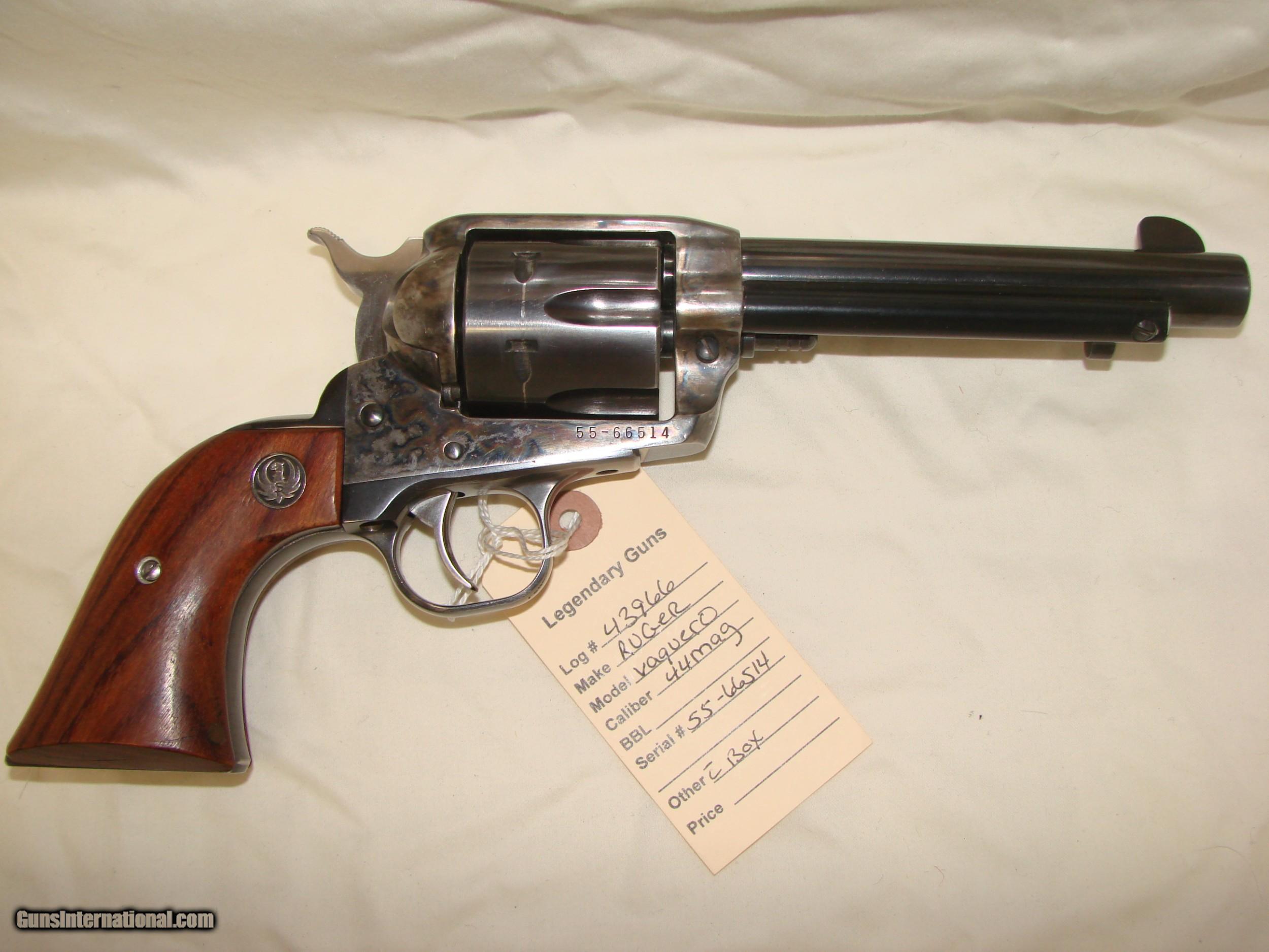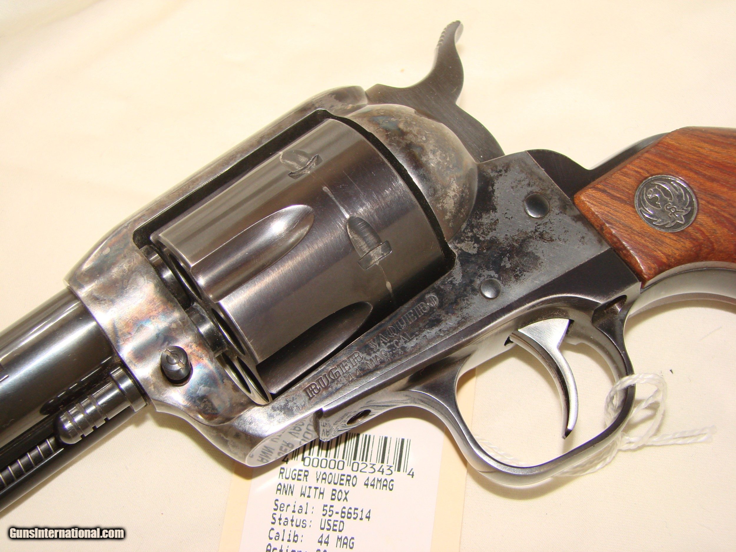 Description: Ruger Vaquero in 44Magnum with 5.5" barrel, wood grips, blue/case color finish,comes with an unnumbered box. Gun is used and has some cosemtic wear to the color and bluing. Mechanically the gun is in very good condition. Very good bore, tight lockup. *Legendary Guns in Phoenix AZ 602-242-1195 Hours of operation Tuesday-Friday 10-6 Sat 10-5 Closed Sundays & Mondays *We accept all Major credit cards. We DO NOT charge an additional fee for Credit Cards. We also accept Postal Money orders or Certified Bank Checks{Check & Money order payments must arrive within 7 days of initial agreement and will be held for 3 days before items are shipped} *Shipping is $50 for rifles/shotguns {AK & HI Extra} and $35 for handguns. Arizona Residents Must Pay Sales Tax. We DO NOT ship Internationally. *We offer a 60 day layaway on purchases of $500 or more. Items require 1/3 of the total price as down payment which is NON-REFUNDABLE and you have 60 days to pay off the balance. *Please call or email with any questions and to confirm availability before buying. We are happy to answer all questions. All items listed are also for sale at our Phoenix, AZ location *We offer a 3 day inspection period on USED FIREARMS ONLY, We accept returns within the 3 day inspection period with NO REFUNDS ON SHIPPING CHARGES and a 10% restocking fee. *Trades are welcome for customers who can visit our Phoenix, AZ location, We DO NOT engage in online or mail in trades. SOLD Handgun Caliber: .44 Remington Magnum Manufacturer: Ruger Condition: Used |