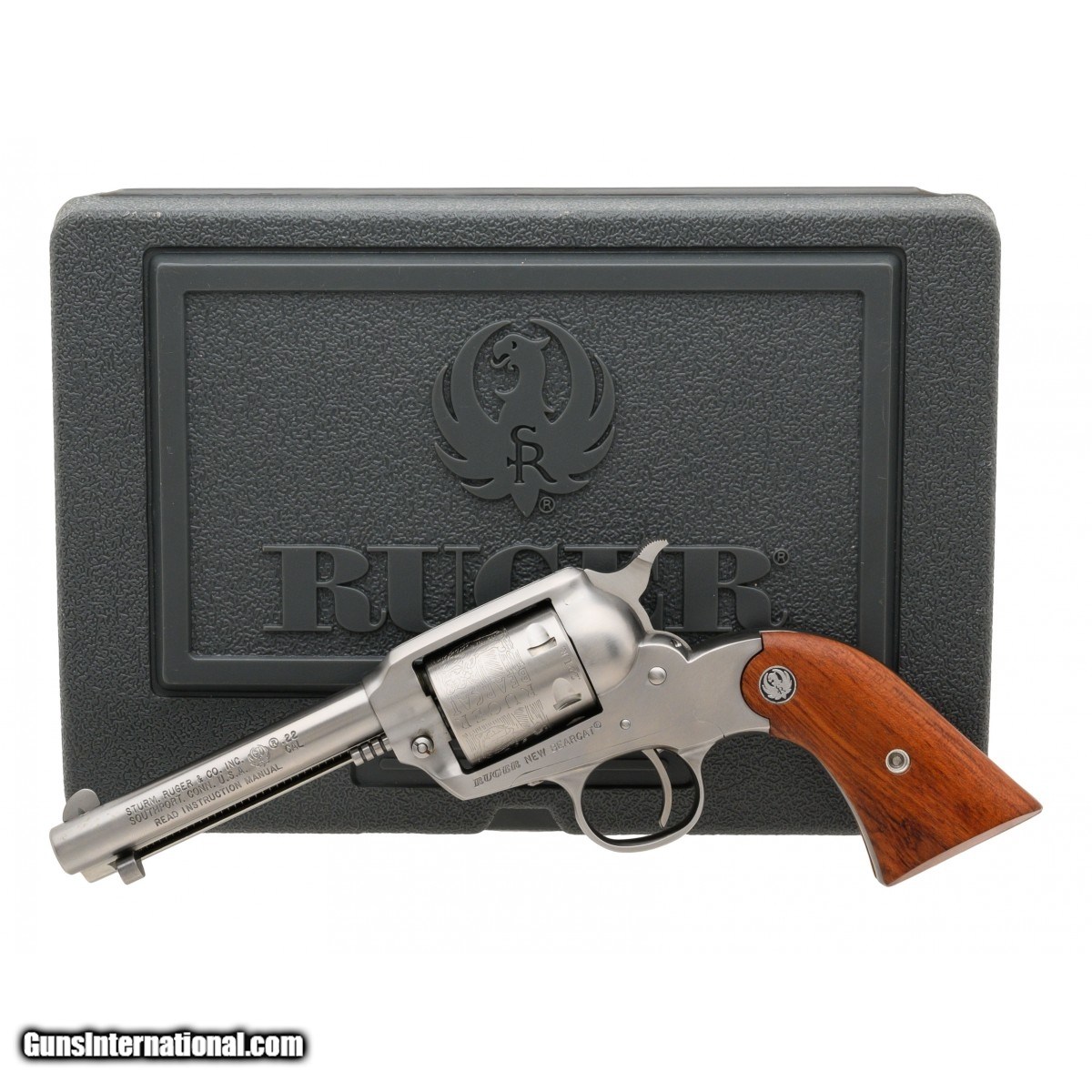 SN: 93-25878. Made in 2004. .22 LR with a 4.25"" barrel. Bore is in excellent condition. Ruger single action revolver with stainless steel frame and engraved cylinder. Stainless finish and wood grips are in excellent condition. Overall condition is excellent. Comes with box.